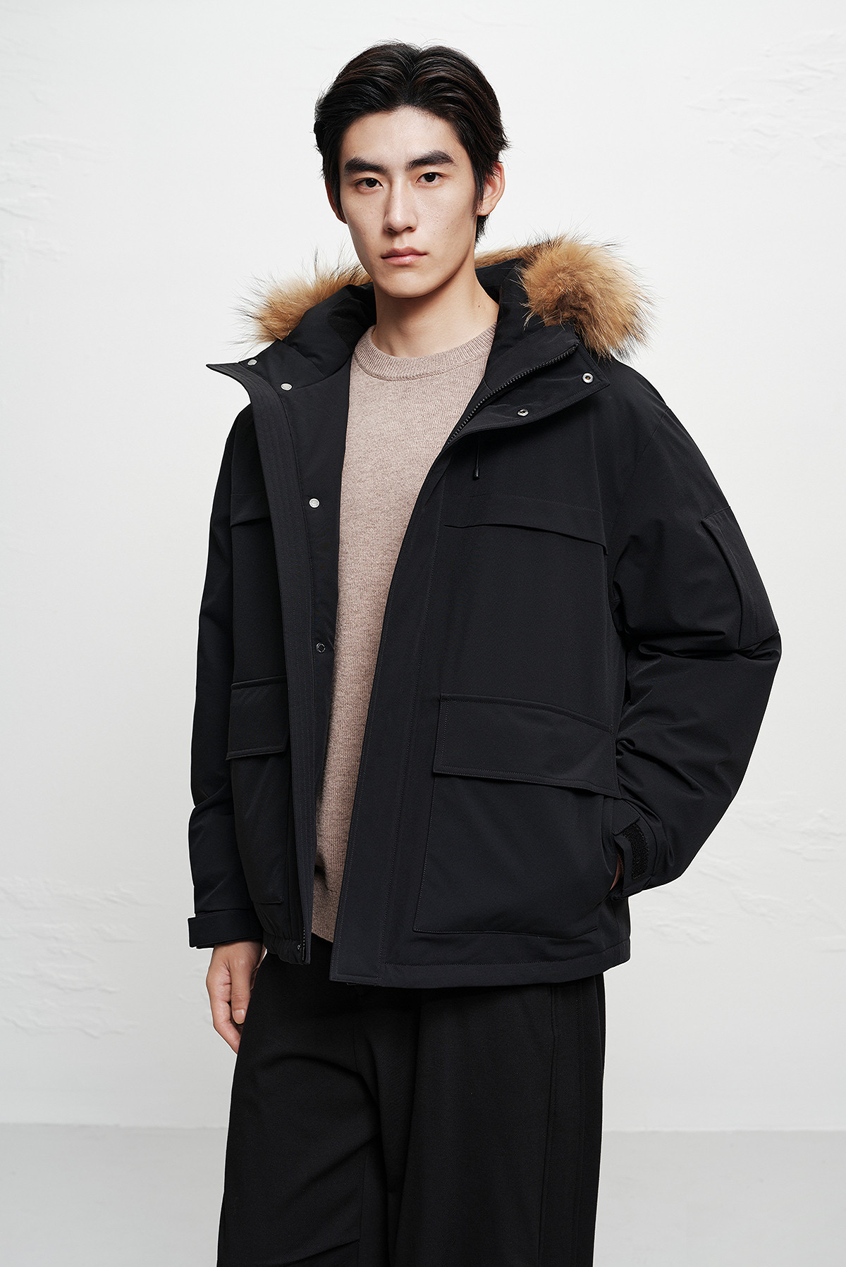 [Raccoon Fur Collar]Peacebird Men's Parka down Jacket 2025 Winter New Workwear Outdoor Cold-Proof Clothing~