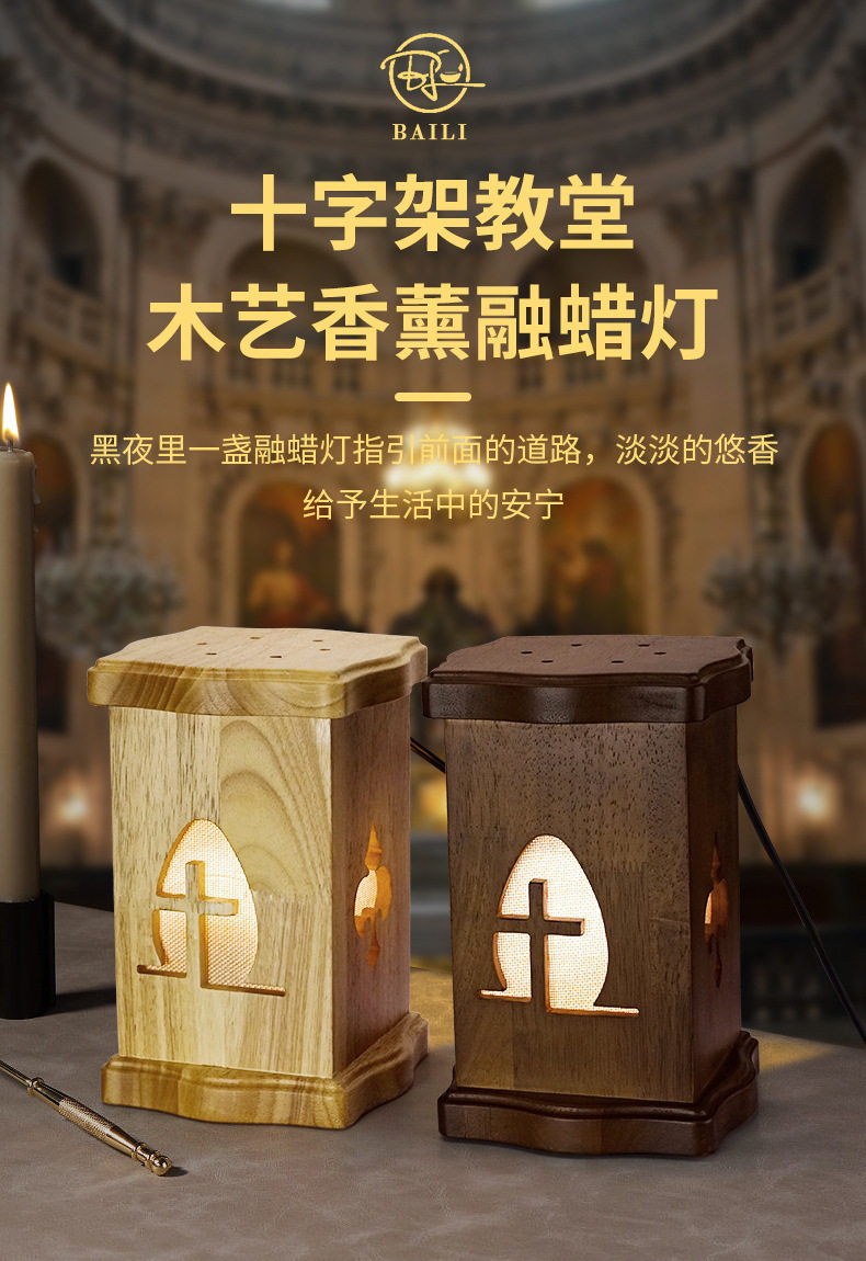 Cross-Shaped Solid Wood Aromatherapy Wax Melting Lamp with Timer, Bedroom Decorative Table Lamp, Flameless Candle Melting Lamp, Ambiance Night Light