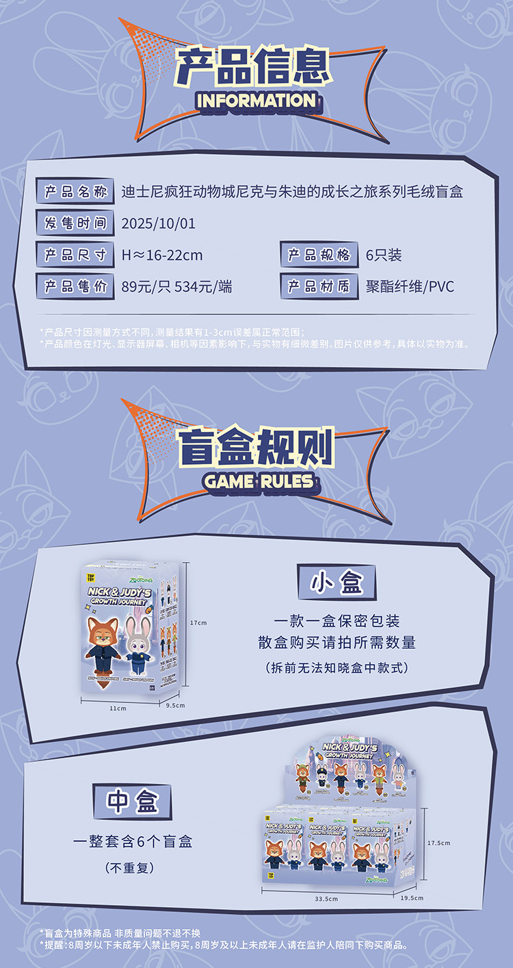 Zootopia Crazy Animal City Growth Journey Series Plush Pendant Blind Box Judy Nick Doll Gift
