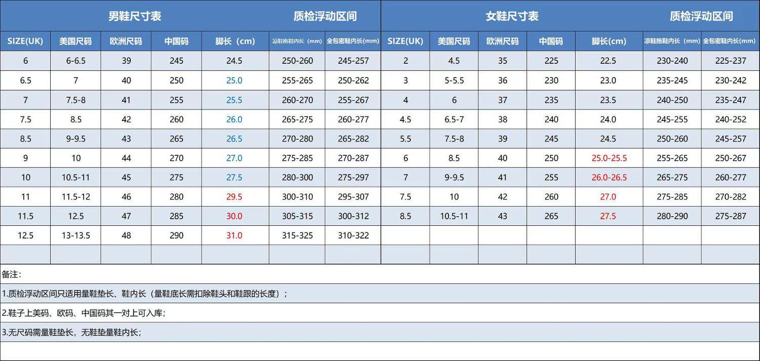 USA 6 7 8 8.5 9.5 10 11 12 12.5 13