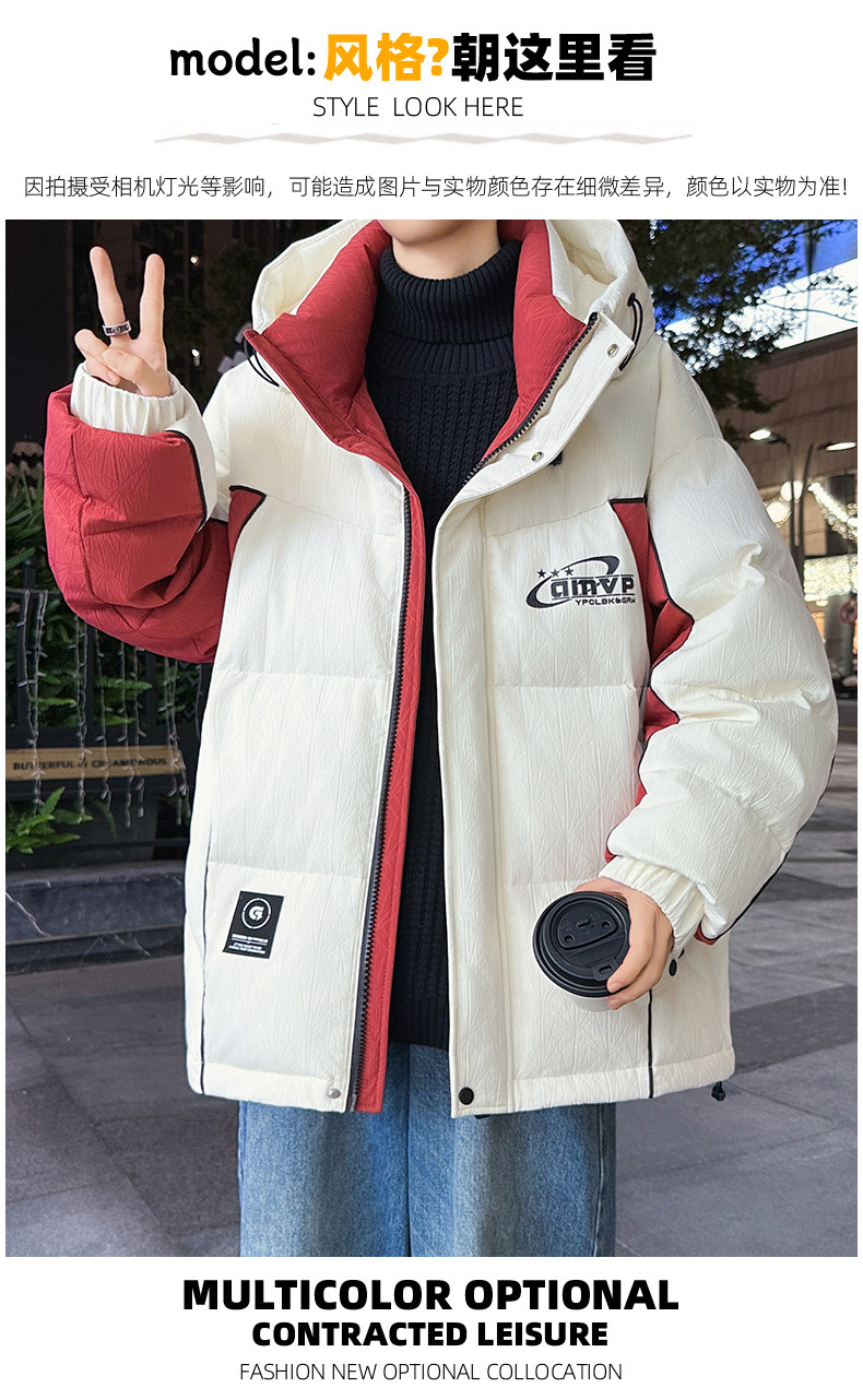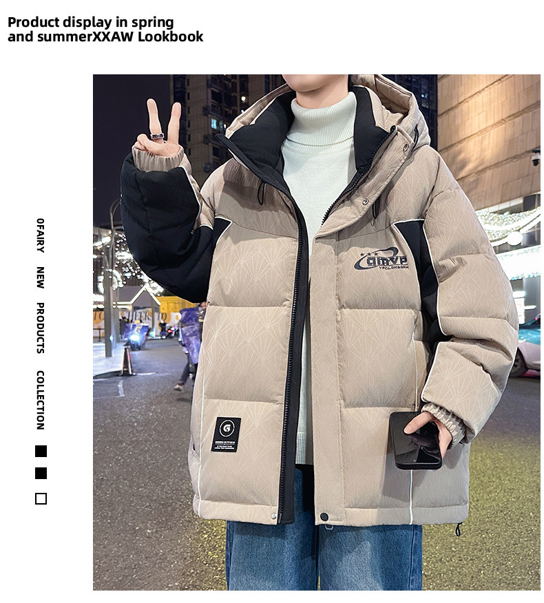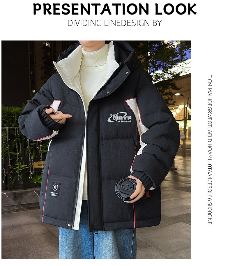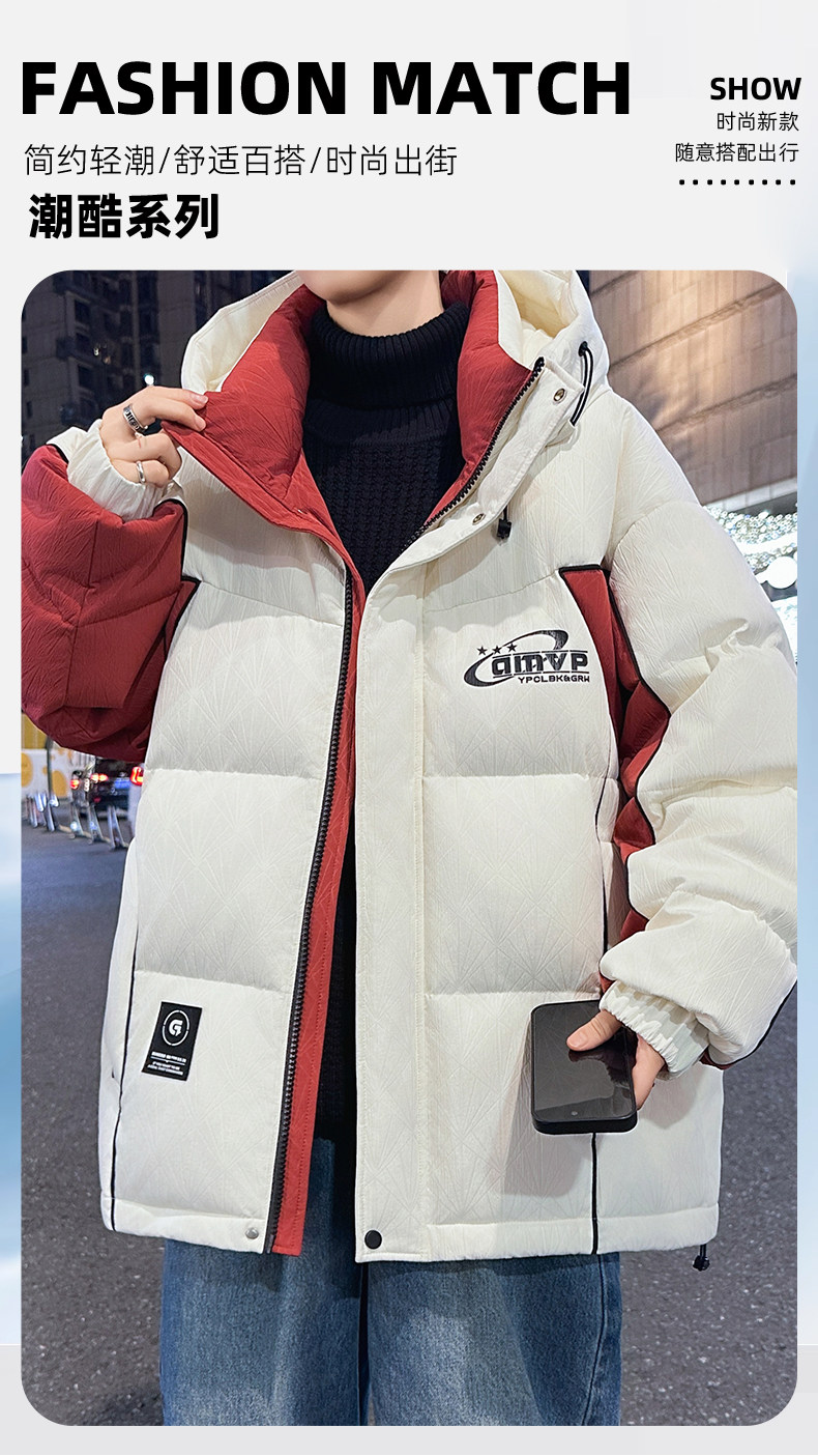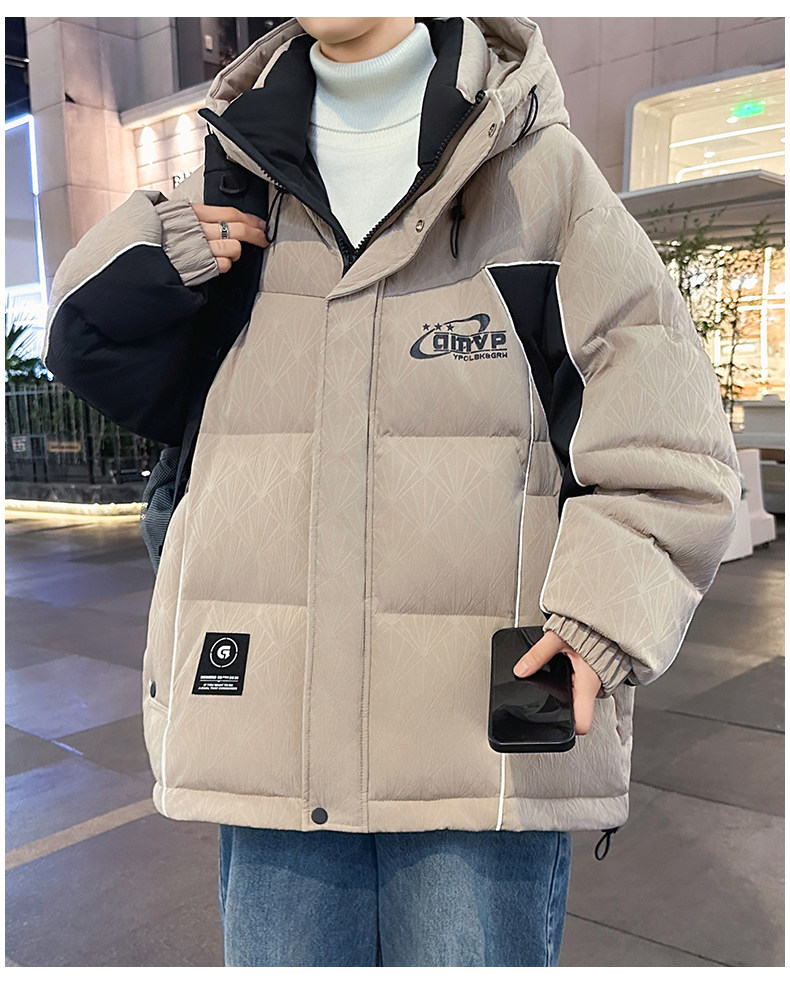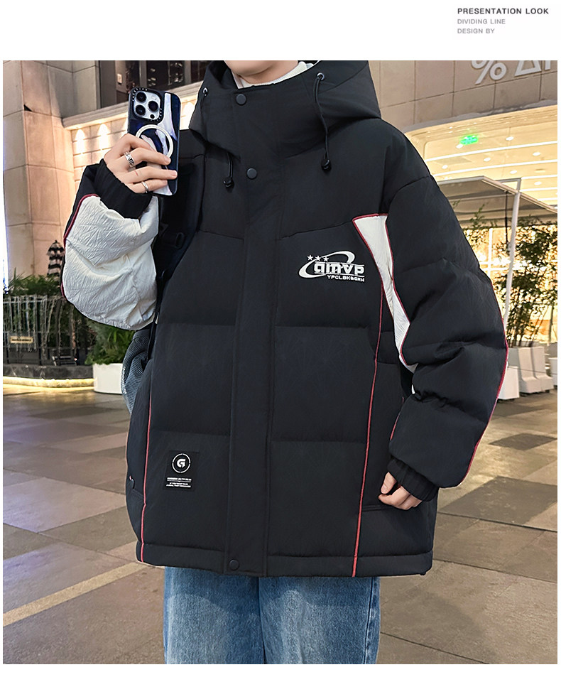 Men's Winter Cotton Jacket, Loose Fit, Trendy, for Teenagers, Middle and High School Students, Thickened, Warm Coat, Boys' Cotton Clothing, Fashionable