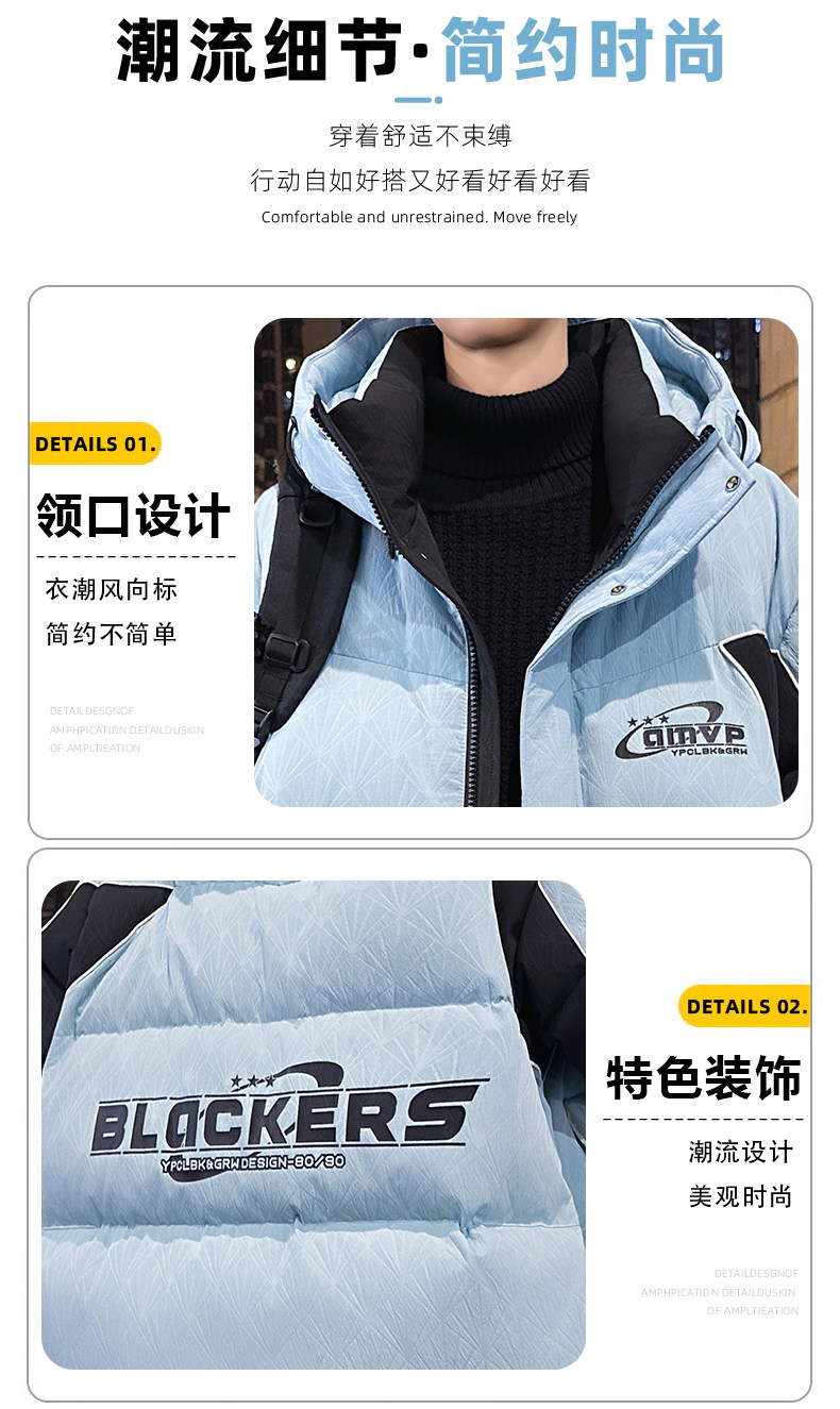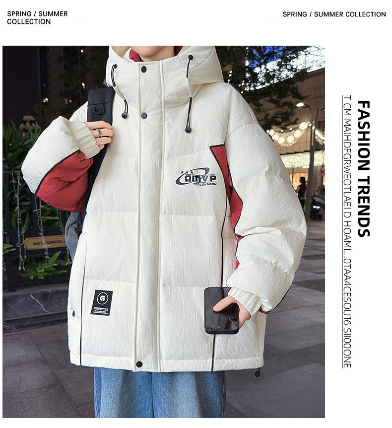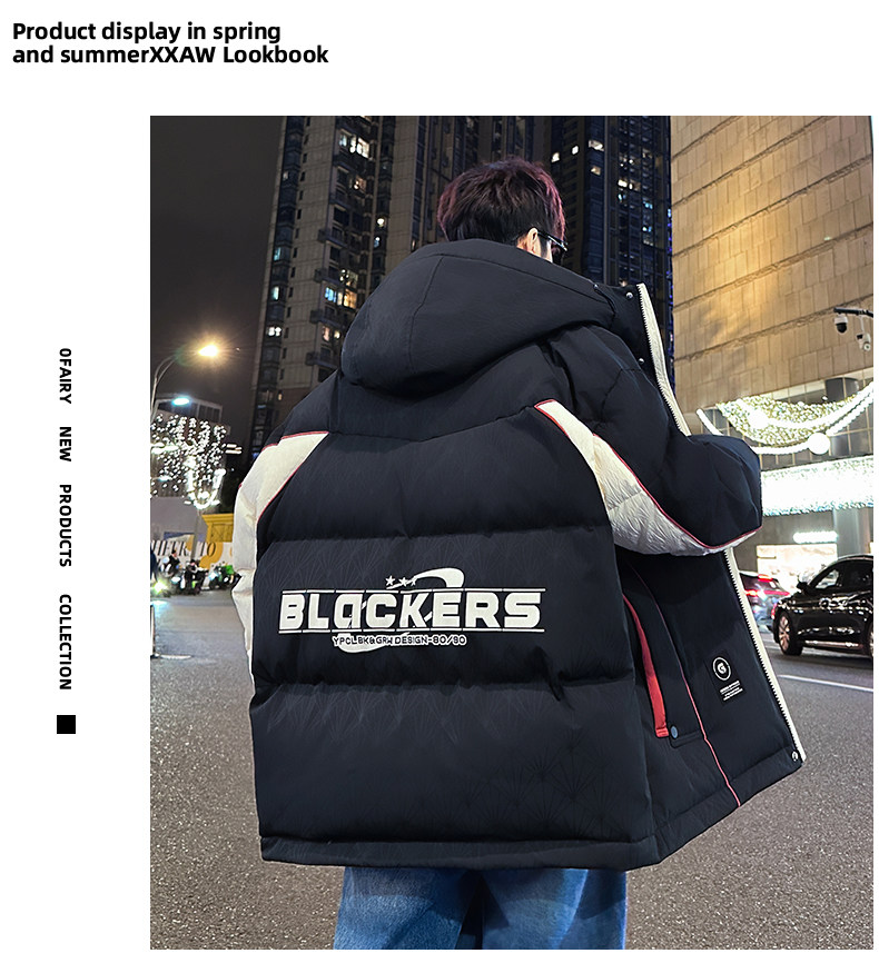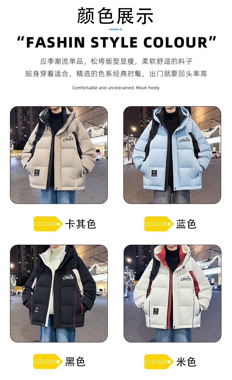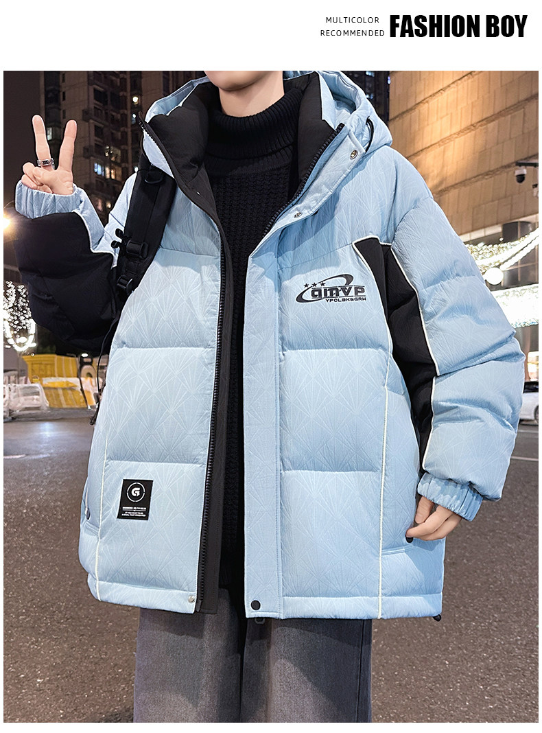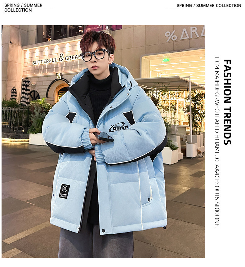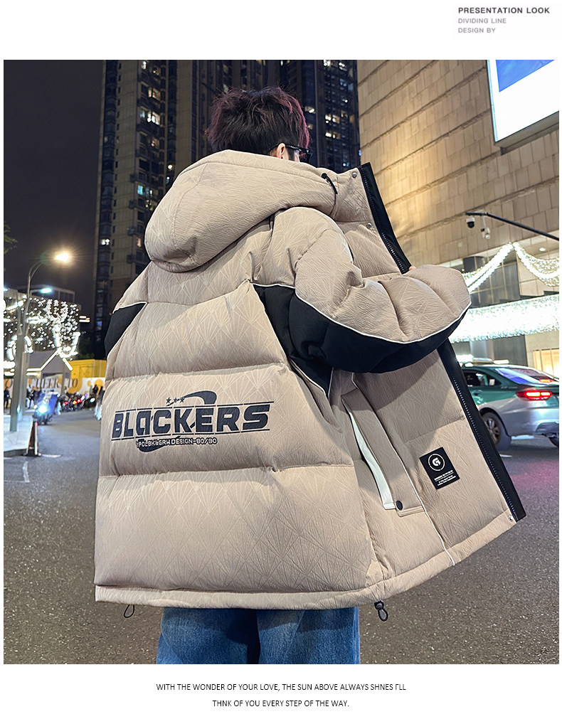 Men's Winter Cotton Jacket, Loose Fit, Trendy, for Teenagers, Middle and High School Students, Thickened, Warm Coat, Boys' Cotton Clothing, Fashionable
