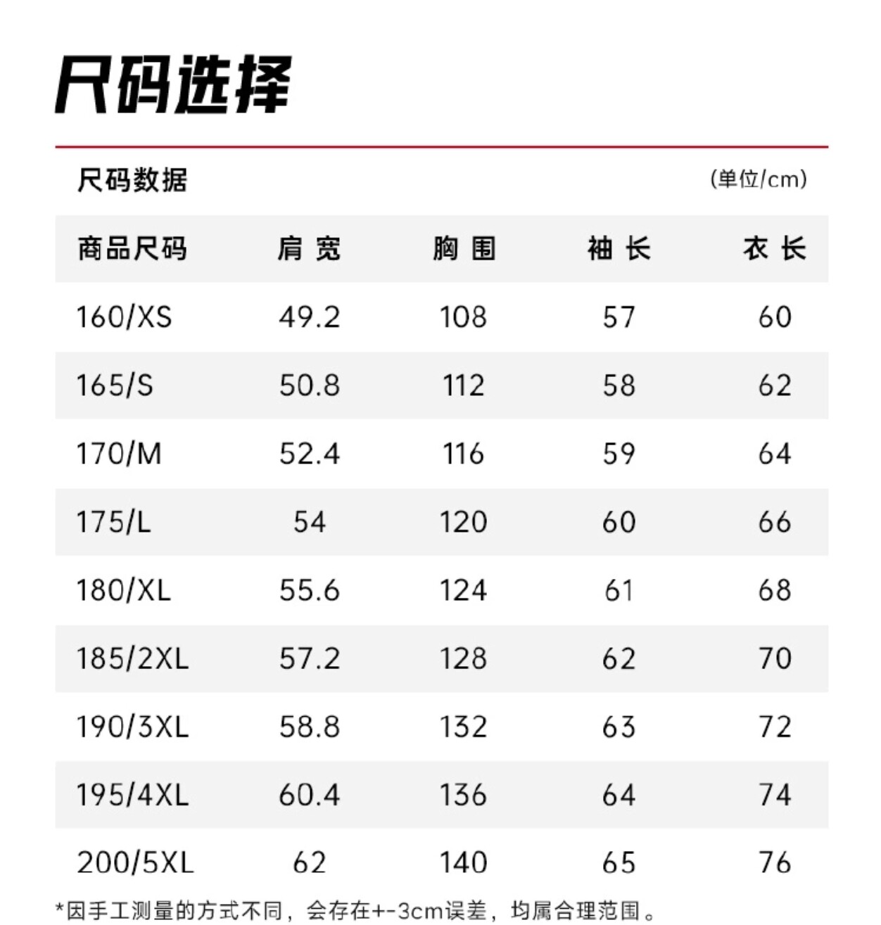China (cm) 160-165/84-86 165-170 / 88-90 167-172 / 92-96 168-173 / 98-102 170-176 / 106-110