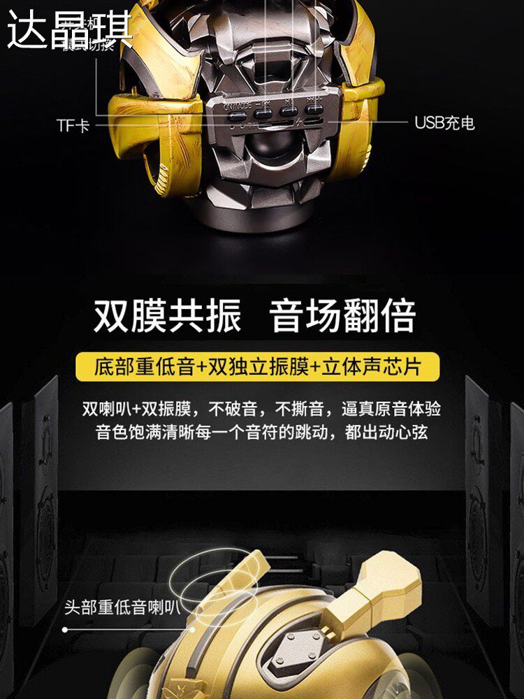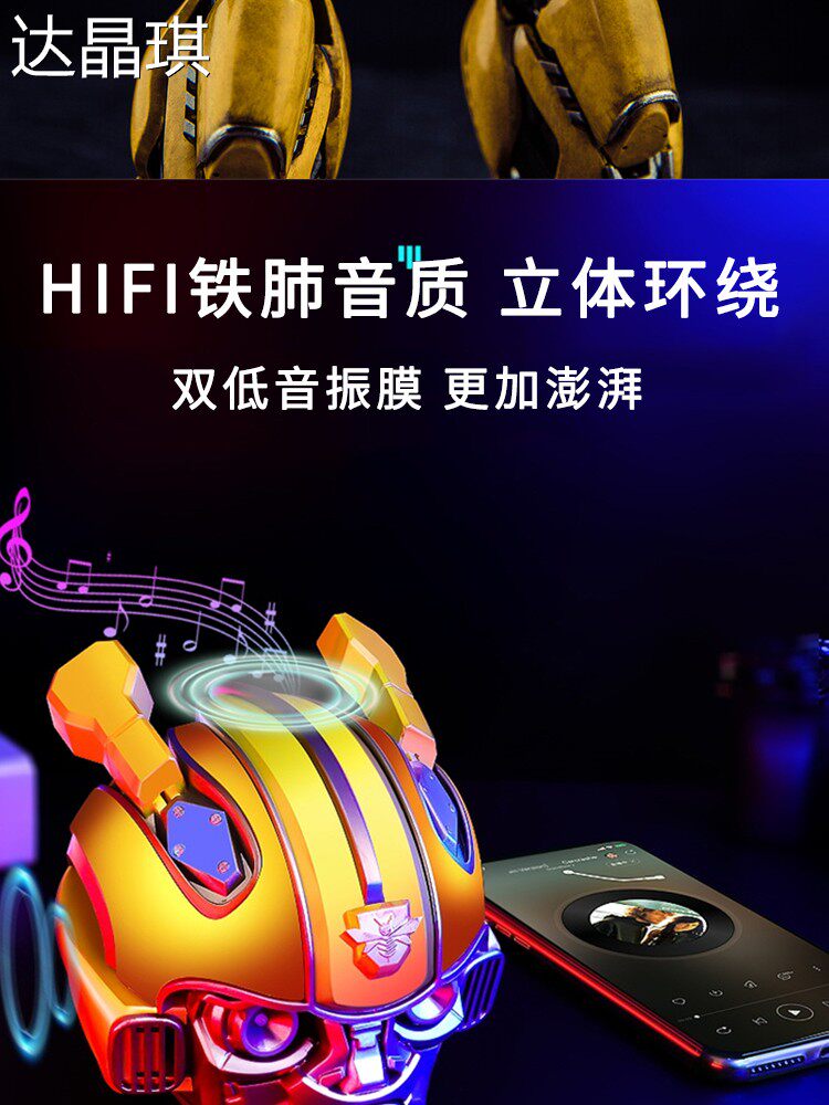 Bumblebee Bluetooth Speaker Wireless Audio System Birthday Gift for Boys Desktop Computer Small Home Use Mobile Phone Iron Man Bed Sheet Pull Cart