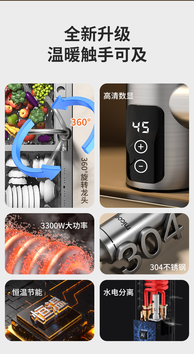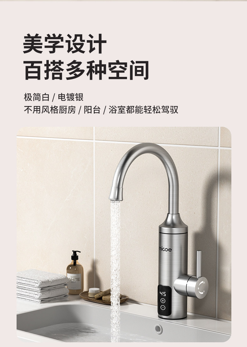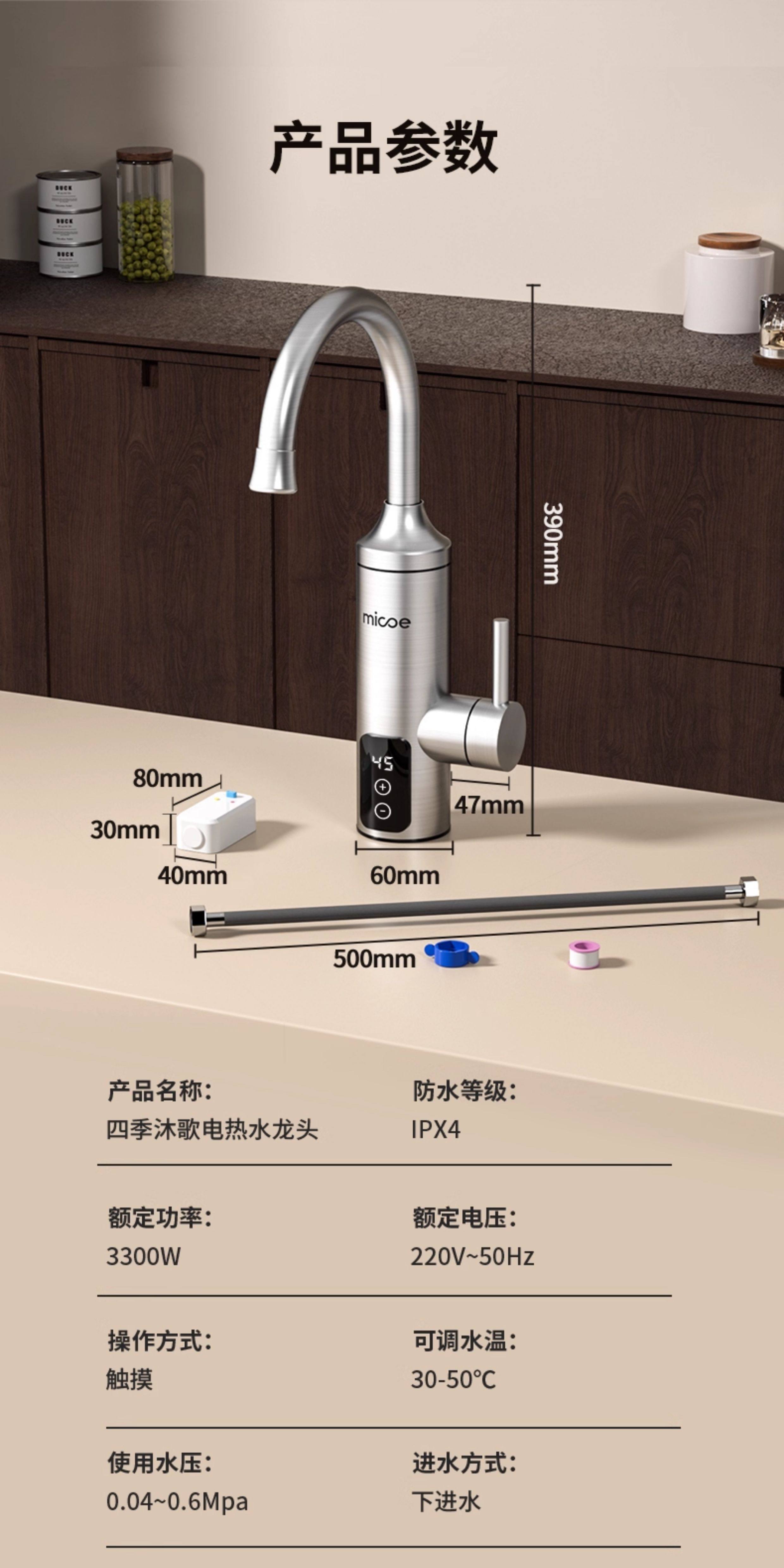 Four Seasons Muge Electric Hot Water Faucet for Home Use, Suitable for Balcony, Kitchen, Bathroom, and Tap Water Heating, Small Water Heater