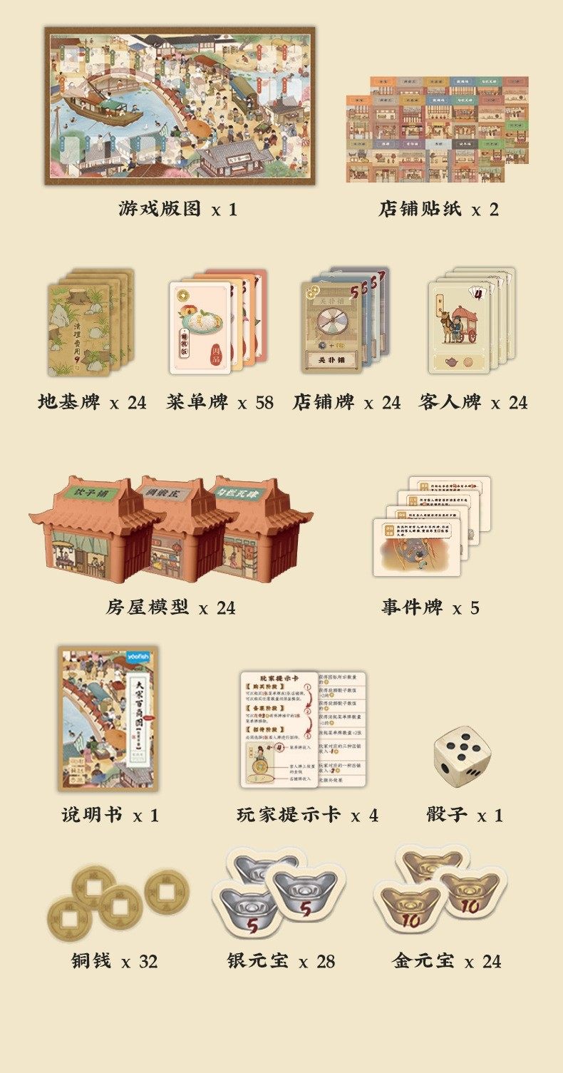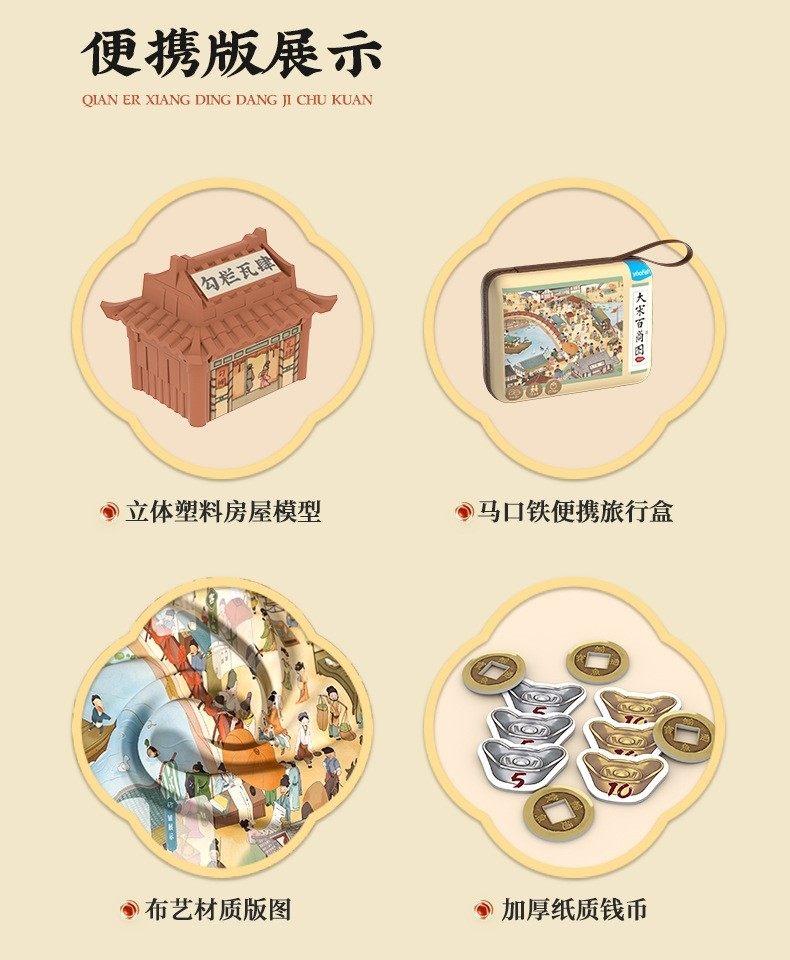 Sort by color Portable model - Picture of hundreds of merchants in the Song Dynasty,Picture of Hundreds of Businesses in the Song Dynasty - Classic Edition,Shaodongjia - Expansion Pack,Mahjong table - 30 chess pieces + 55 stickers + 2 suction cups,Deluxe Edition of Song Dynasty Baishang Picture (main body + expansion pack, two ways to play)