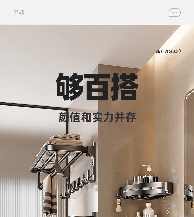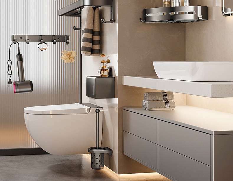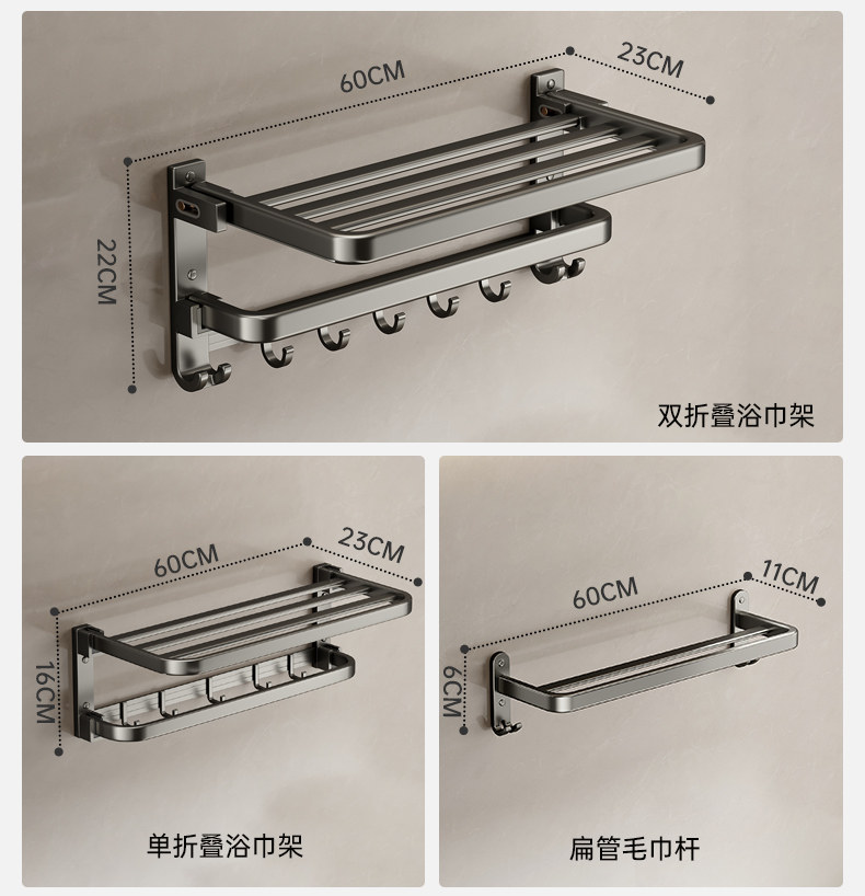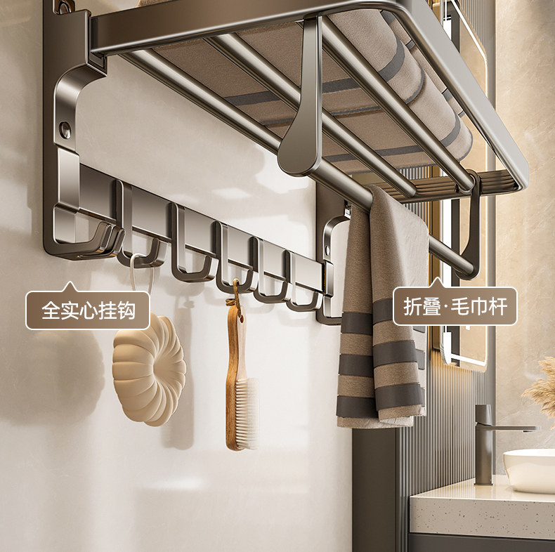 German High-End Towel Rack Bathroom No-Drill Towel Storage Rack Bathroom Toilet Wall-Mounted Space Aluminum Storage Hanger