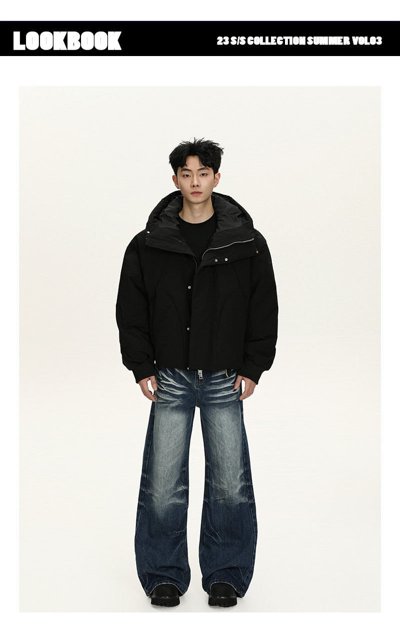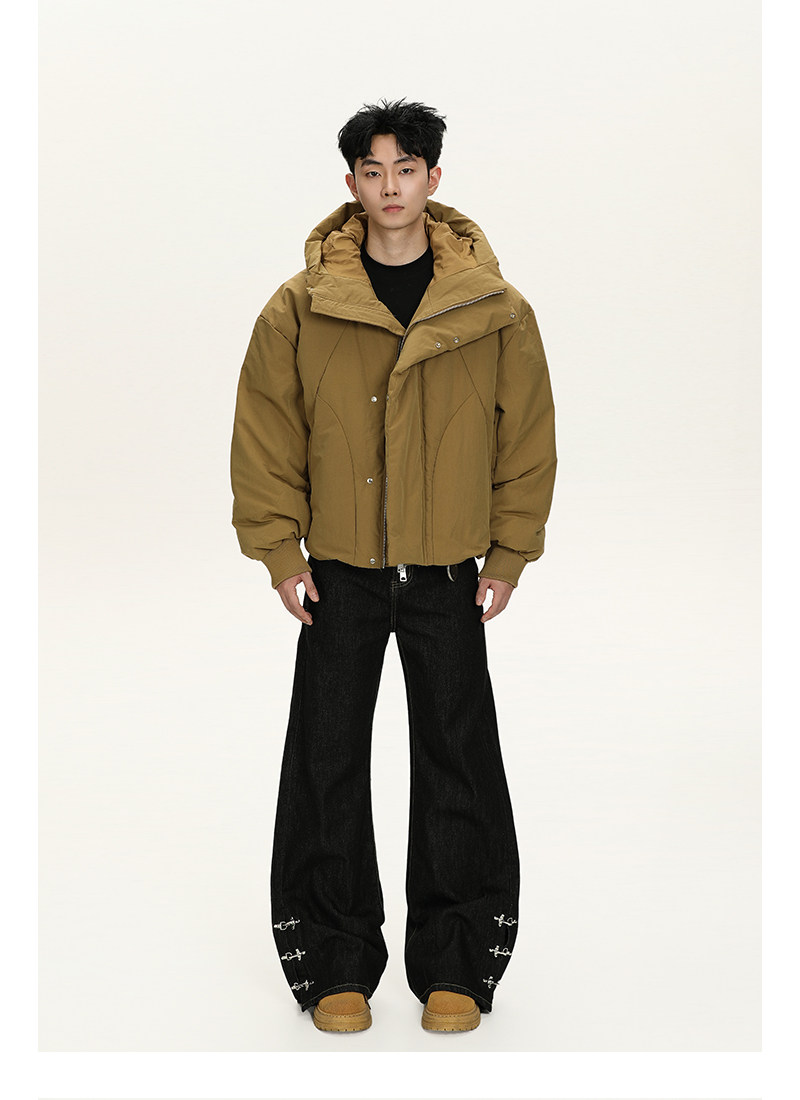 A Carton Winter American-Style Deconstructed Hooded 90 White Duck down Jacket for Men and Women, Loose Casual Warm down Coat Trendy