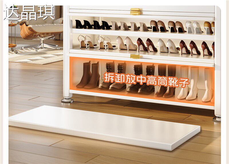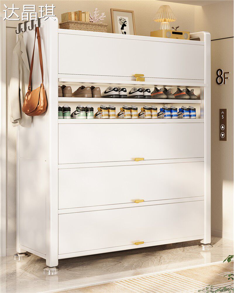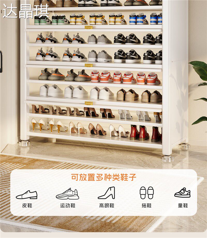 Steel shoe cabinet household multi-layer entrance locker large capacity dust-proof storage cabinet simple floor-standing shoe storage rack bed sheet pull cart