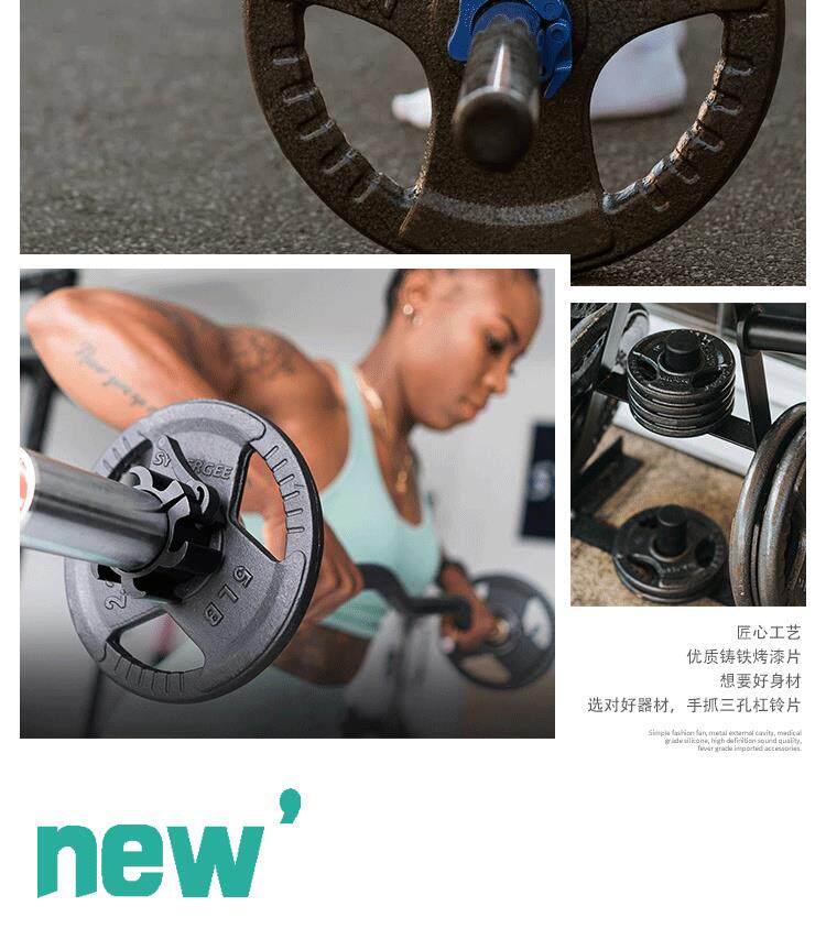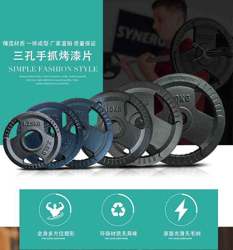 Cast iron painted barbell piece large hole fitness equipment home weightlifting Olympic pole three hole clearance discus coated dumbbell piece bed sheet pull cart