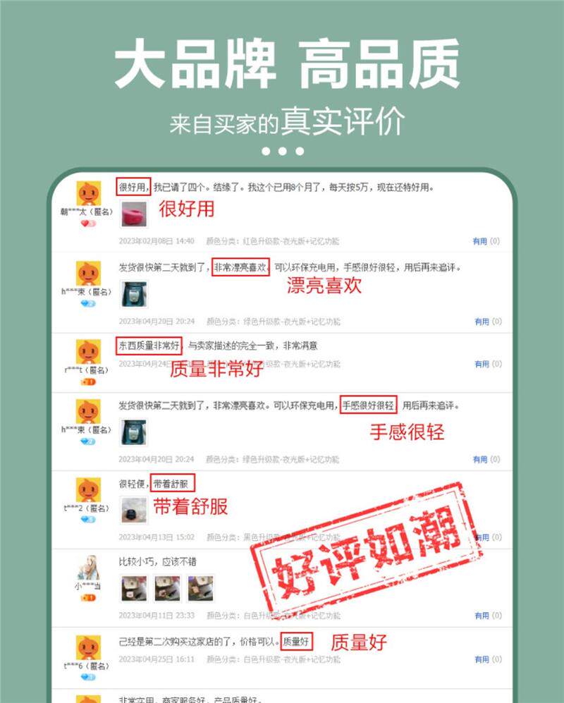 Sort by color Green upgraded rechargeable model - luminous version + memory function - 90 days of battery life,Red upgraded rechargeable model - luminous version + memory function - 90 days battery life,White upgraded rechargeable model - luminous version + memory function - 90 days battery life,Brown upgraded rechargeable model - luminous version + memory function - 90 days battery life,Black upgraded charging model - luminous version + memory function - 90 days battery life,Yellow upgraded charging model - luminous version + memory function - 90 days battery life,Mini Green Upgraded Rechargeable Model - Luminous Version + Memory Function - 90 Days Battery Life,Mini Red Upgraded Rechargeable Model - Luminous Version + Memory Function - 90 Days Battery Life,Mini white upgraded rechargeable model - luminous version + memory function - 90 days battery life