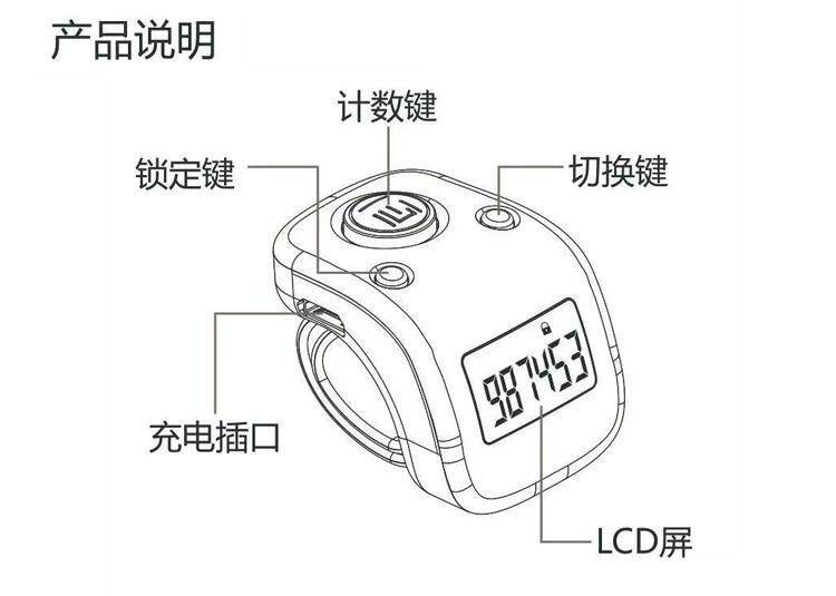 New counting counter hand-pressed single-minded counting artifact electronic hidden digital display rechargeable mini manual ring type