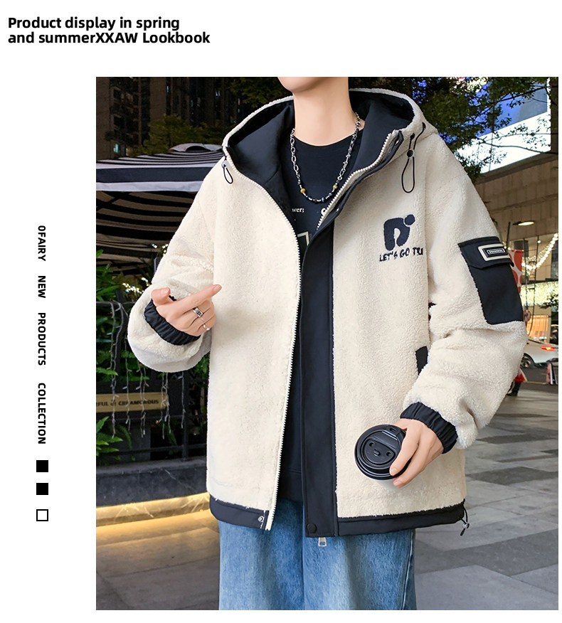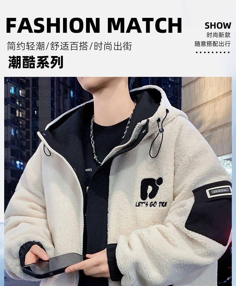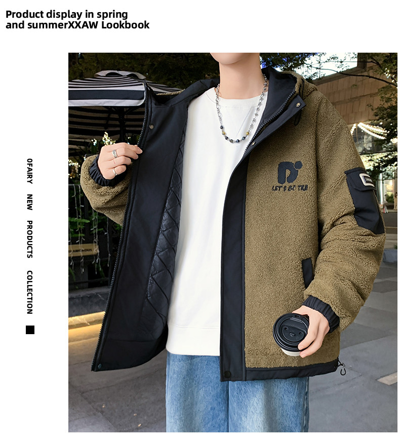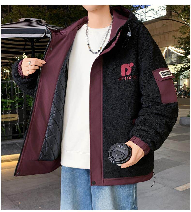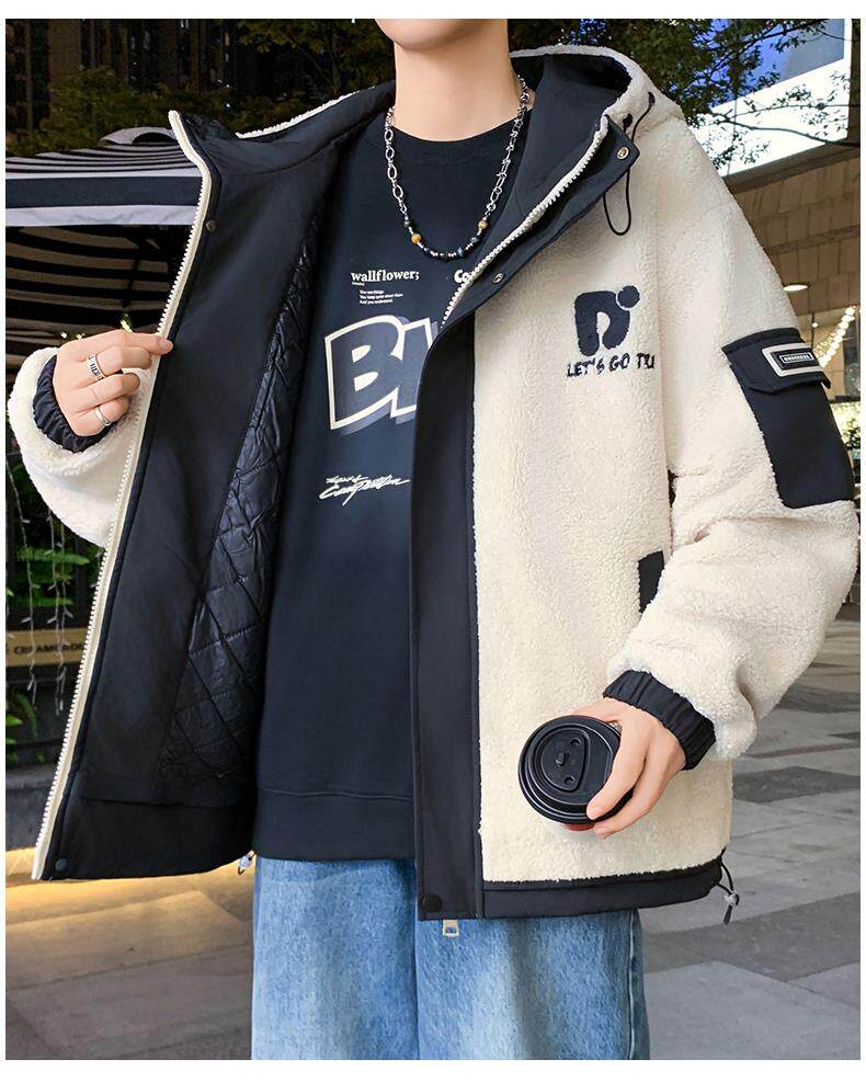 Lamb Wool Jacket Men's Winter Workwear Style Cotton-Padded Warm Hooded Jacket Men's Outdoor Cold-Proof Youth Cotton Jacket