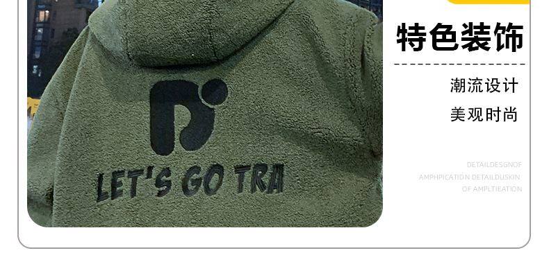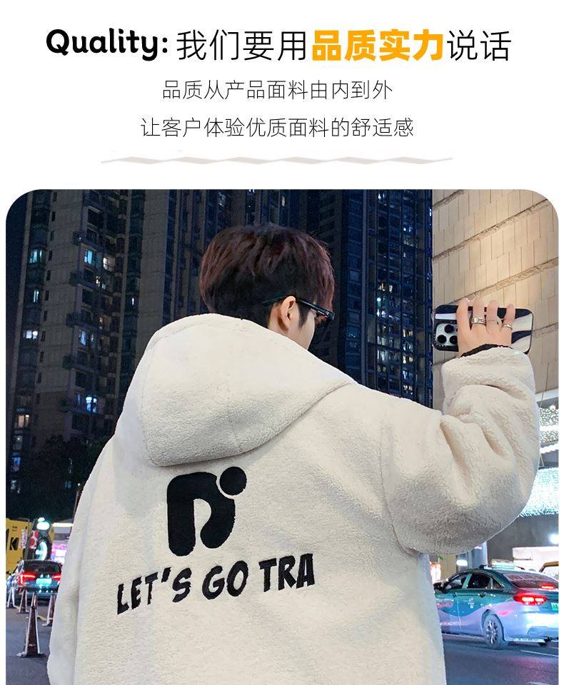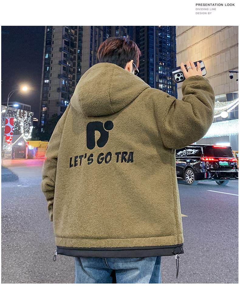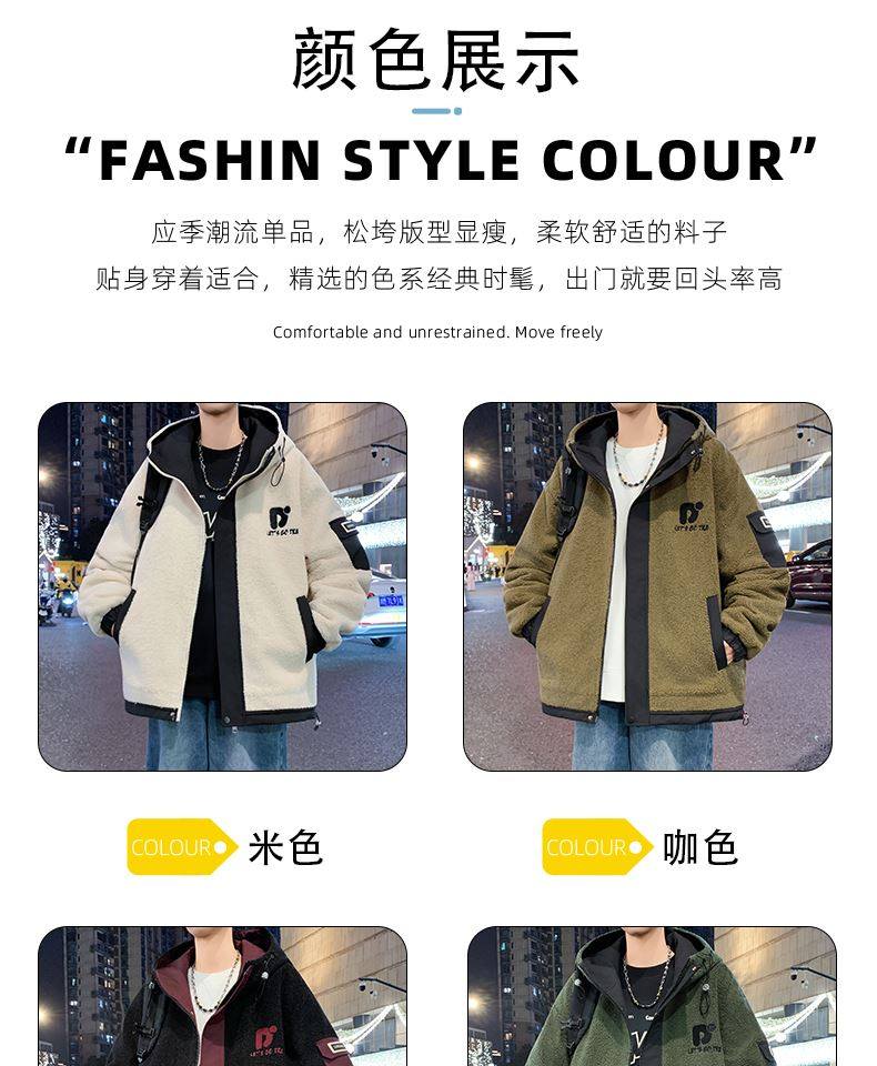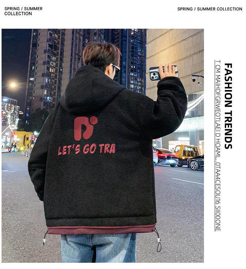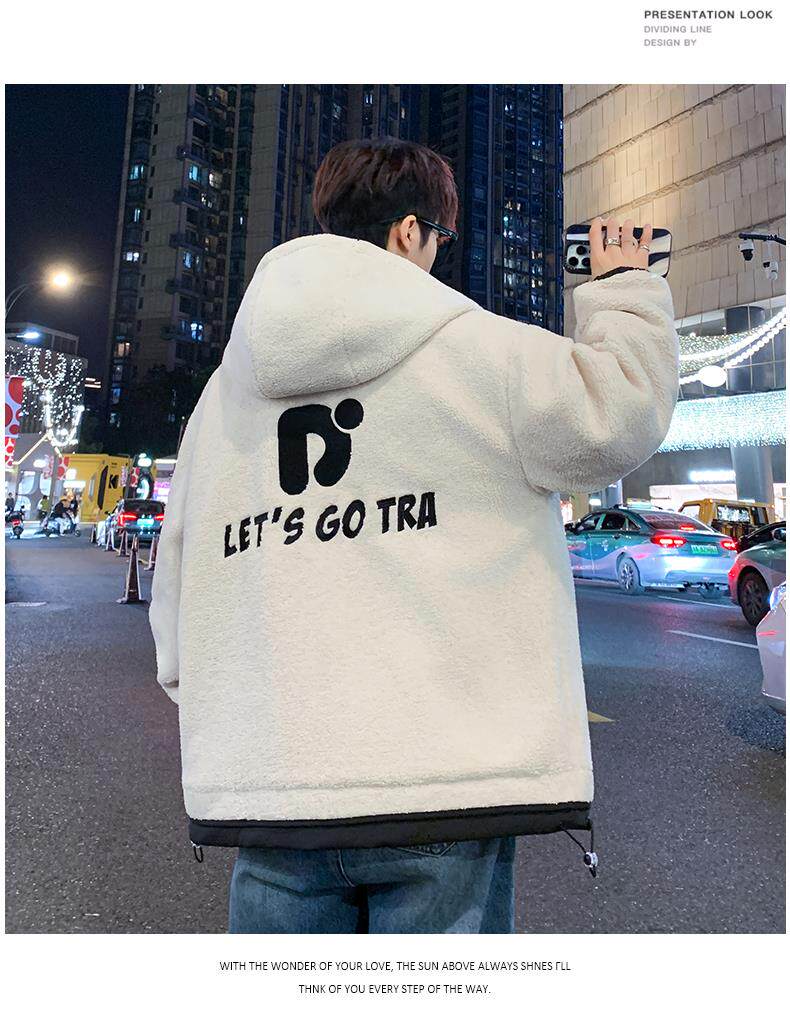 Lamb Wool Jacket Men's Winter Workwear Style Cotton-Padded Warm Hooded Jacket Men's Outdoor Cold-Proof Youth Cotton Jacket
