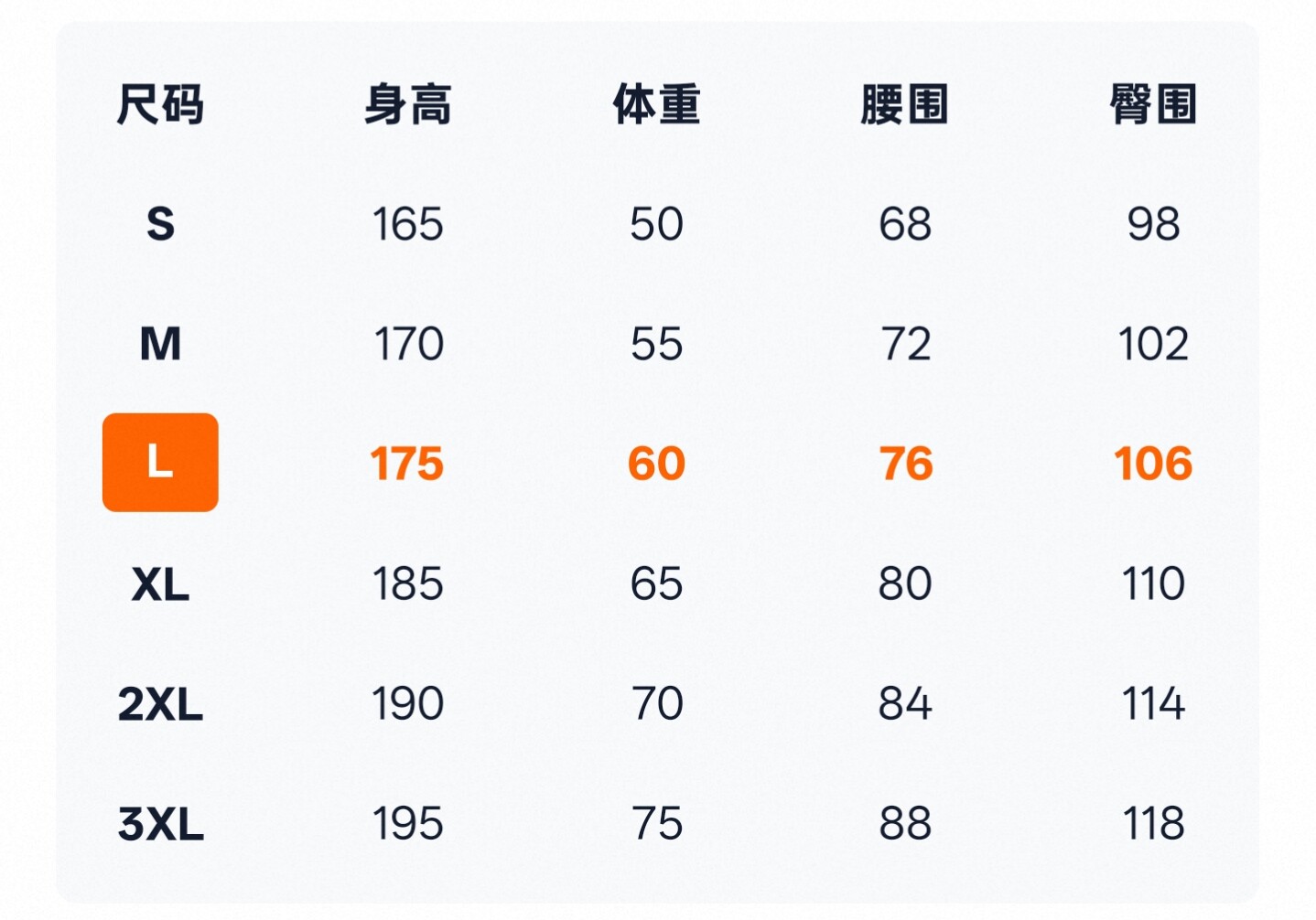 China (cm) 160-165/84-86 165-170 / 88-90 167-172 / 92-96 168-173 / 98-102 170-176 / 106-110
