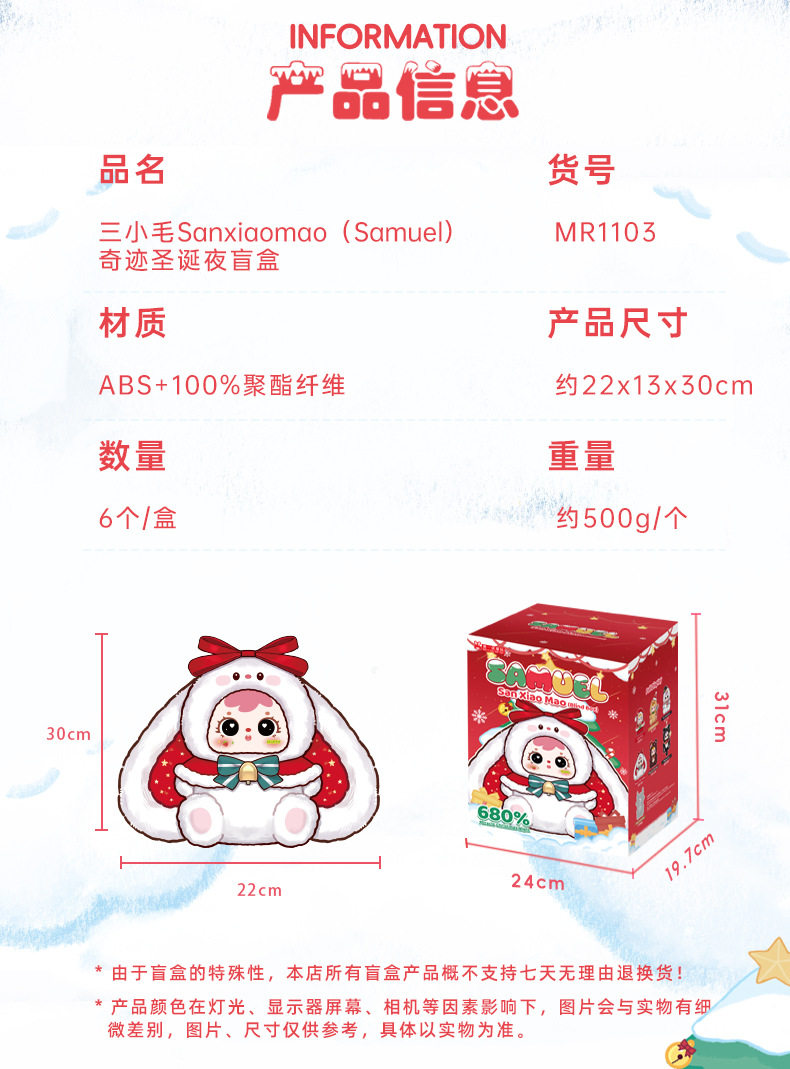 Samuel Three Little Sheep 680% Miracle Christmas Eve Series Plush Blind Box Christmas Gift Indoor Decoration