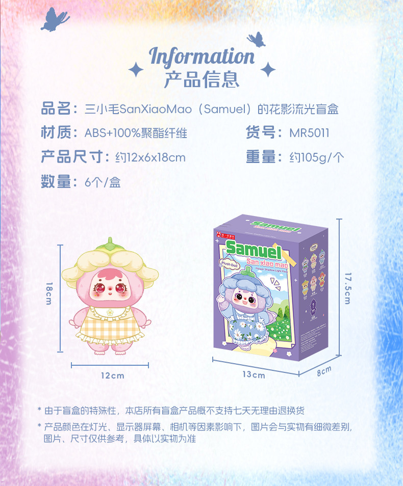 Samuel Three Little Flowers Shadow Flow Series Plush Pendant Blind Box Flower Doll Girl Gift Keychain