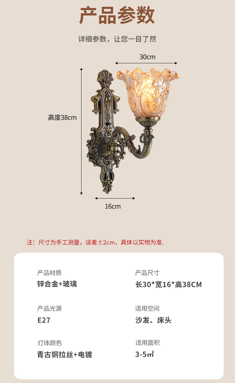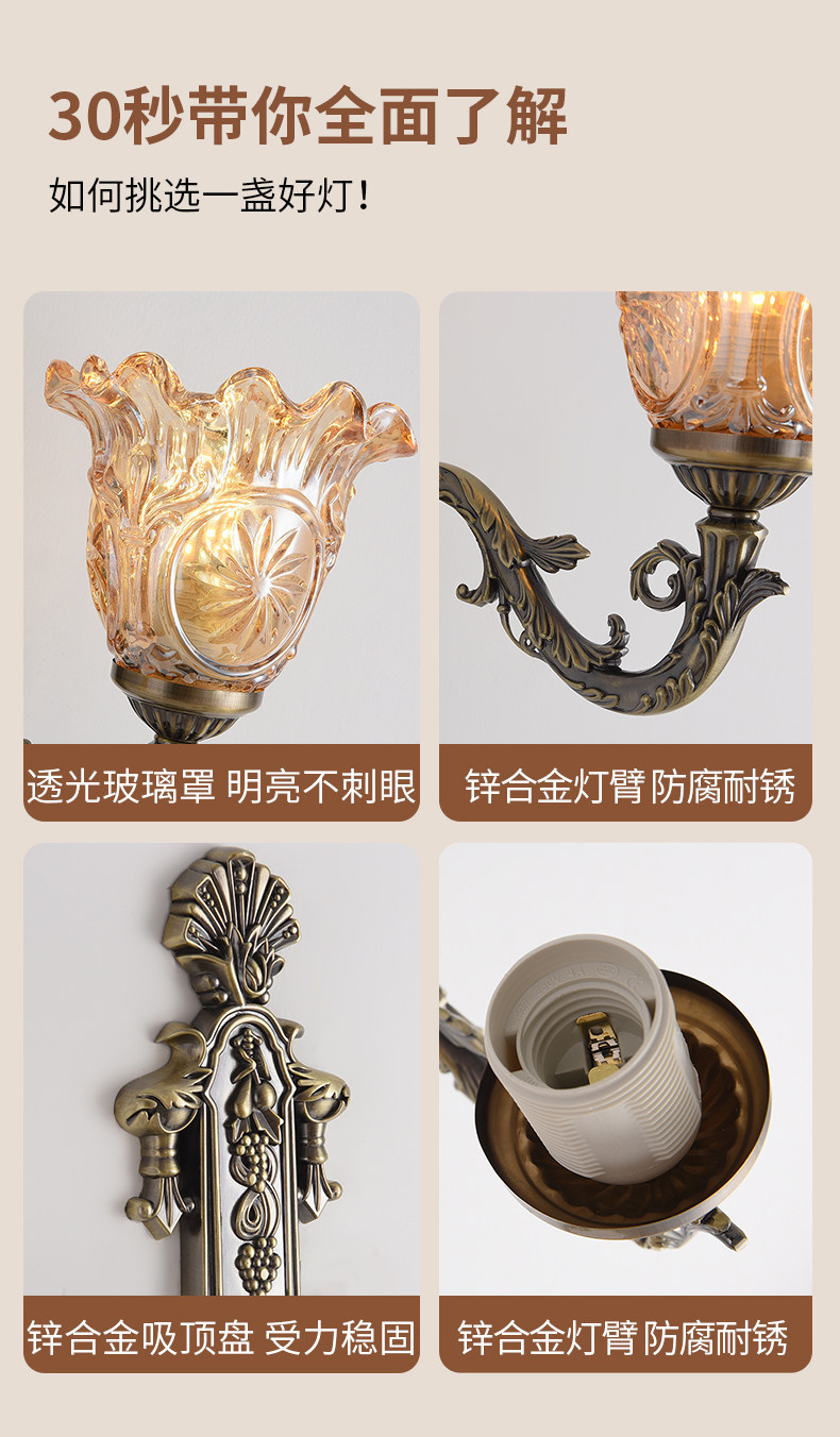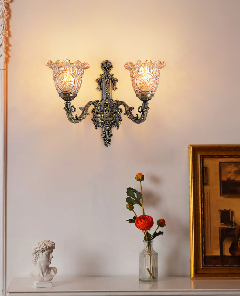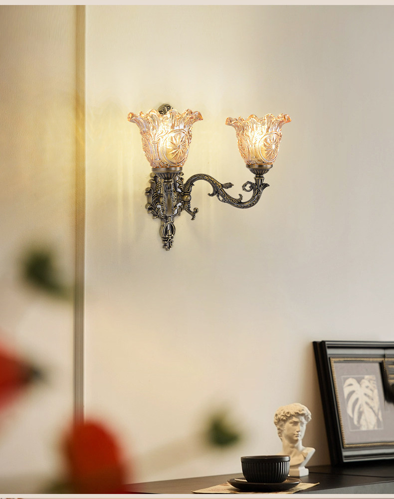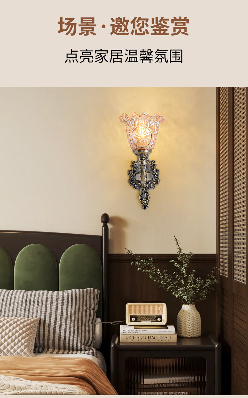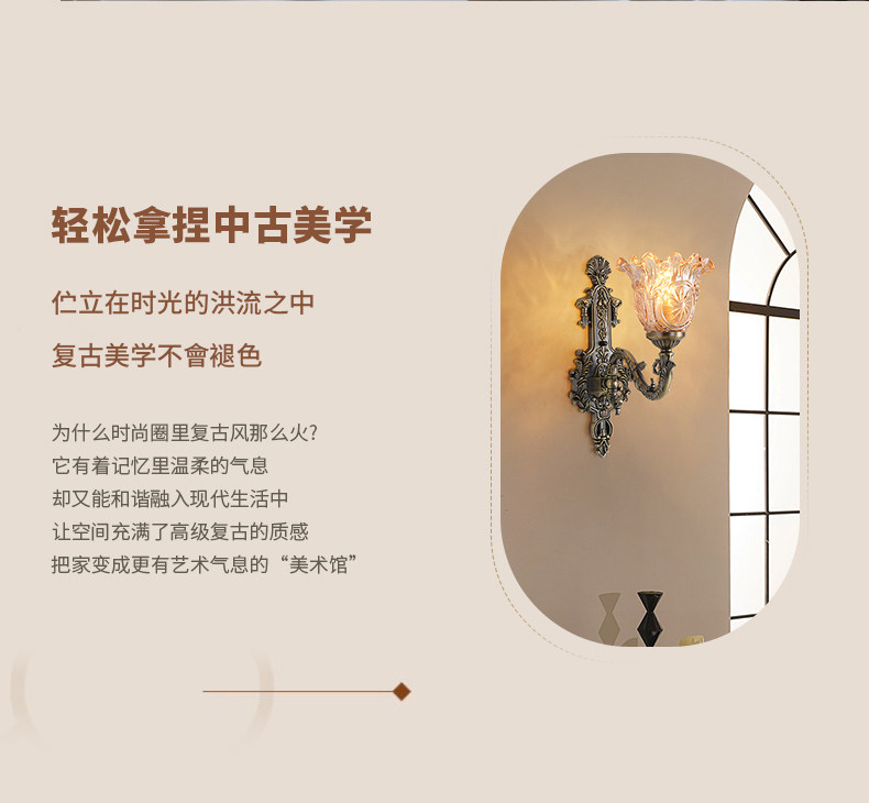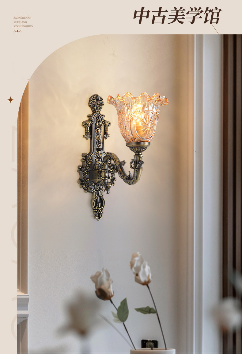 French-Style Vintage Wall Lamp for Living Room Background Wall, American Retro Creative Personality Corridor Decoration, Bedroom Bedside Lamp