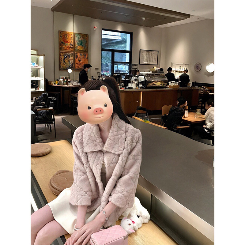 Korean style sweet loose lazy style daughter short fur coat women's autumn and winter new style high-end temperament top