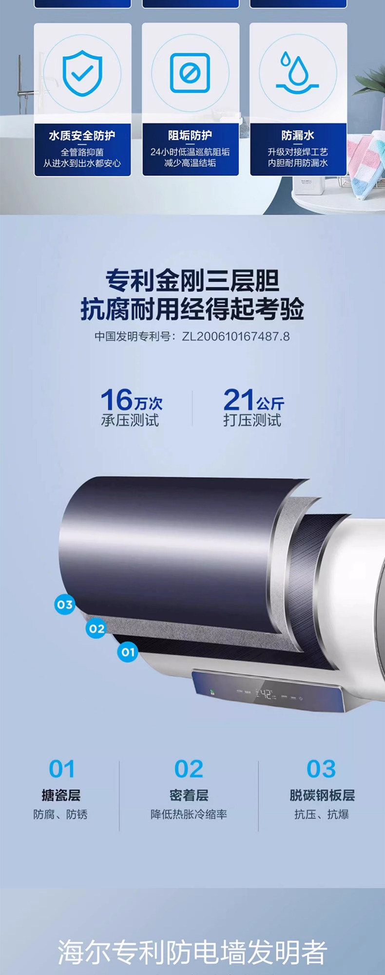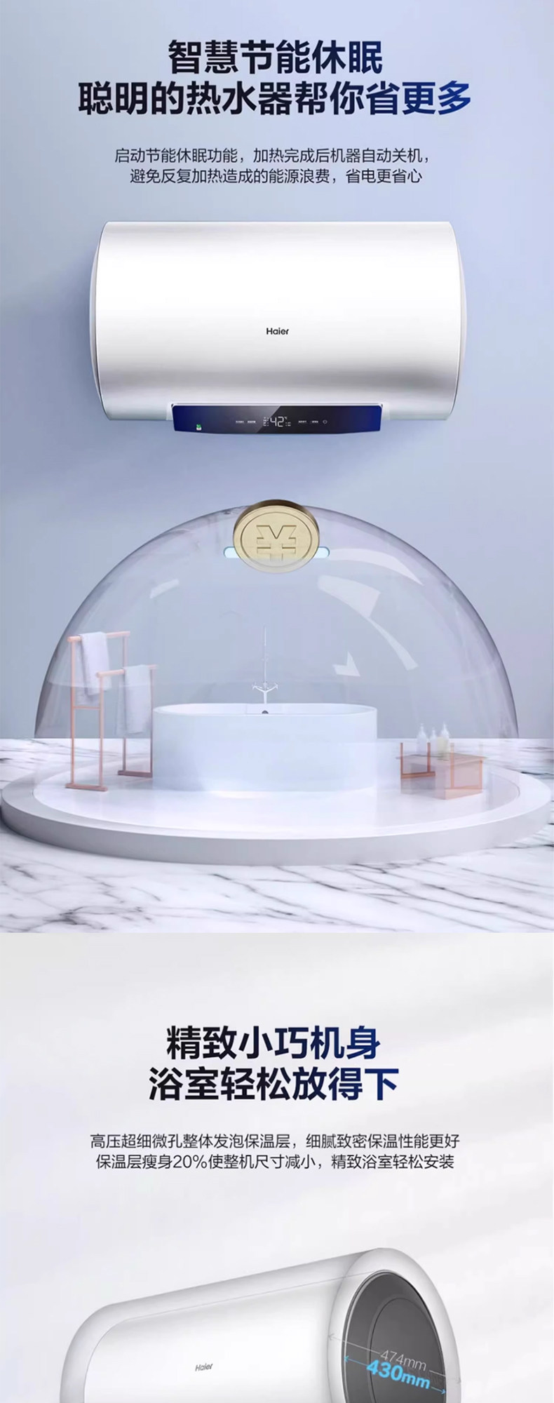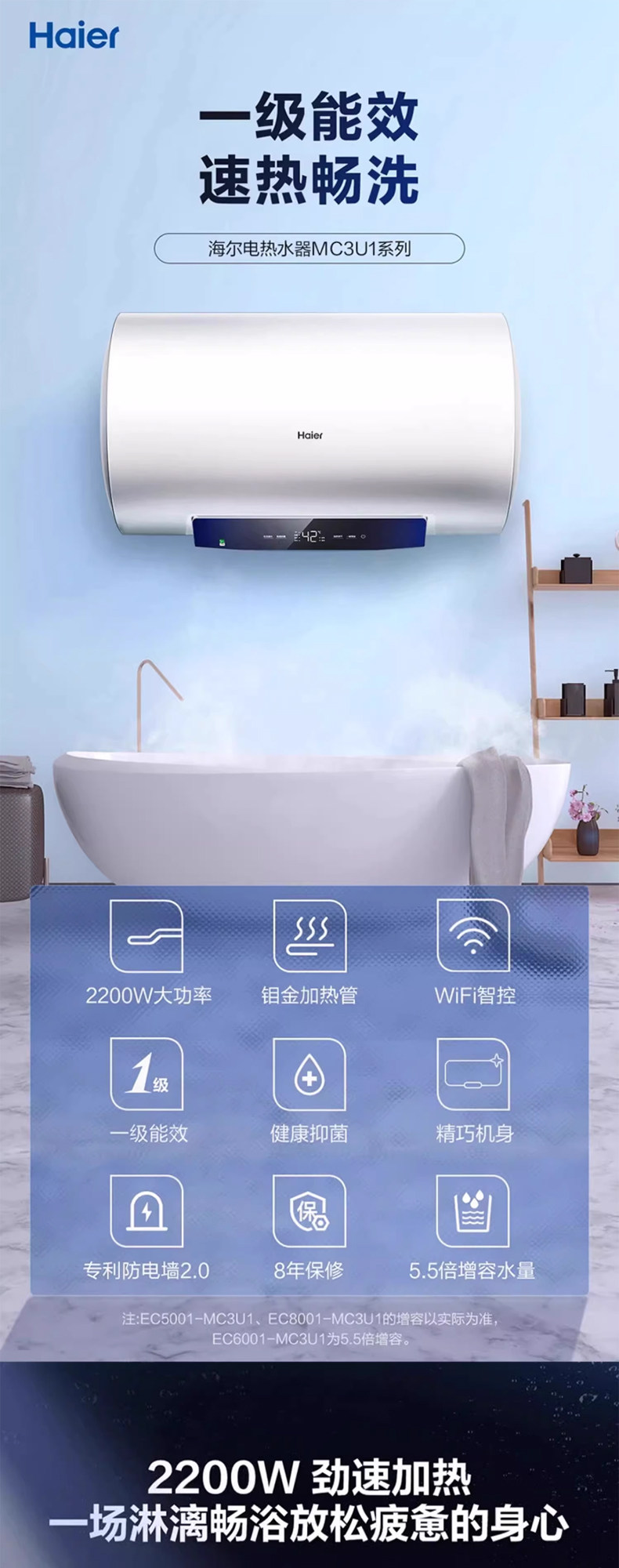 Haier 60L Cylindrical Storage-Type Electric Water Heater Mc3 with Molybdenum Gold for Fast Heating, Antibacterial, First-Class Energy Efficiency, and Wi-Fi Remote Smart Control