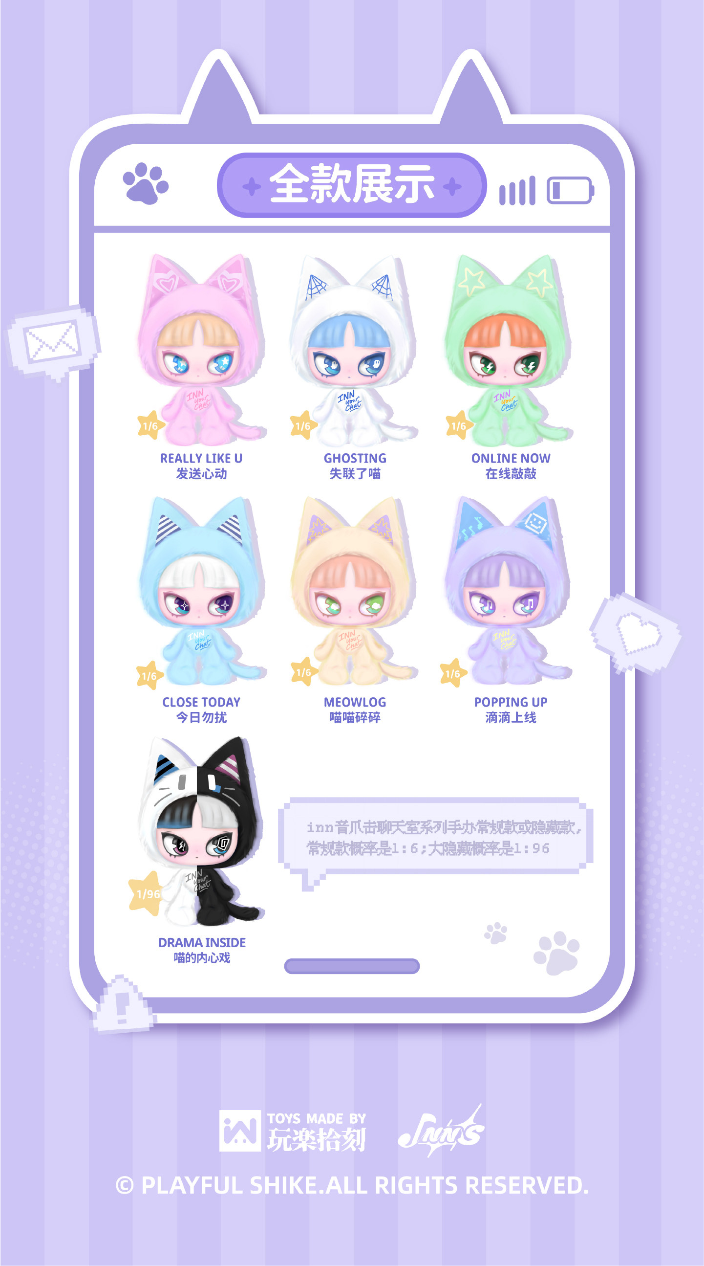 Inn Sound Claw Chat Room Series Vinyl Plush Pendant Blind Box Cat Doll Girl Gift Anime