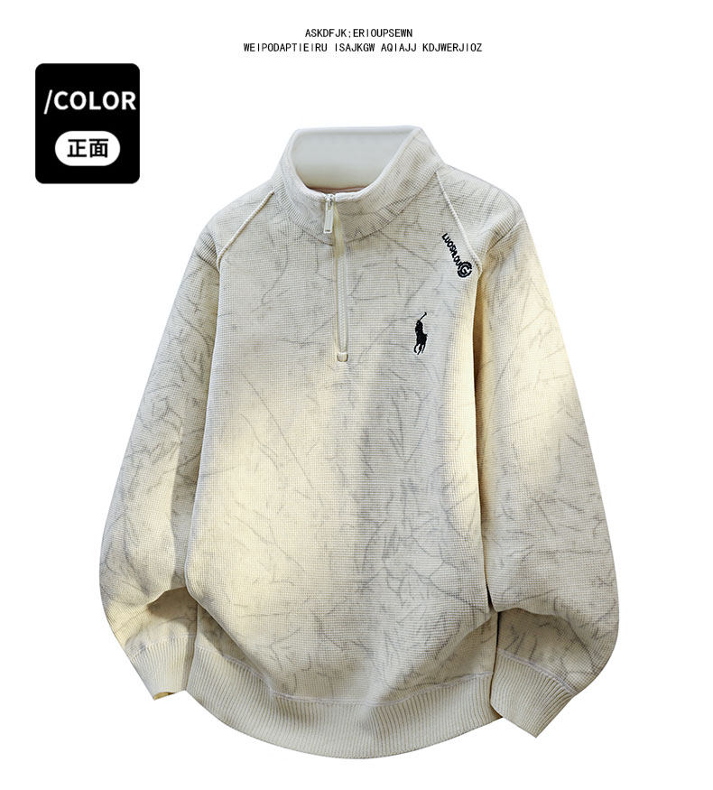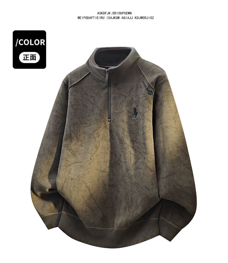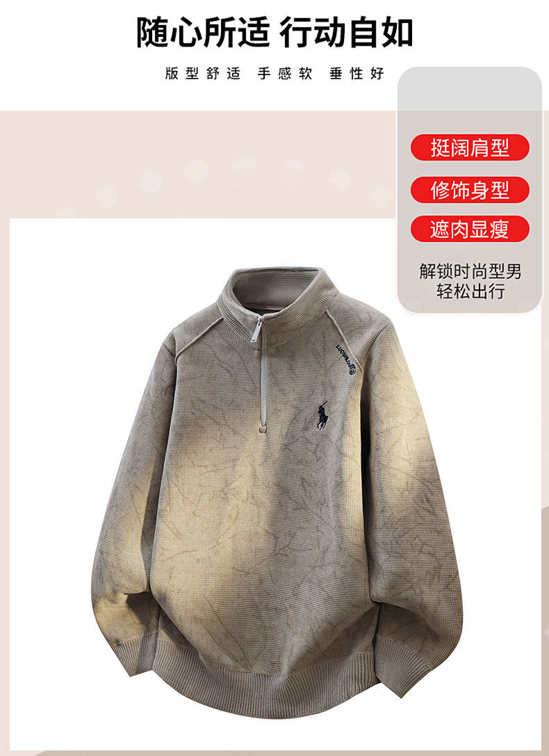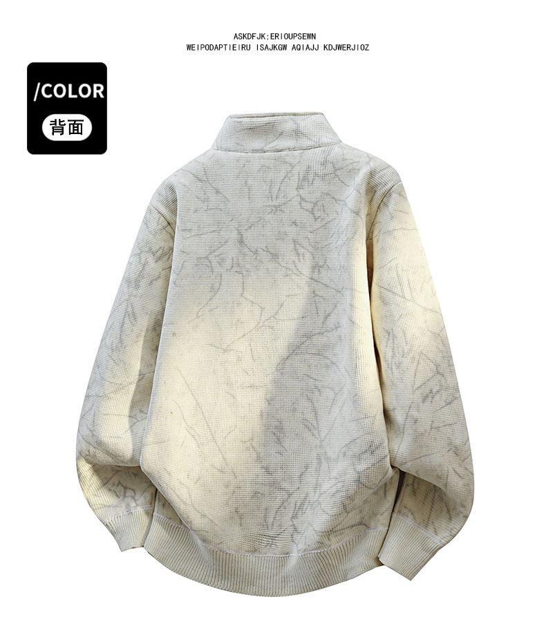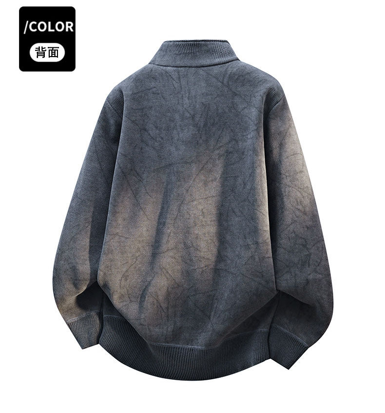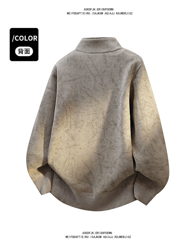 Men's Tie-Dye Sweater with Integrated Fleece, Thickened for Autumn and Winter, Half-Open Placket, Stand Collar, Warm Base Layer, Winter Top for Men