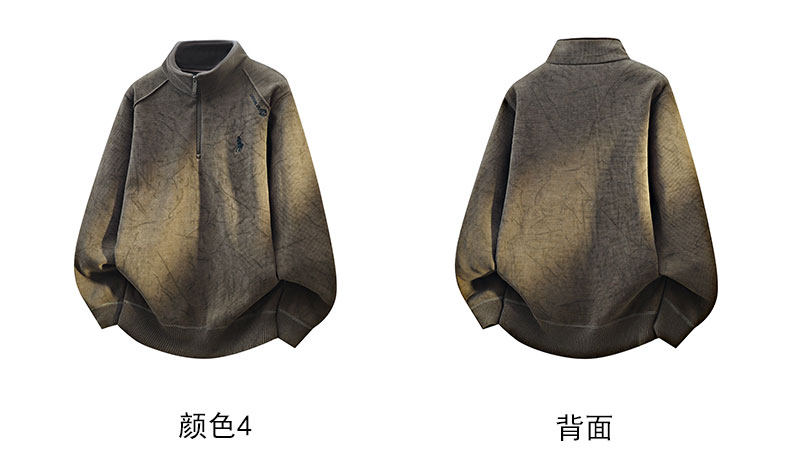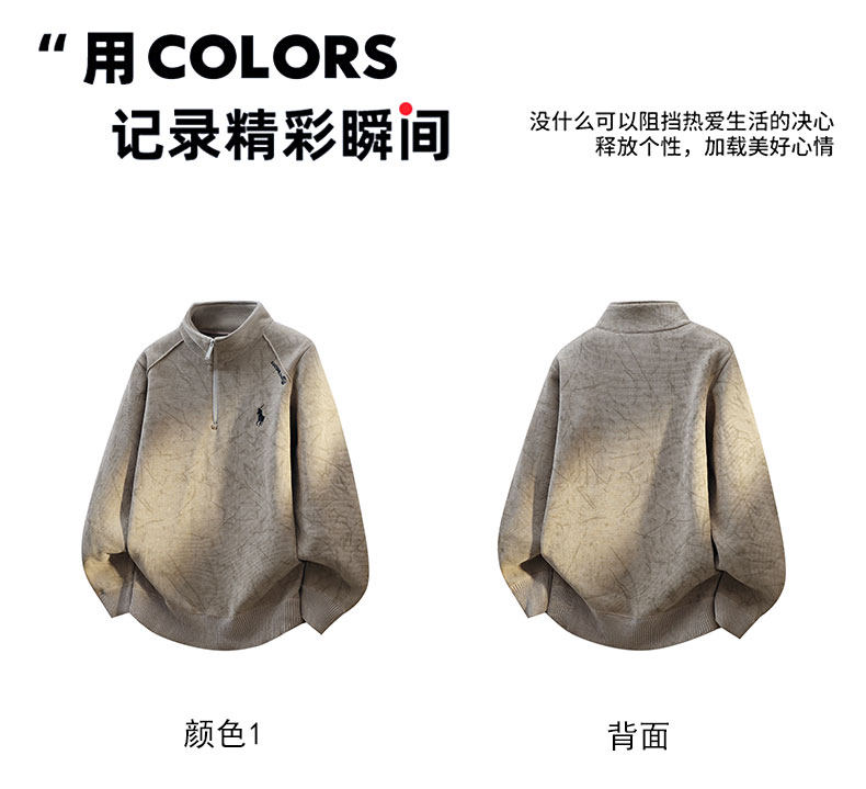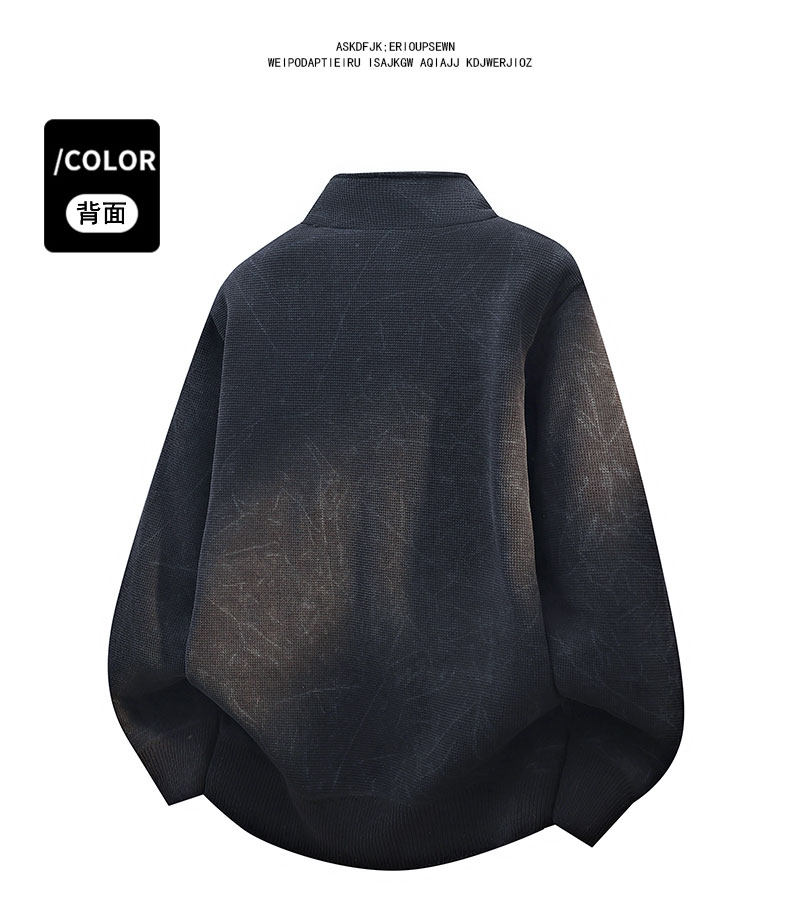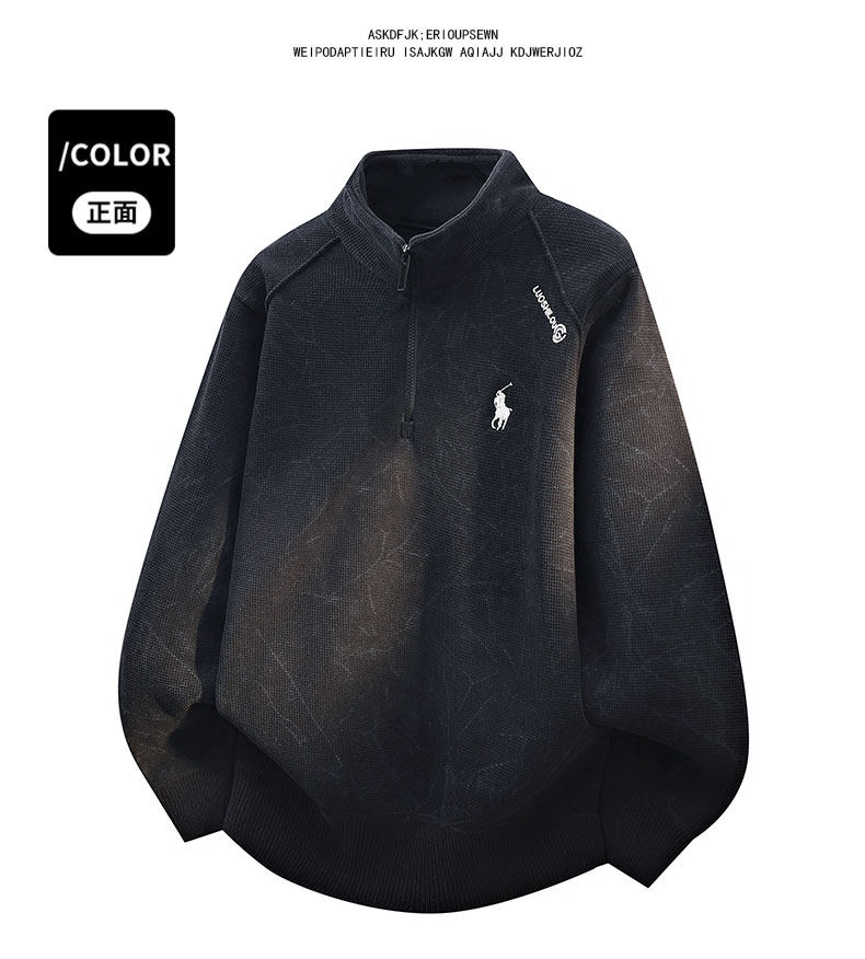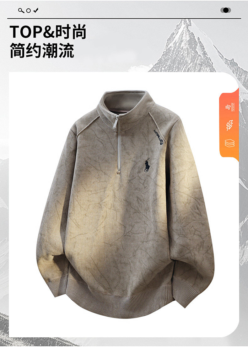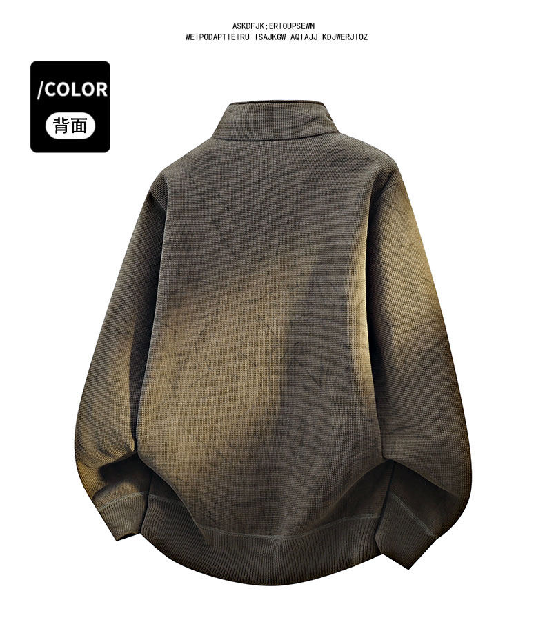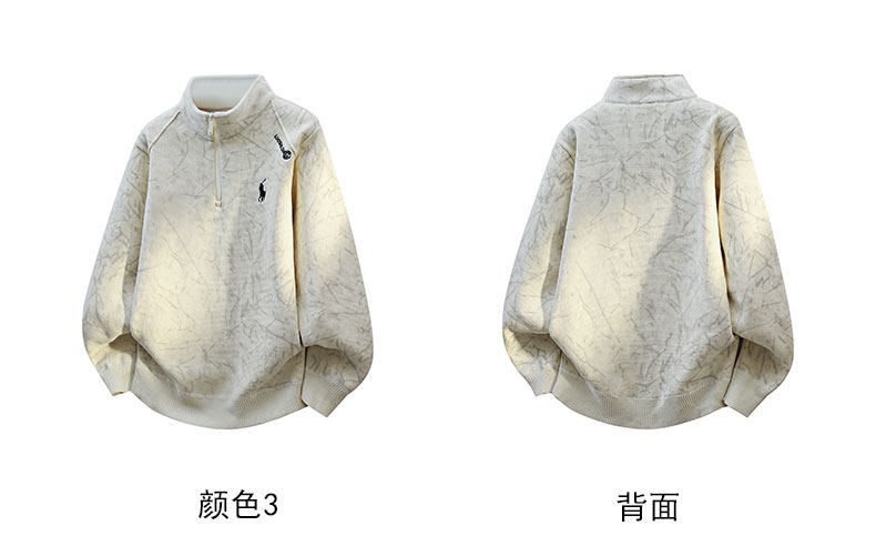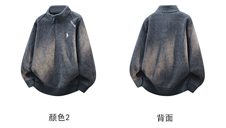 Men's Tie-Dye Sweater with Integrated Fleece, Thickened for Autumn and Winter, Half-Open Placket, Stand Collar, Warm Base Layer, Winter Top for Men