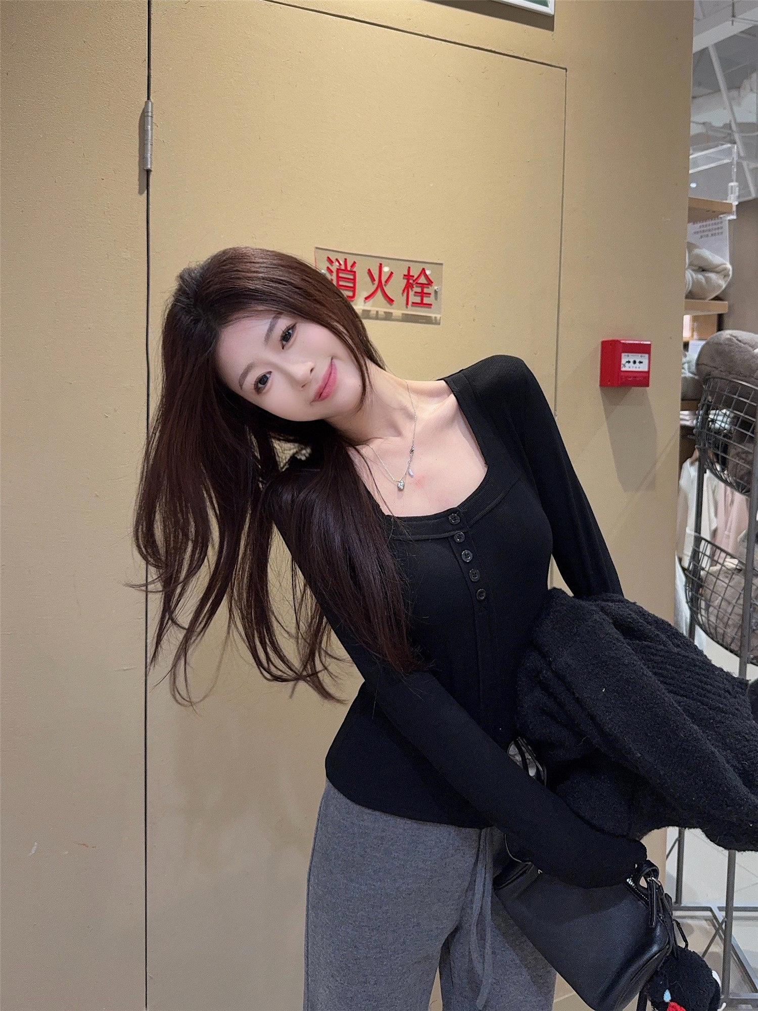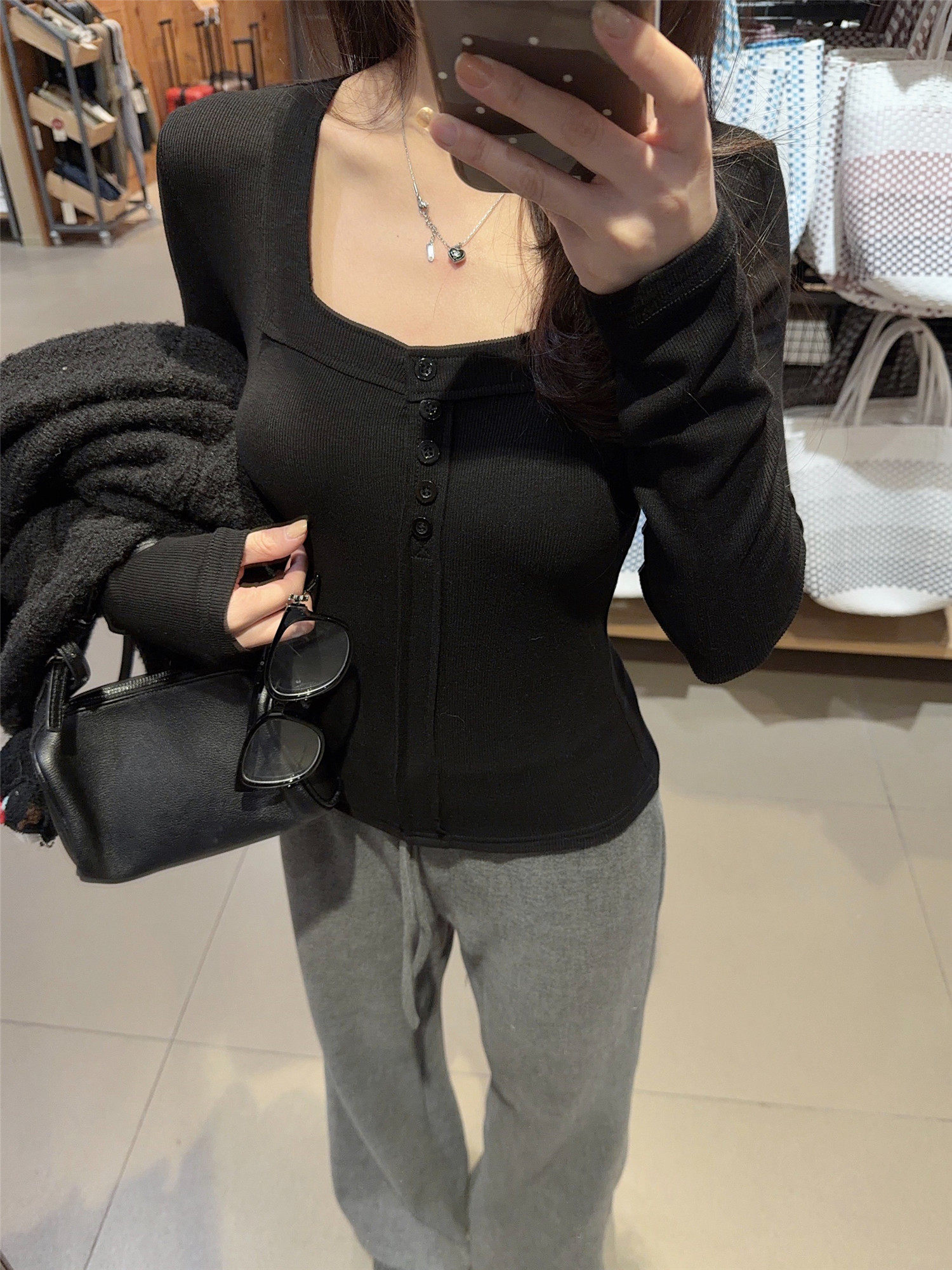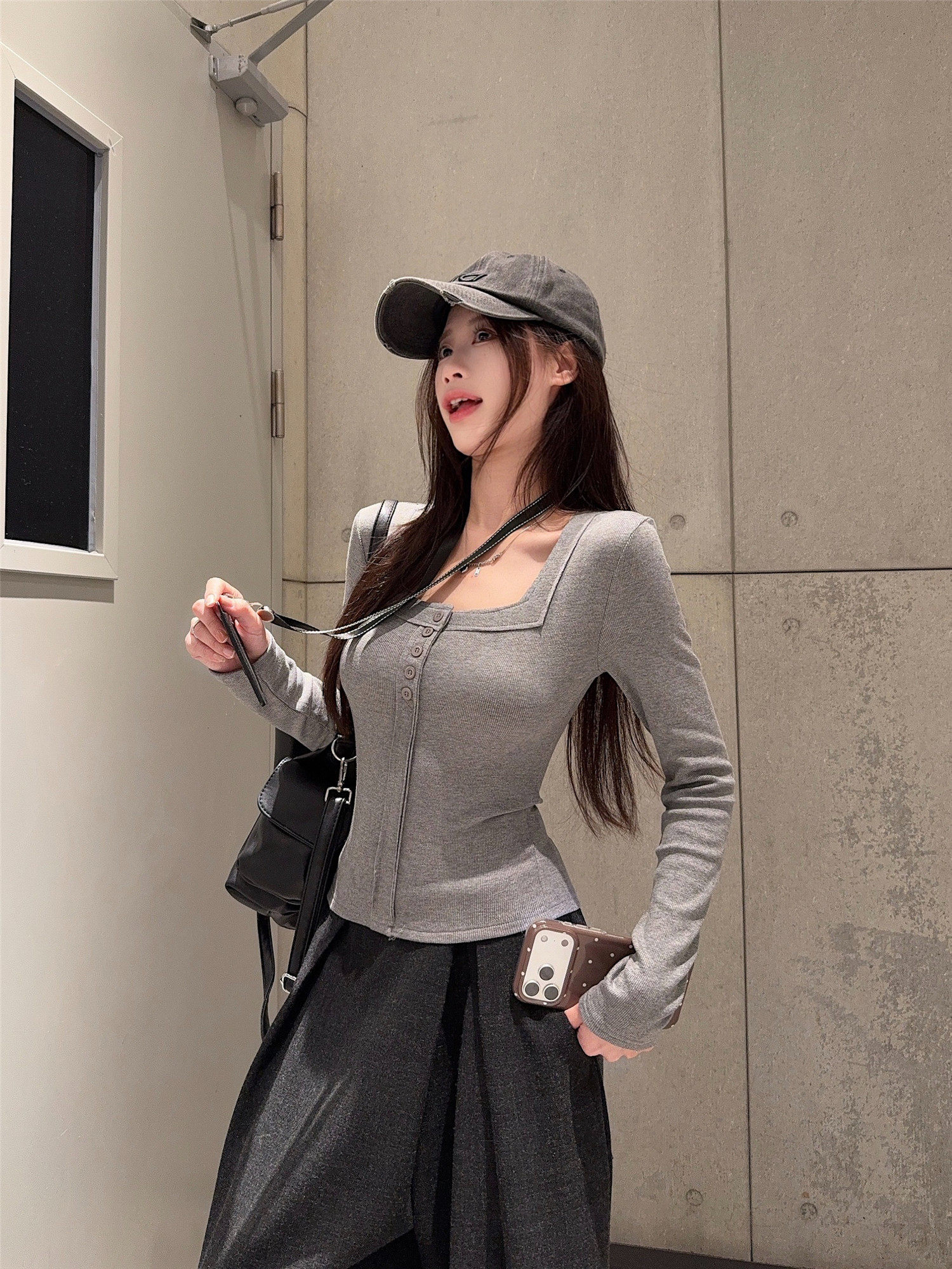 Pure Desire Style, High-End Feel, Warm Brushed Thin Velvet Square-Neck Long-Sleeve T-Shirt for Women, New Autumn and Winter Slim-Fit Base Shirt Top