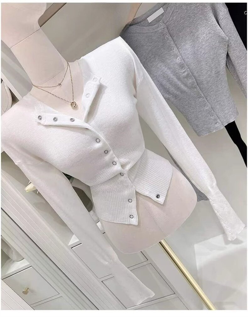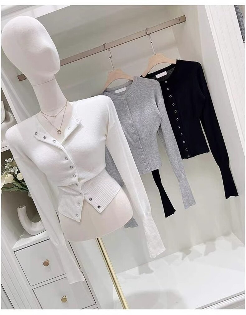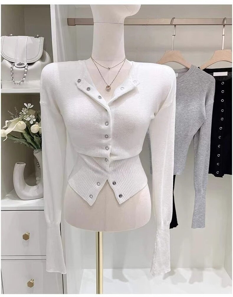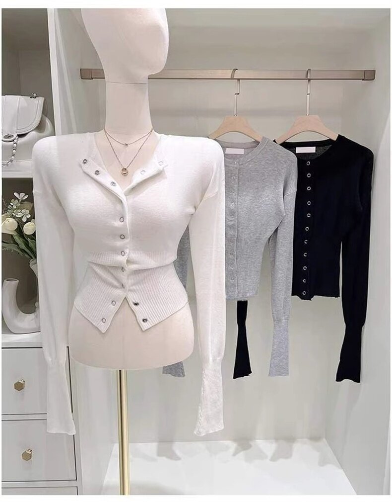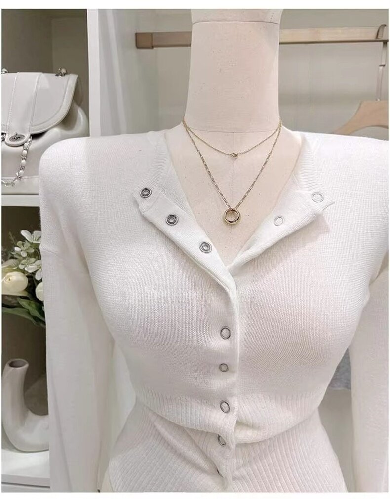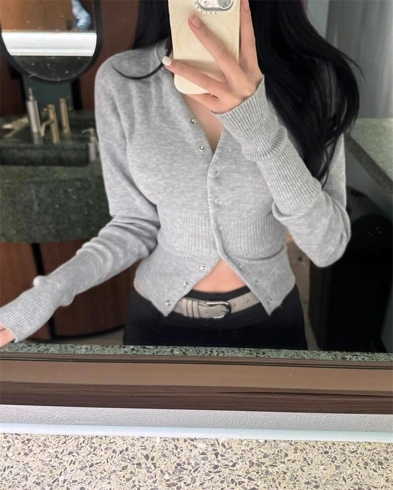 Pure Desire Style Single-Breasted Knit Cardigan for Women, New Autumn and Winter Slim Fit, Waist-Cinching, Round Neck, Long Sleeve, Trendy Small Cardigan
