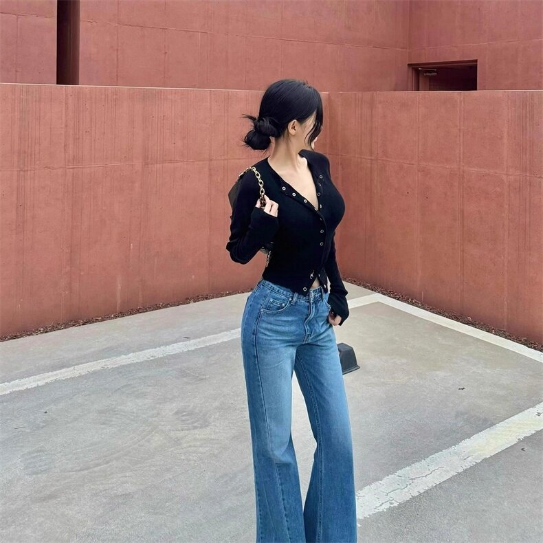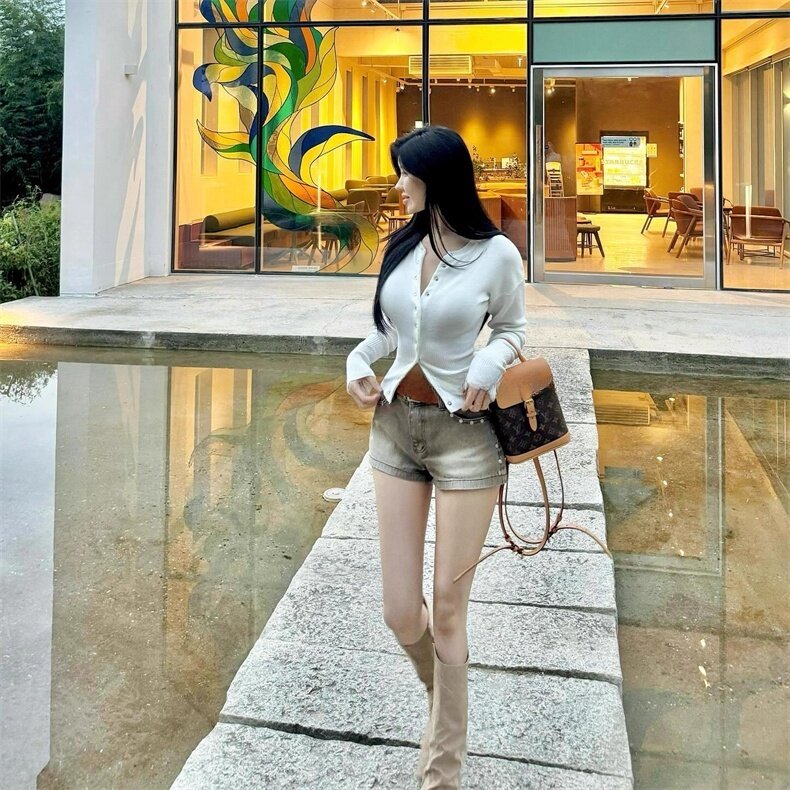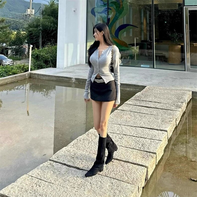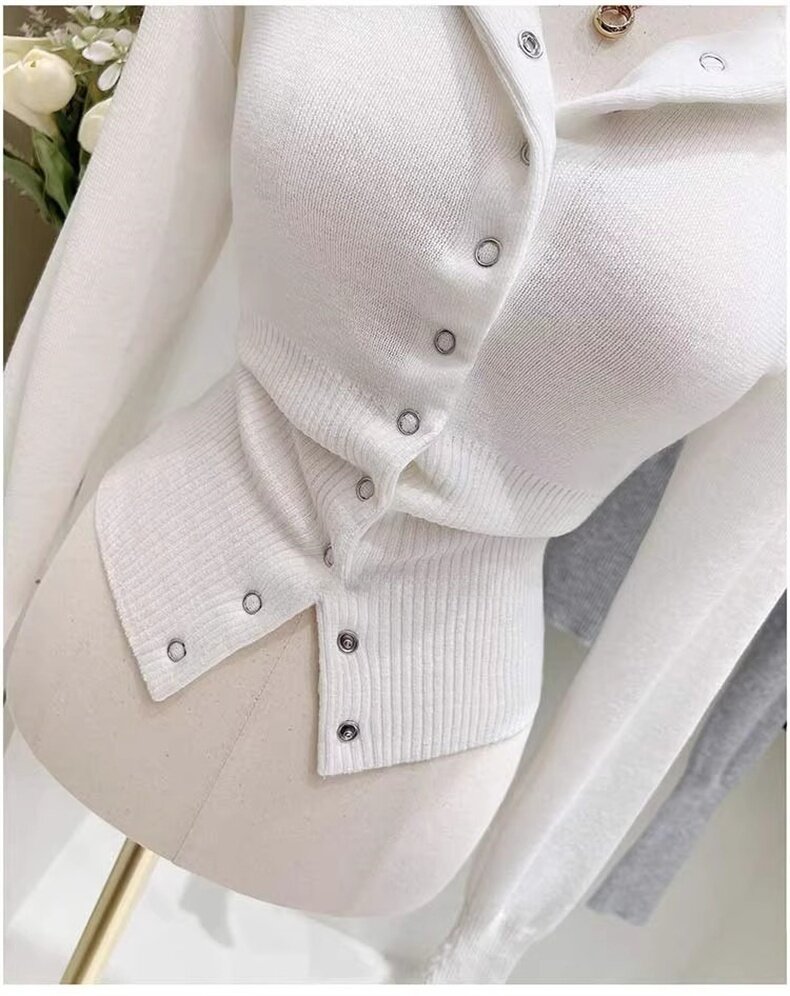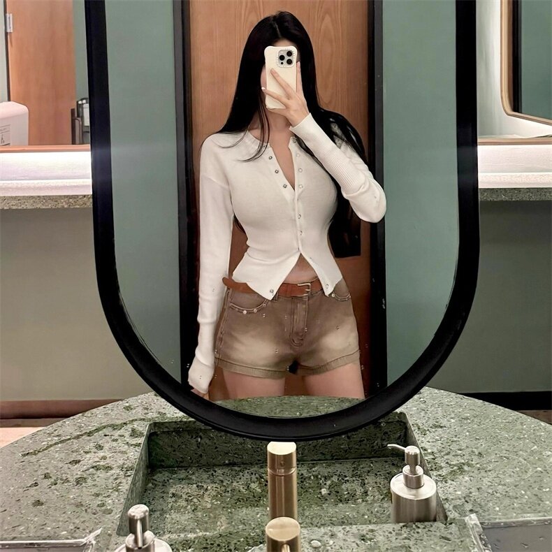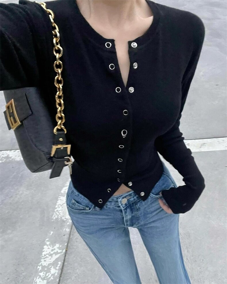 Pure Desire Style Single-Breasted Knit Cardigan for Women, New Autumn and Winter Slim Fit, Waist-Cinching, Round Neck, Long Sleeve, Trendy Small Cardigan