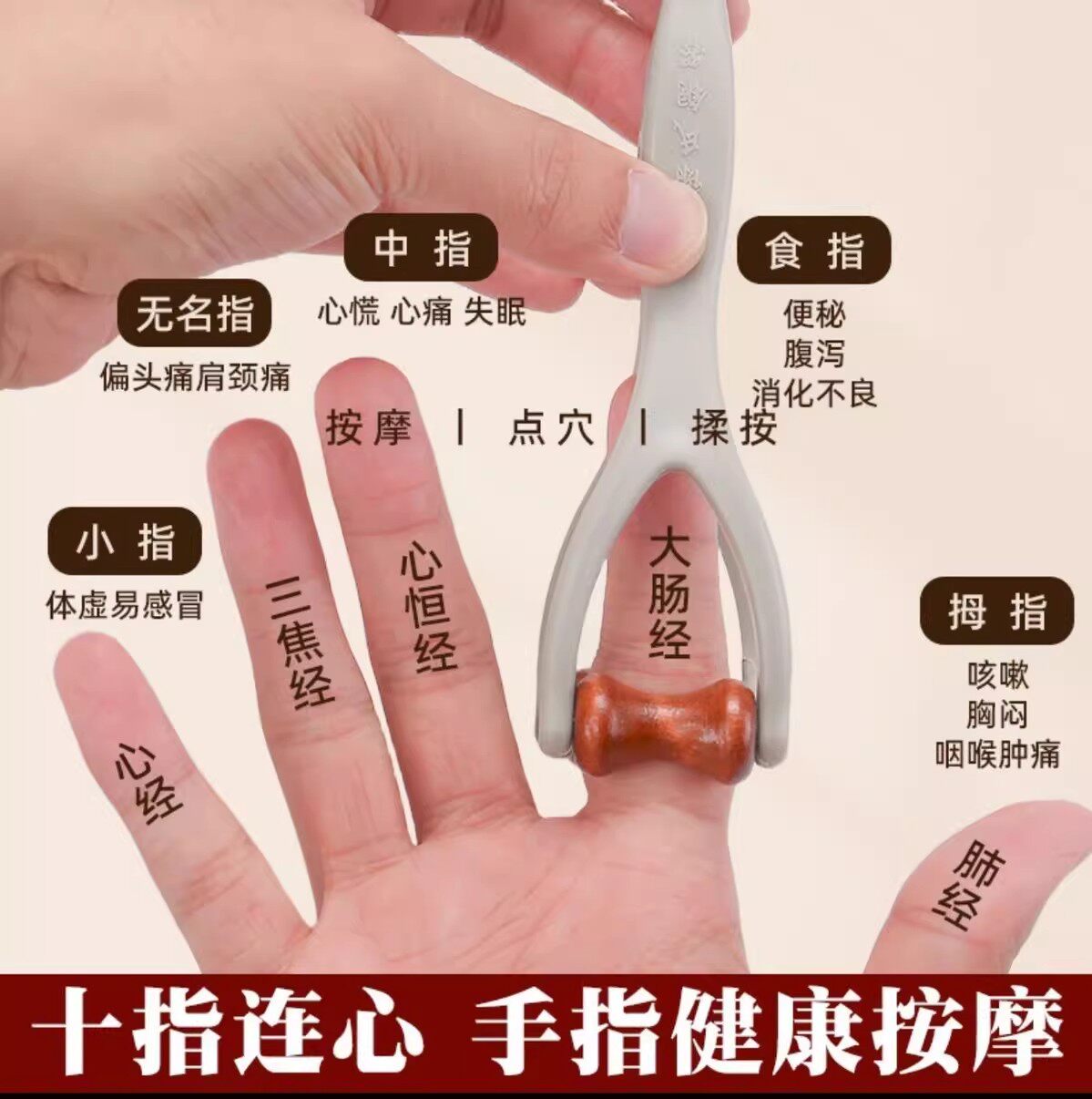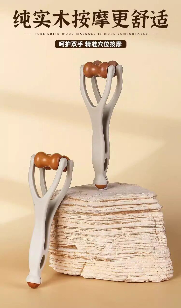 Finger Massager with Stone Roller for Massaging Hand Joints, Unblocking Meridians, Making Them Thinner and Longer, Finger Scraping Tool