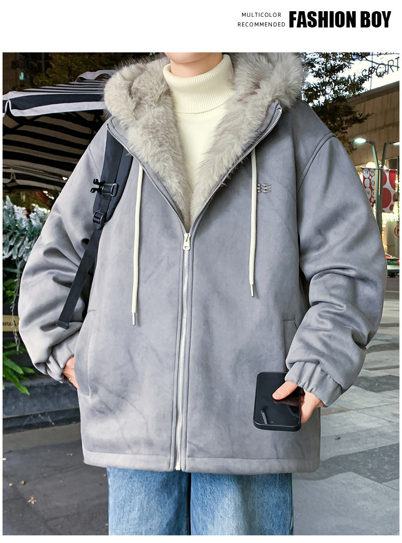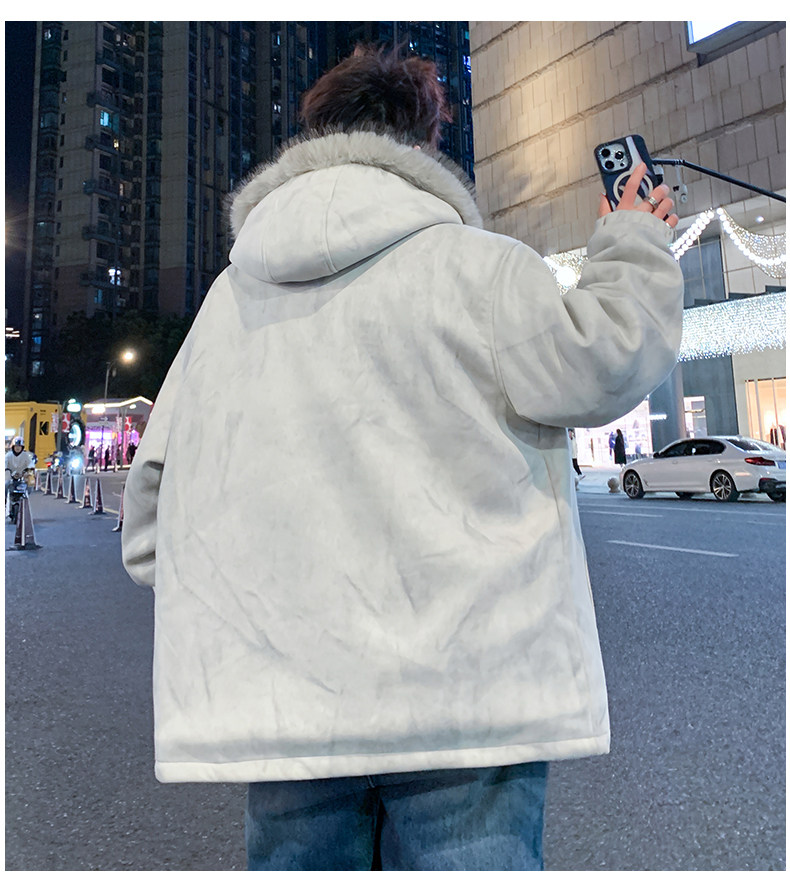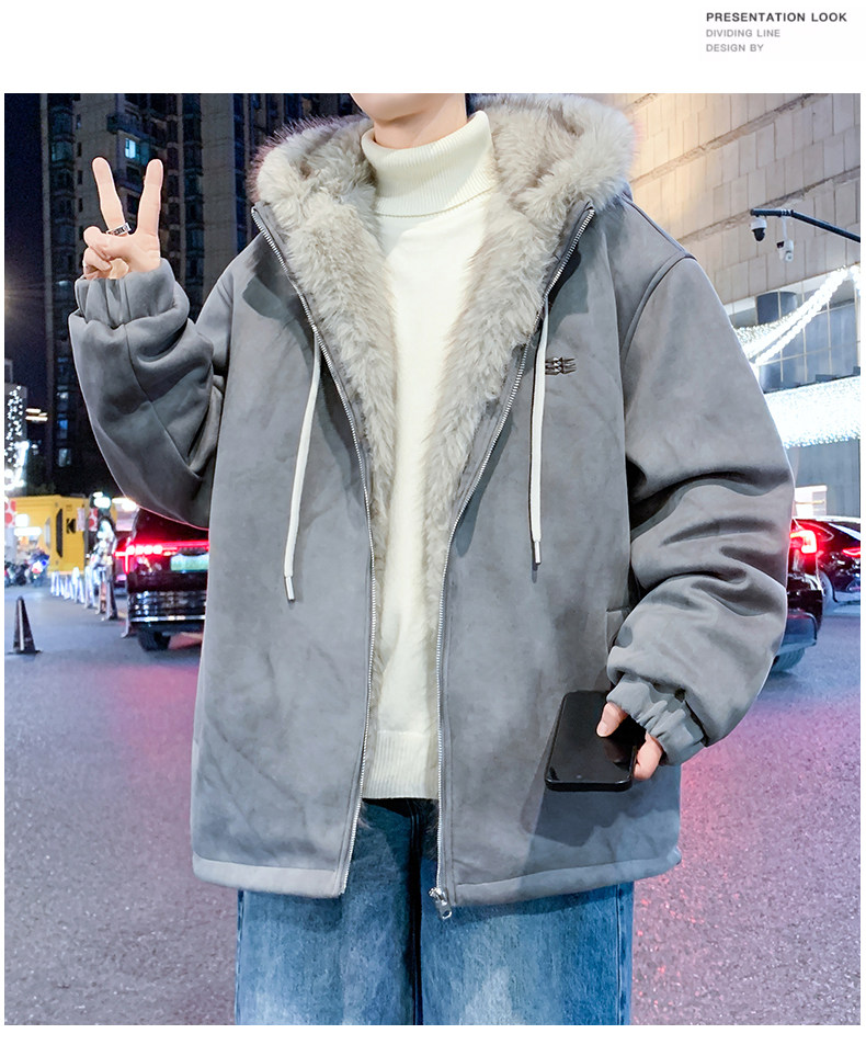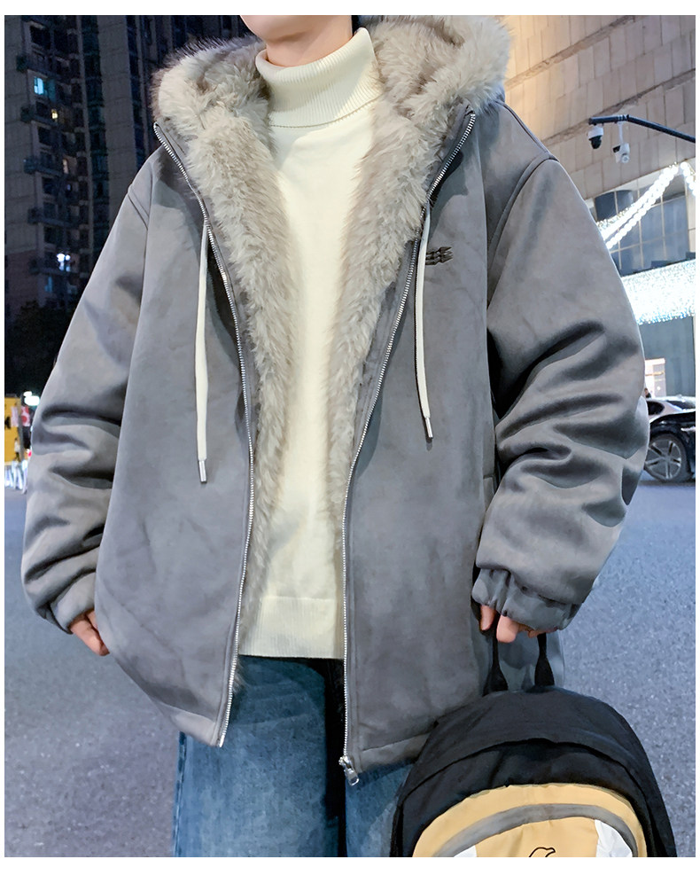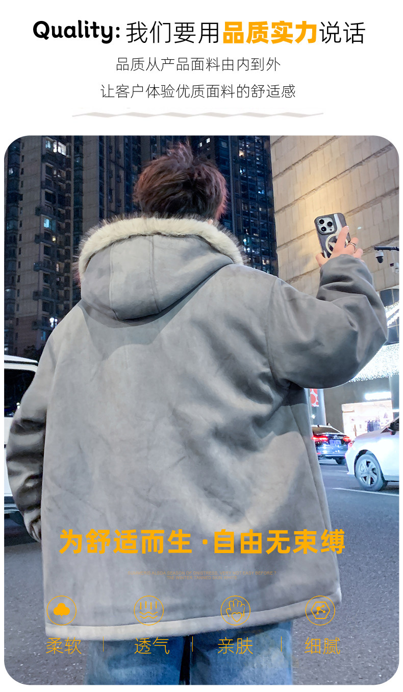 Mountain carving plus velvet thickened jacket men's winter handsome plush hooded jacket men's youth warm jacket