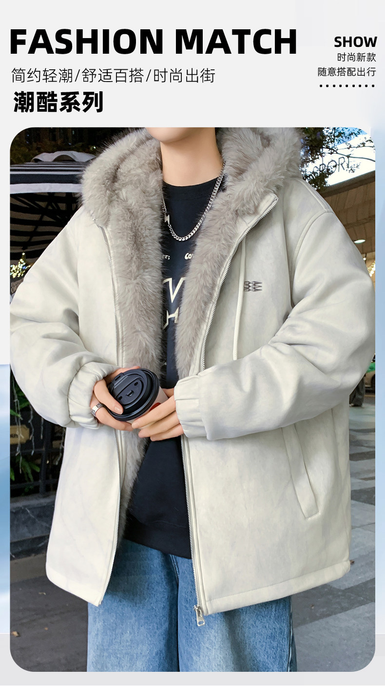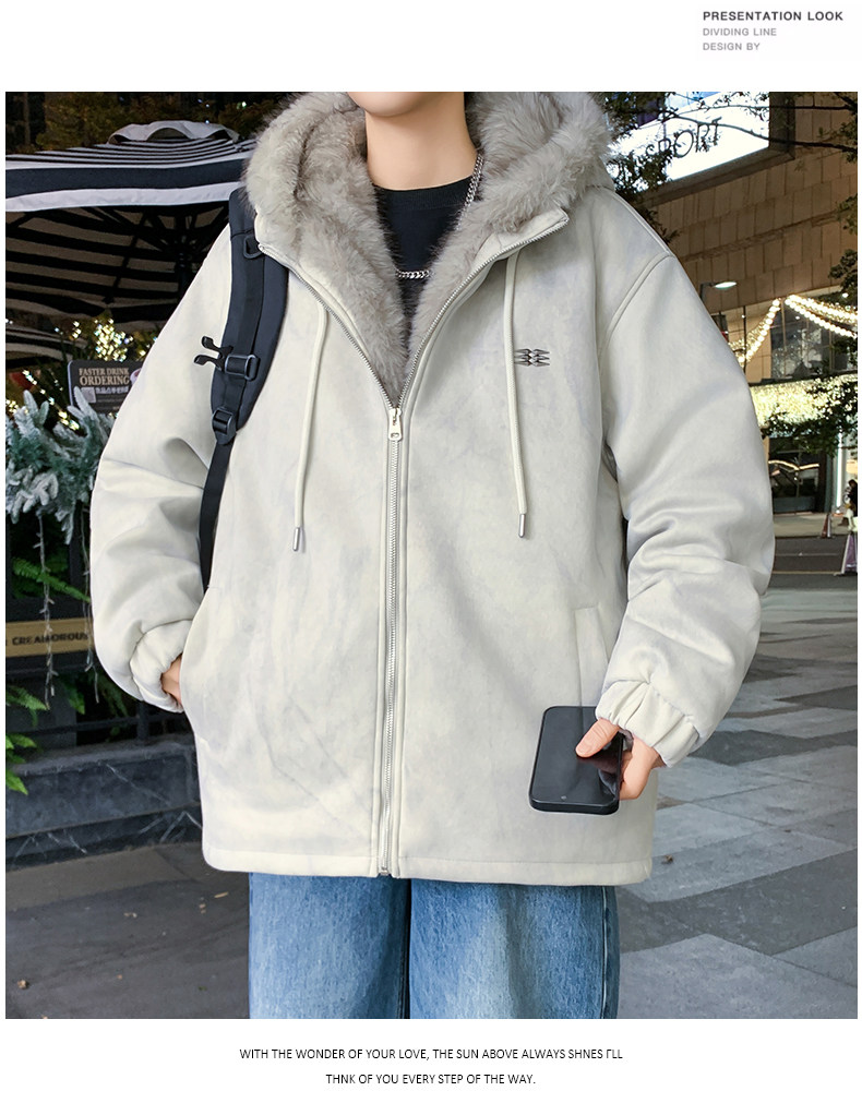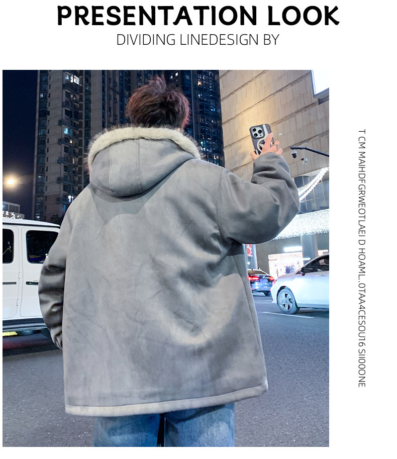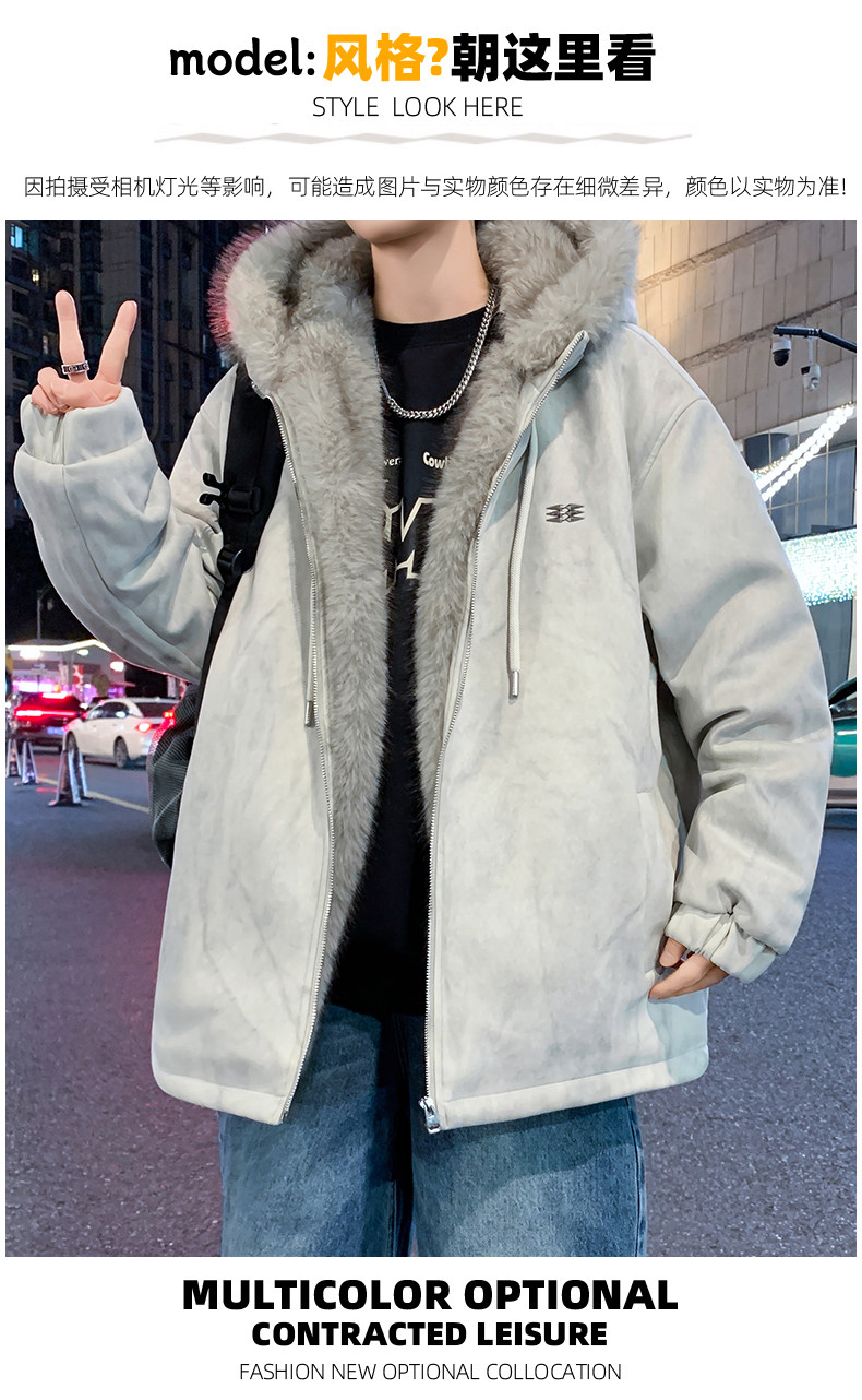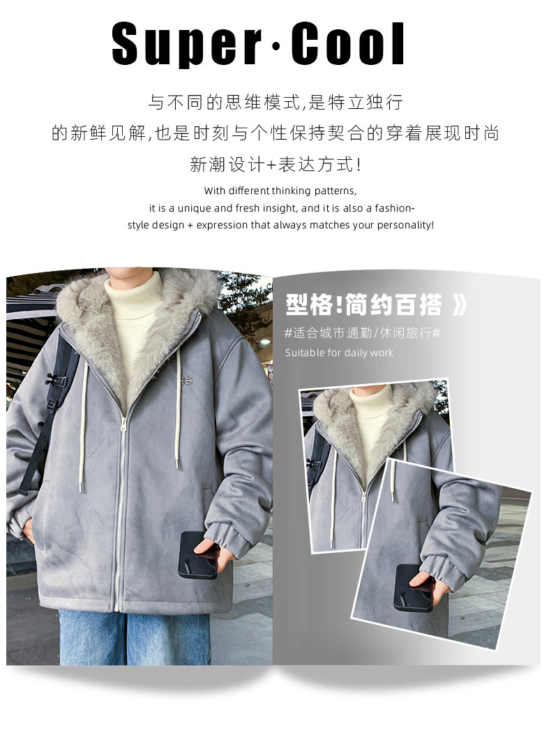 Mountain carving plus velvet thickened jacket men's winter handsome plush hooded jacket men's youth warm jacket