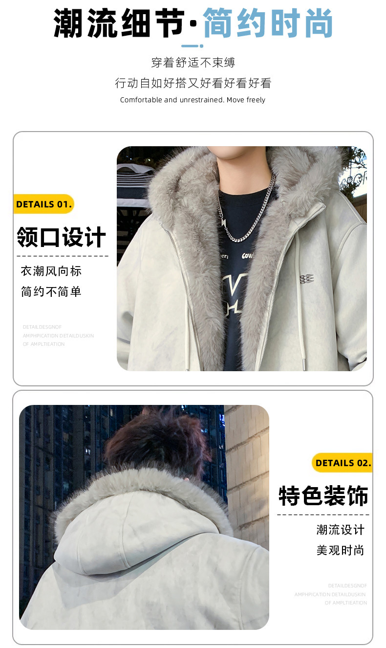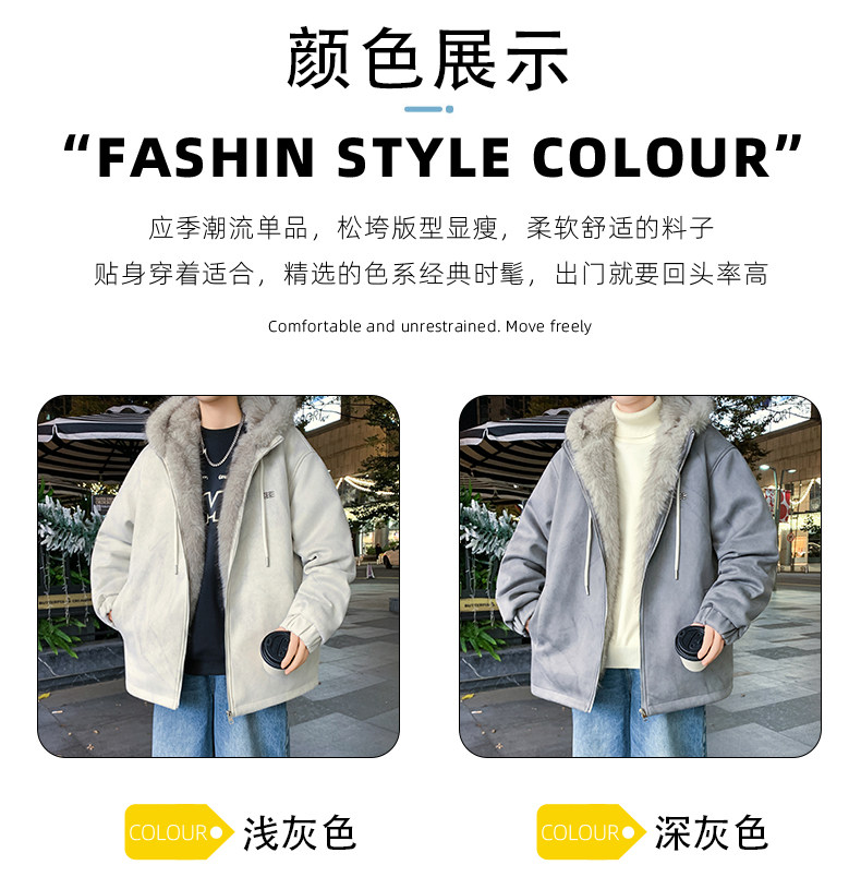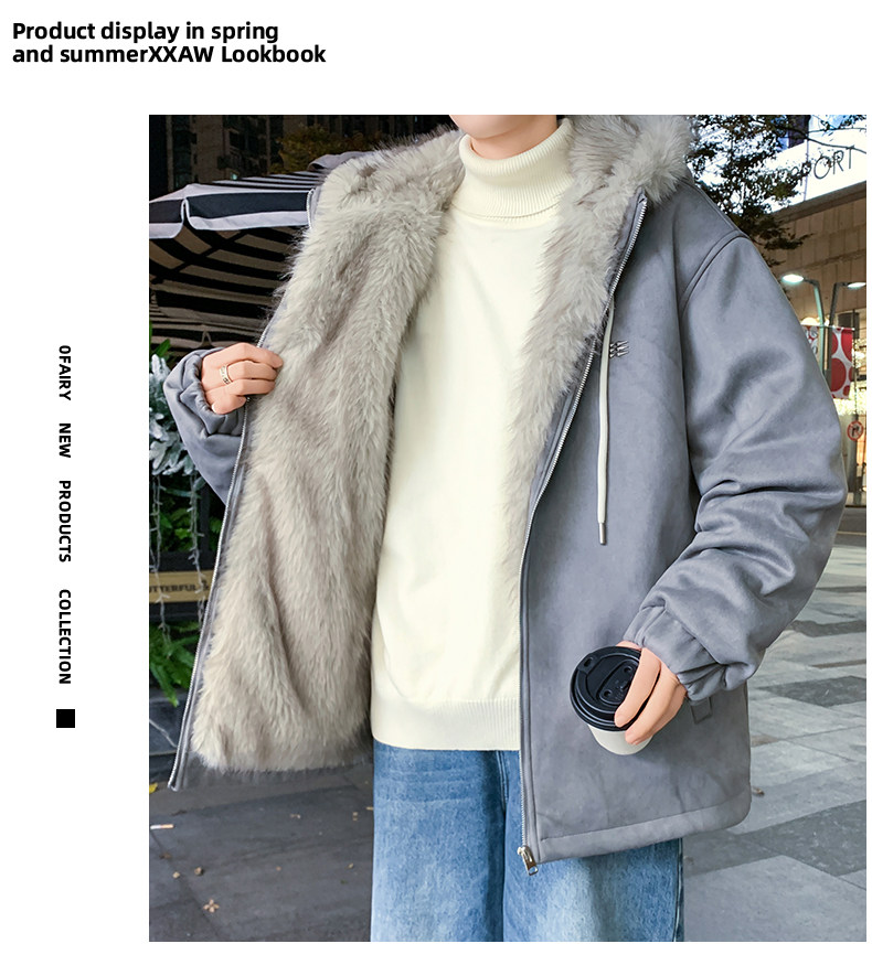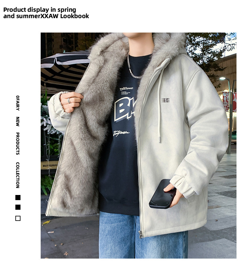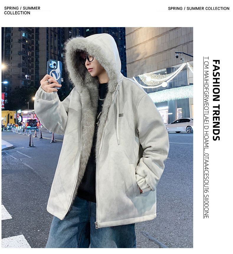 Mountain carving plus velvet thickened jacket men's winter handsome plush hooded jacket men's youth warm jacket