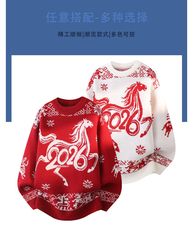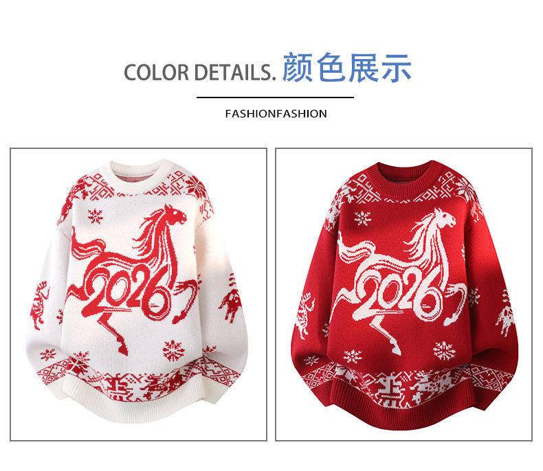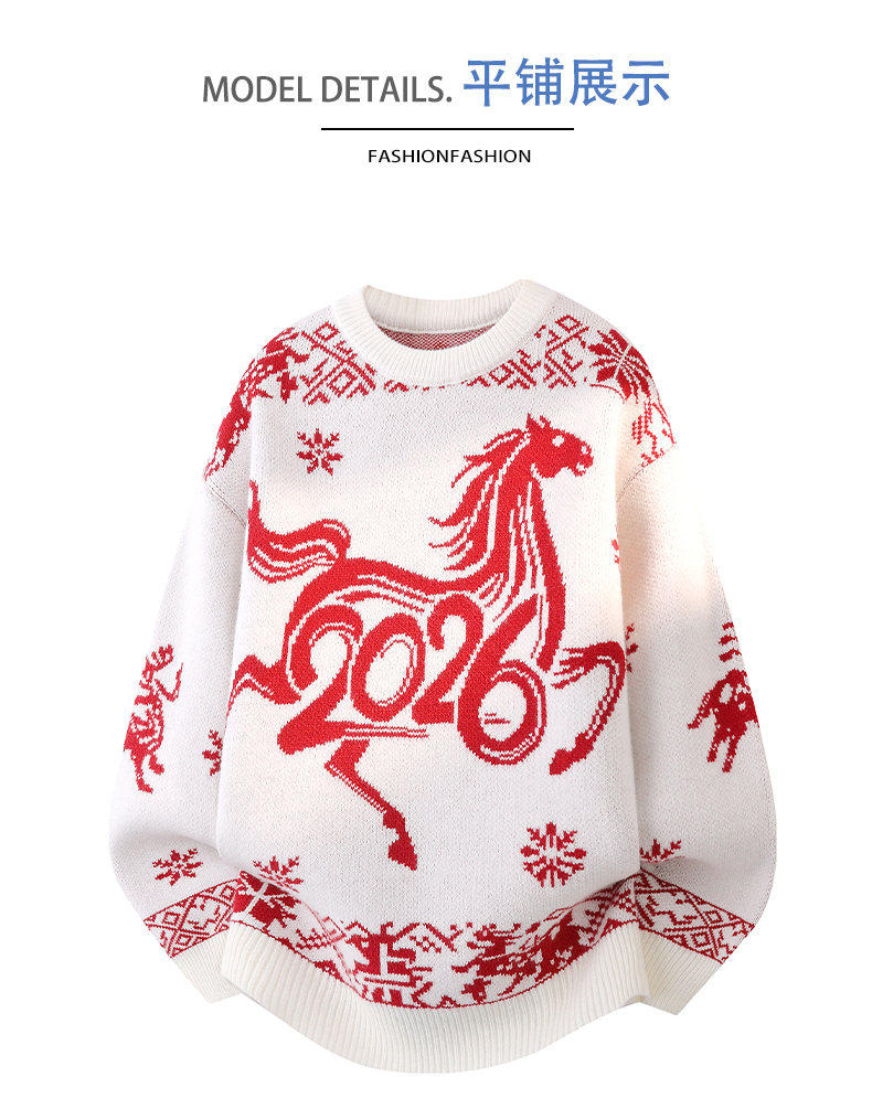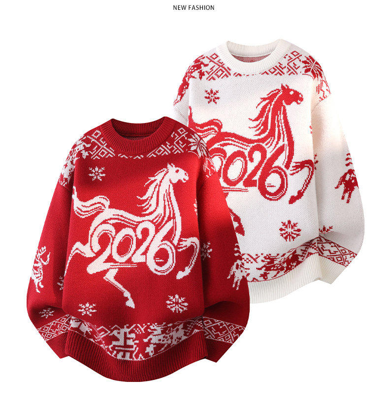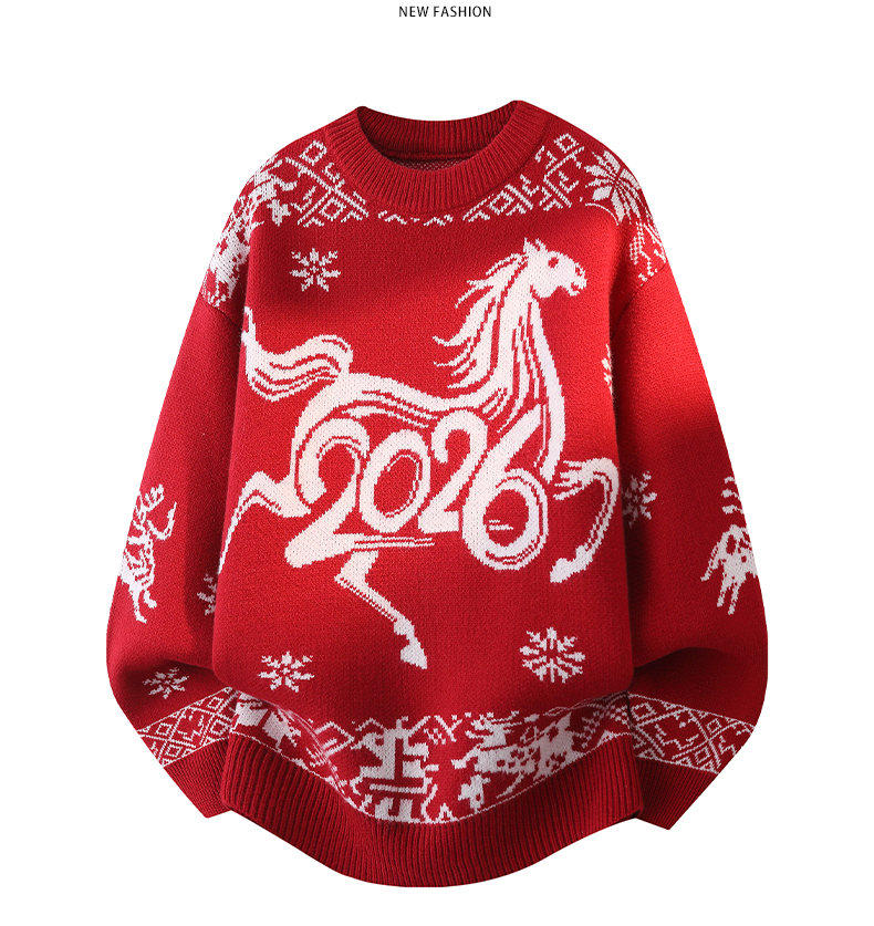 Red Sweater for Men in Their Zodiac Year, Round Neck, Warm Knitwear, Trendy for Teenagers and Students, New Model for the Year of the Horse, Base Layer Sweater