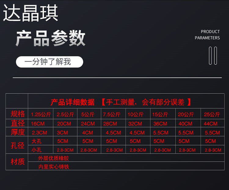 Color Classification Black 2.5kg X 2 Pieces Large Hole Rubber-Coated Cast Iron Barbell Pieces,Black 5kg X 2 Pieces Large Hole Rubber-Coated Cast Iron Barbell Pieces,Black 10kg X 2 Pieces Large Hole Rubber-Coated Cast Iron Barbell Pieces,Black 15kg X 2 Pieces Large Hole Rubber-Coated Cast Iron Barbell Pieces,Black 20kg X 2 Pieces Large Hole Rubber-Coated Cast Iron Barbell Pieces,Black 25kg X 2 Pieces Large Hole Rubber-Coated Cast Iron Barbell Pieces,Black, One Pair Each for 2.5-20kg, Total Weight 105kg Combination,Black, One Pair Each for 2.5-25kg, Total Weight 155kg Combination,Black 2.5kg X 2 Three-Hole Rubber-Coated Cast Iron Cymbal,Black 5kg X 2 Three-Hole Rubber-Coated Cast Iron Flying Discs,Black 10kg X 2 Three-Hole Rubber-Coated Cast Iron Flying Rings,Black 15kg X 2 Three-Hole Rubber-Coated Cast Iron Cymbal,Black 20kg X 2 Three-Hole Rubber-Coated Cast Iron Flying Rings,Black 25kg X 2 Three-Hole Rubber-Coated Cast Iron Flying Discs,Black, 2.5-20kg Range, One Pair of Each Weight, Total Weight 105kg,Black 2.5-25kg Each Pair Combination, Total Weight 155kg,Black 1.25kg X 2 Painted Cast Iron Three-Hole Barbell Plates,Black 2.5kg X 2 Painted Cast Iron Three-Hole Barbell Plates,Black 5kg X 2 Painted Cast Iron Three-Hole Barbell Plates,Black 10kg X 2 Painted Cast Iron Three-Hole Barbell Plates,Black 15kg X 2 Painted Cast Iron Three-Hole Barbell Plates,Black 20kg X 2 Painted Cast Iron Three-Hole Barbell Plates,Black, 1.25-20kg, One Pair Each. Total Weight: 107.5kg,Black 1.25kg X 2 Pieces, Four-Ribbed, Large-Pore Cast Iron Grinding Wheel,Black 2.5kg X 2 Pieces, Four-Ribbed, Large-Pore Cast Iron Grinding Wheel,Black 5kg X 2 Pieces, Four-Ribbed, Large-Pore Cast Iron Grinding Wheel,Black 10kg X 2 Pieces, Four-Ribbed, Large-Pore Cast Iron Plates,Black 15kg X 2 Pieces, Four-Ribbed, Large-Pore Cast Iron Weights,Black 20kg X 2 Pieces, Four-Ribbed, Large-Pore Cast Iron Plates,Black 25kg X 2 Pieces, Four-Ribbed, Large-Pore Cast Iron Plates,Black 1.25-20kg Each Pair Combination, Total 107.5kg,Black, One Pair Each for 1.25-25kg, Total Weight 157.5kg