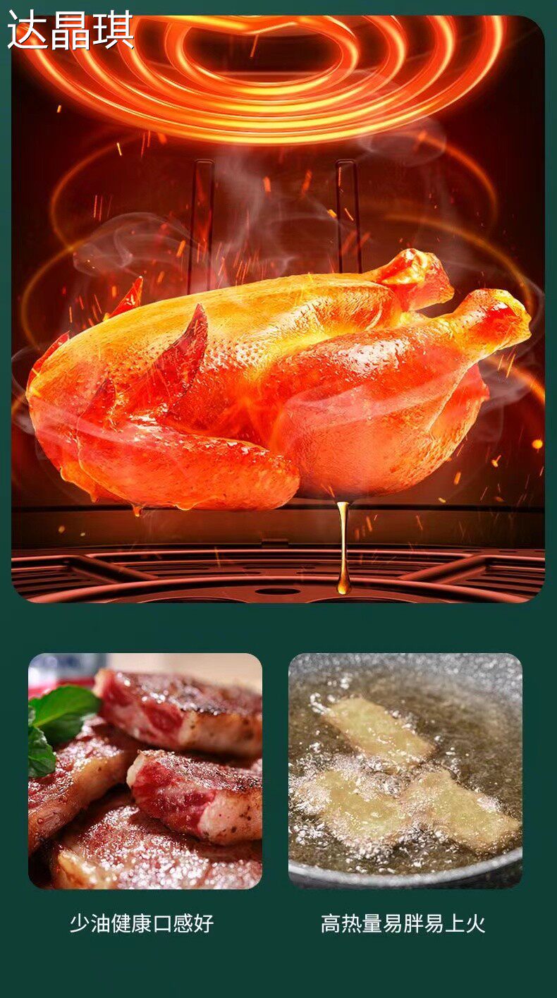 16-Liter Air Fryer, New Model, Top Ten Brands, 2024 Multifunctional Large-Capacity Oven, Visual Smart Electric Fryer, with Removable Tray and Pull-Out Cart