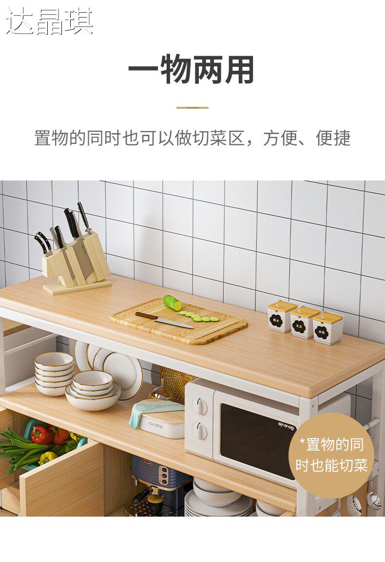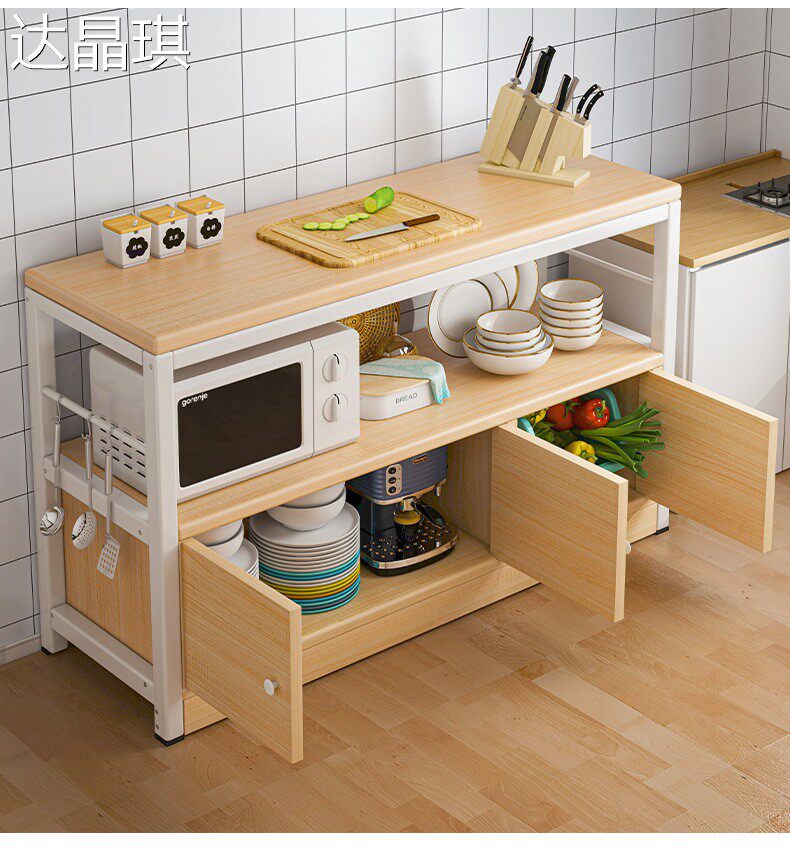 Kitchen small long table household multi-layer table movable vegetable cutting table double-layer wooden table simple rectangular multi-functional table bed sheet pull cart