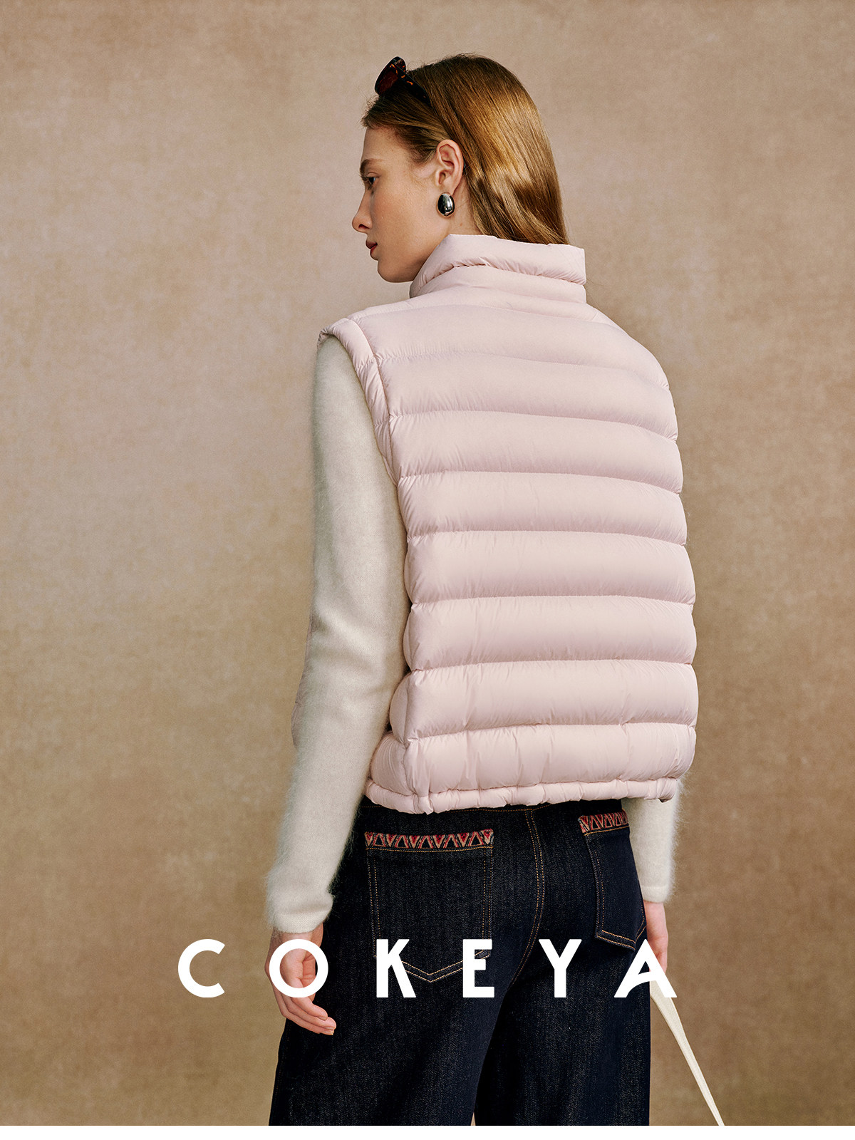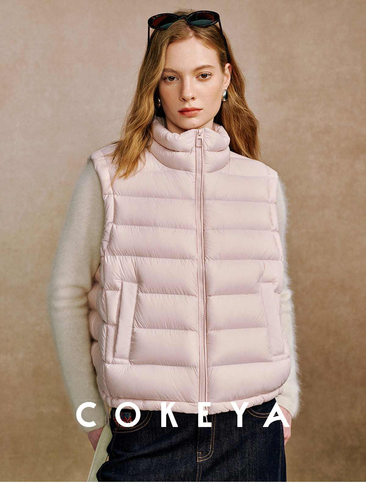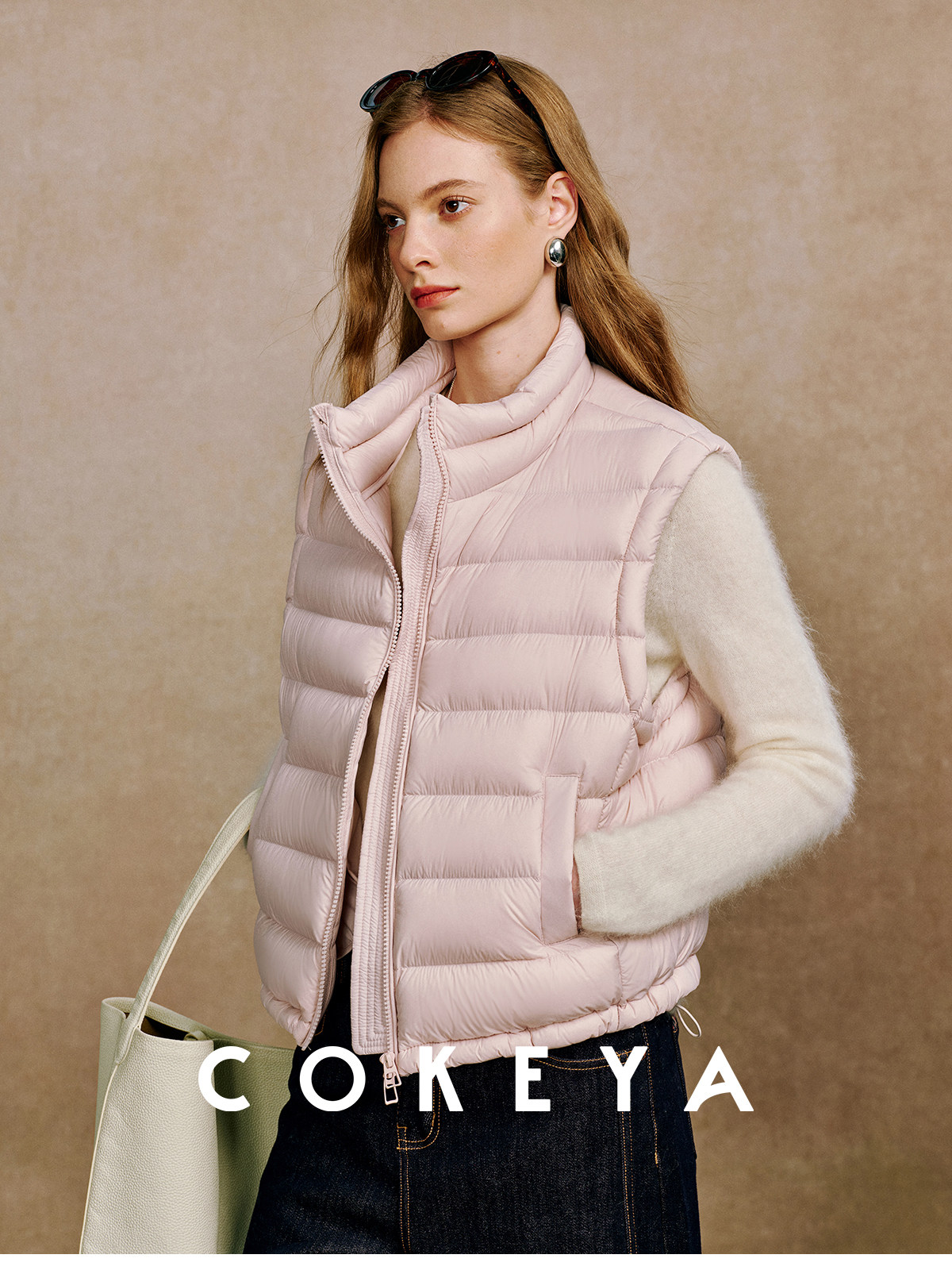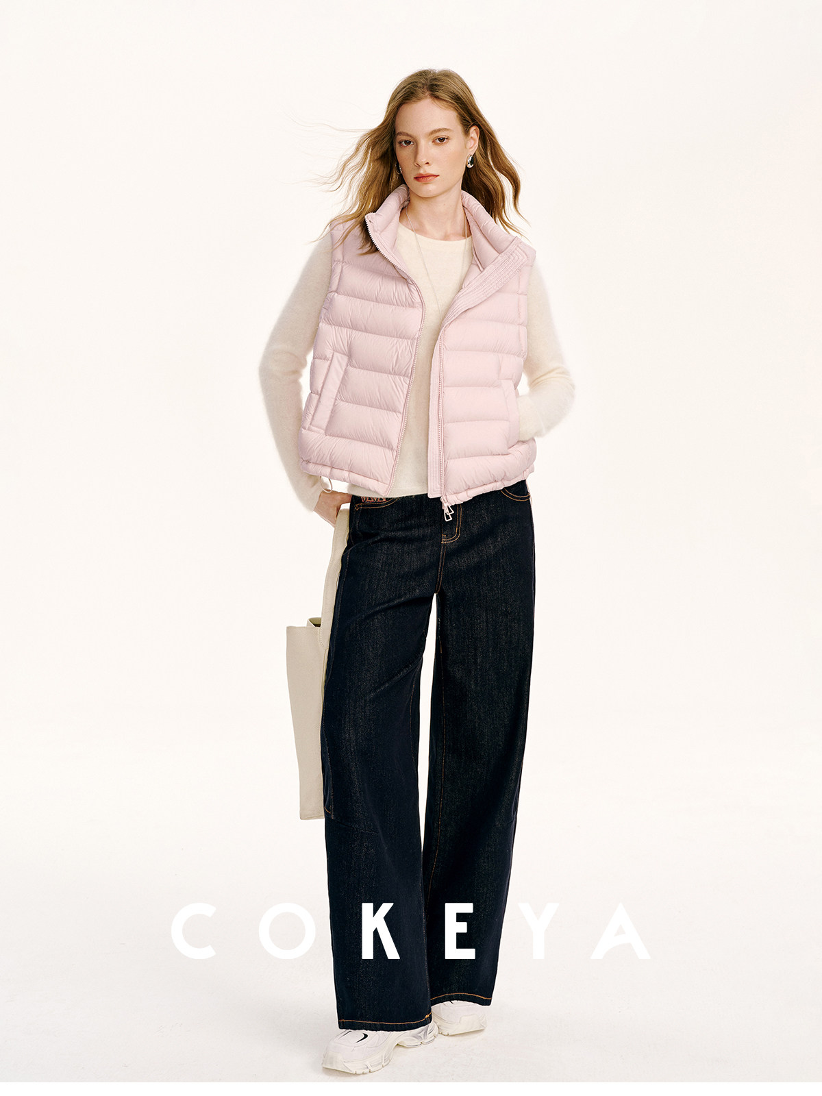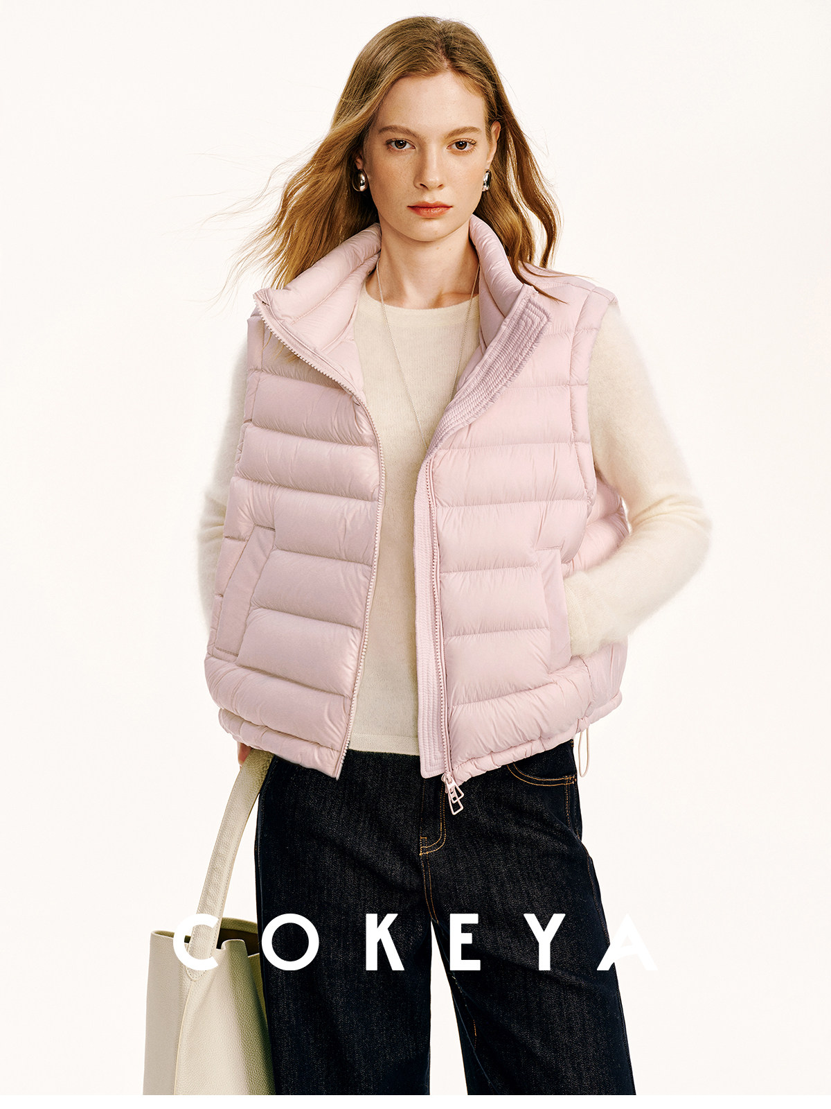 Light and warm ribs down ~M1U series 90 white goose down light and thin stand-up collar down vest for women in winter