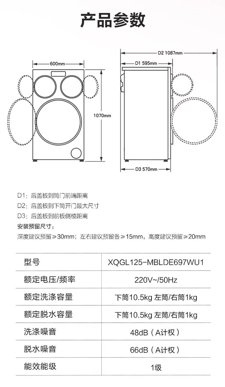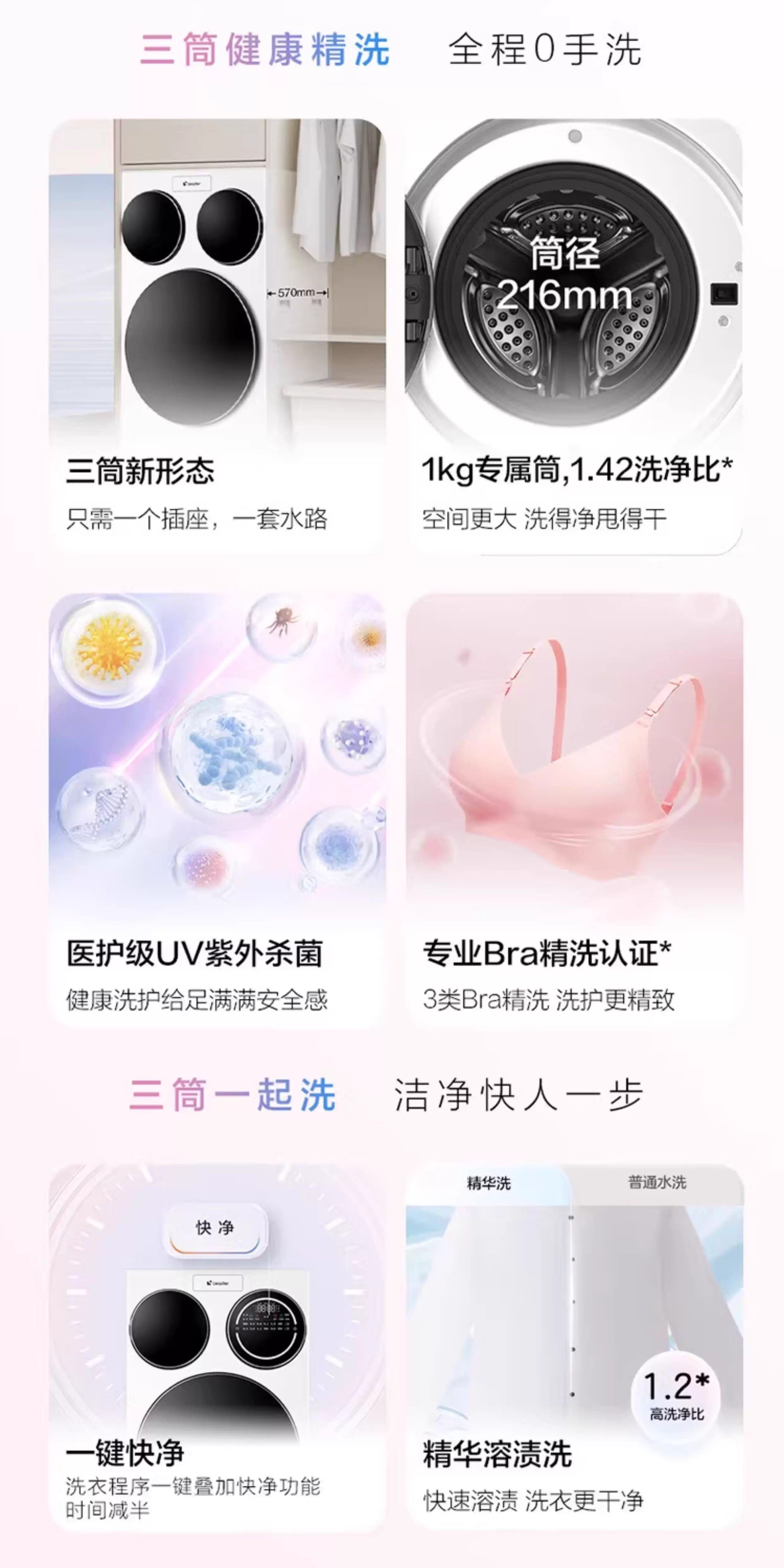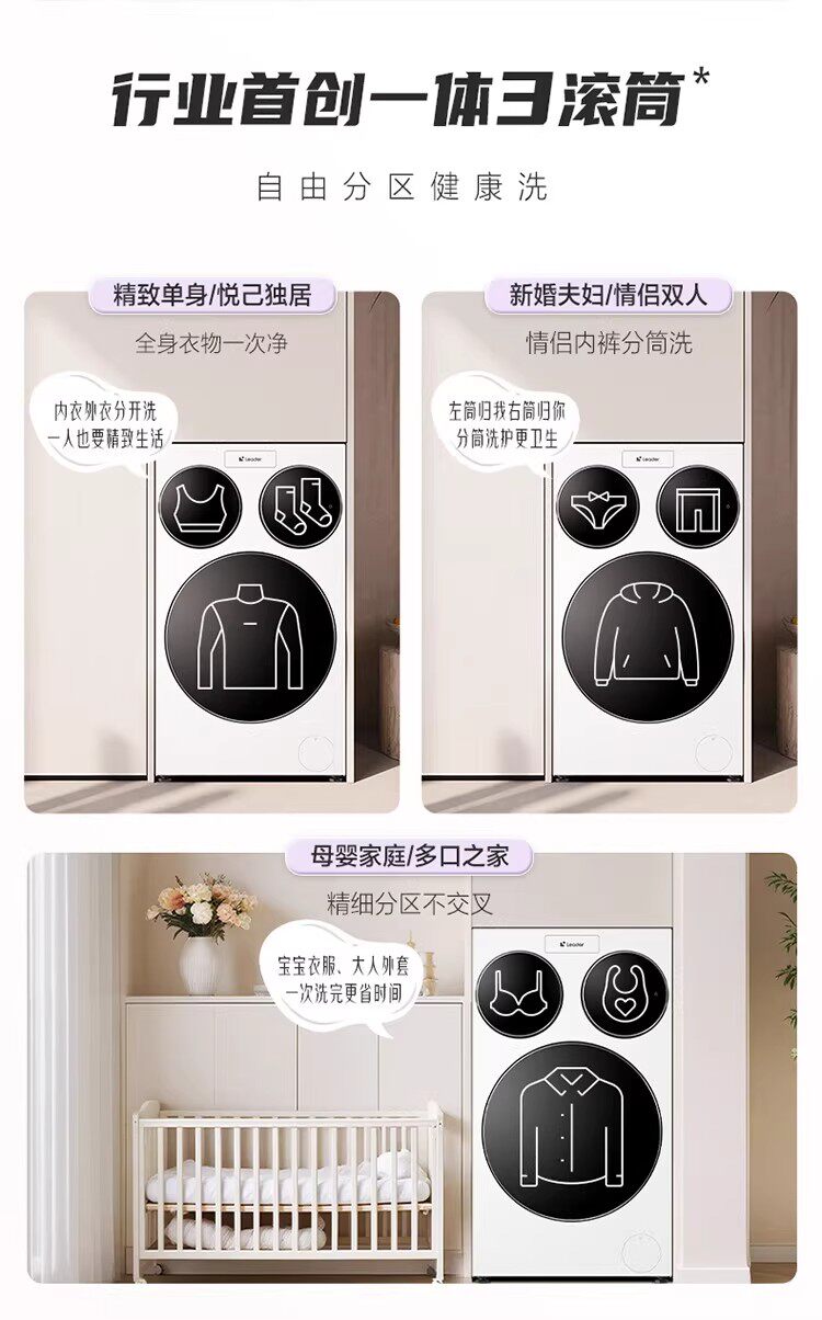 Haier Commander Three-Tub Washing Machine White Direct Drive Inverter Essence Wash Xqgl125-Mblde697Wu1