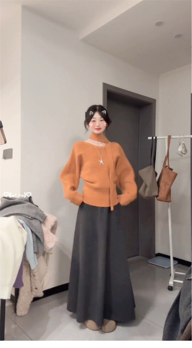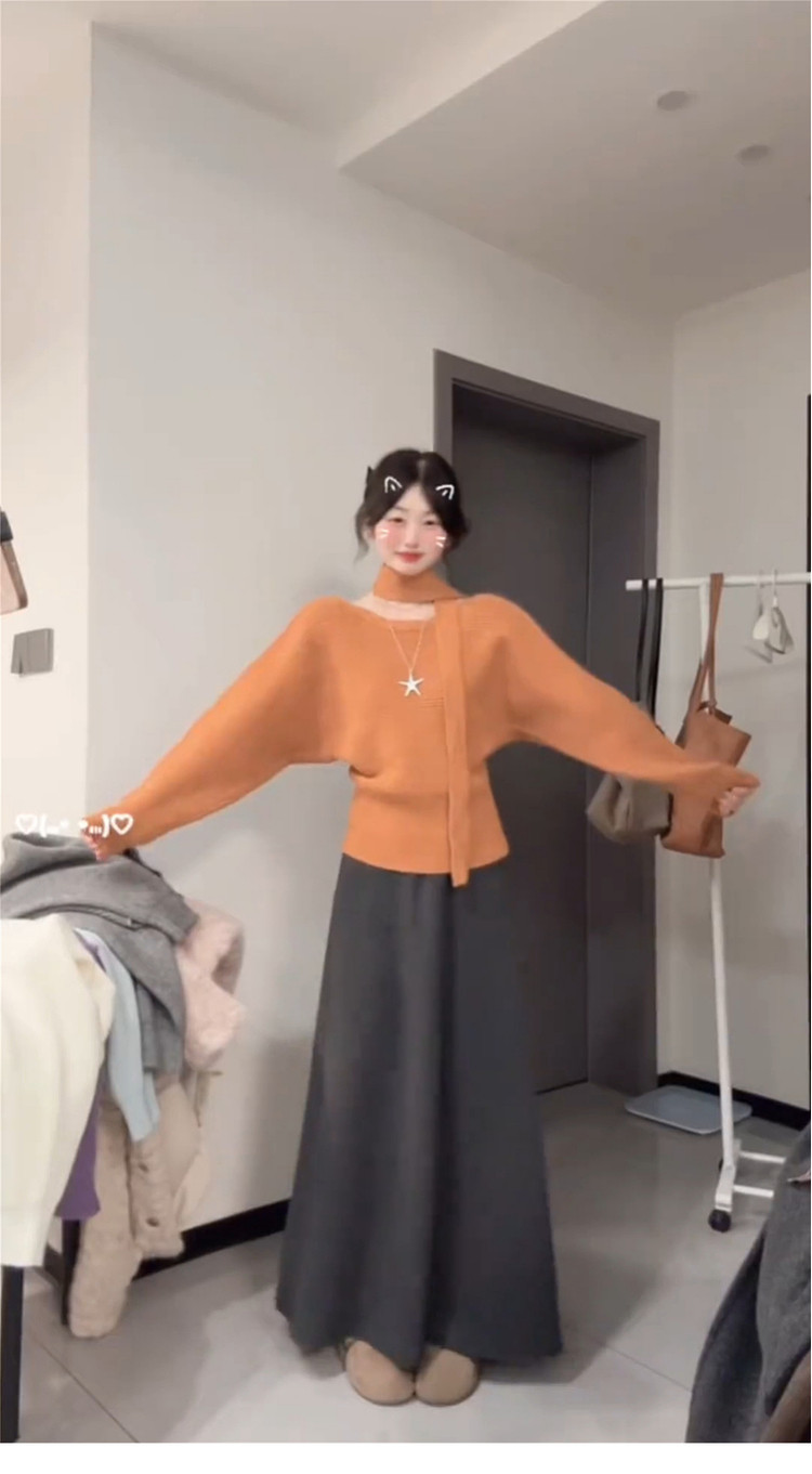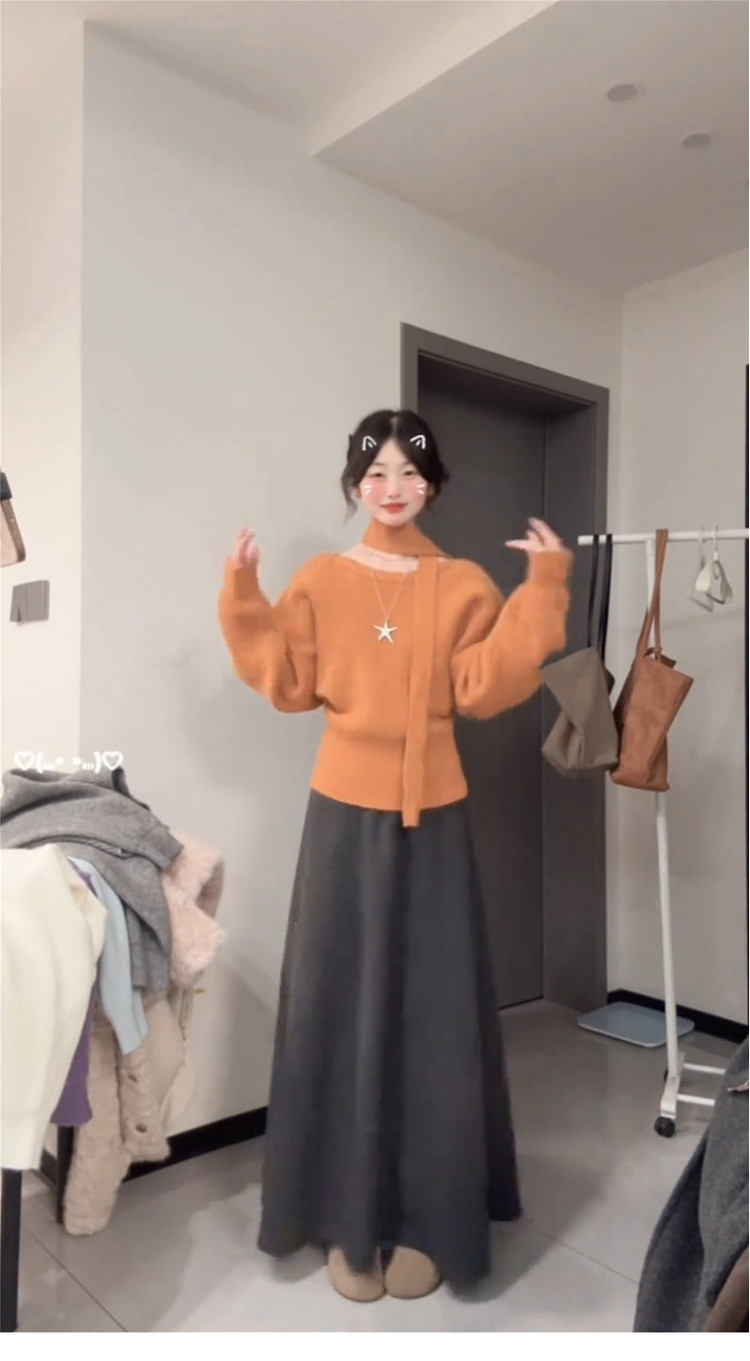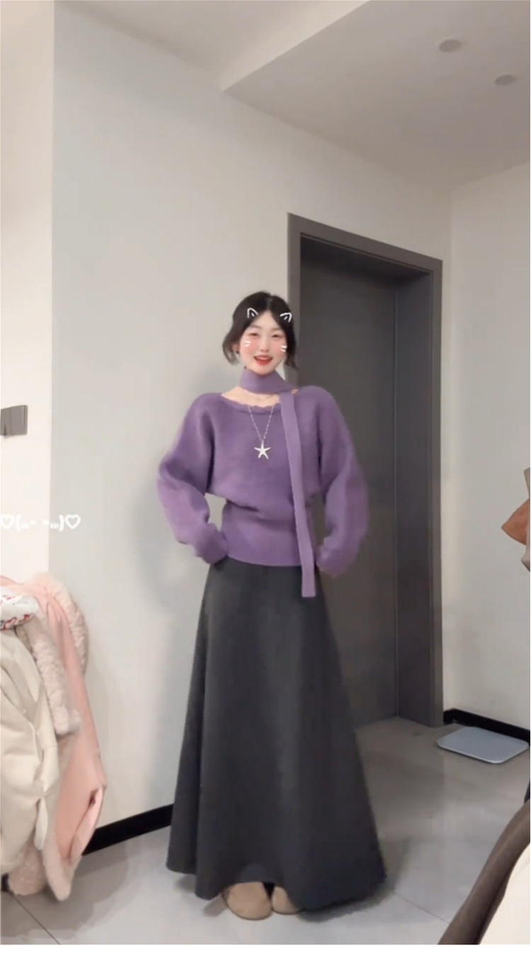 Korean Style Lazy Off-Shoulder Ribbon Long-Sleeved Knit Sweater for Women, New Spring Style, Loose and Slimming, Fashionable Top