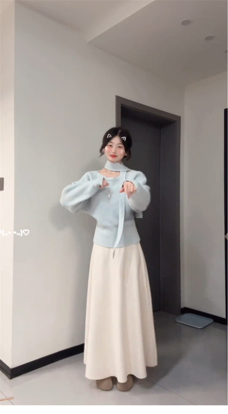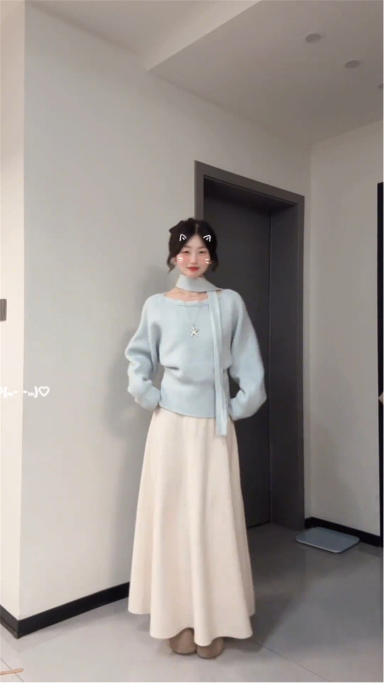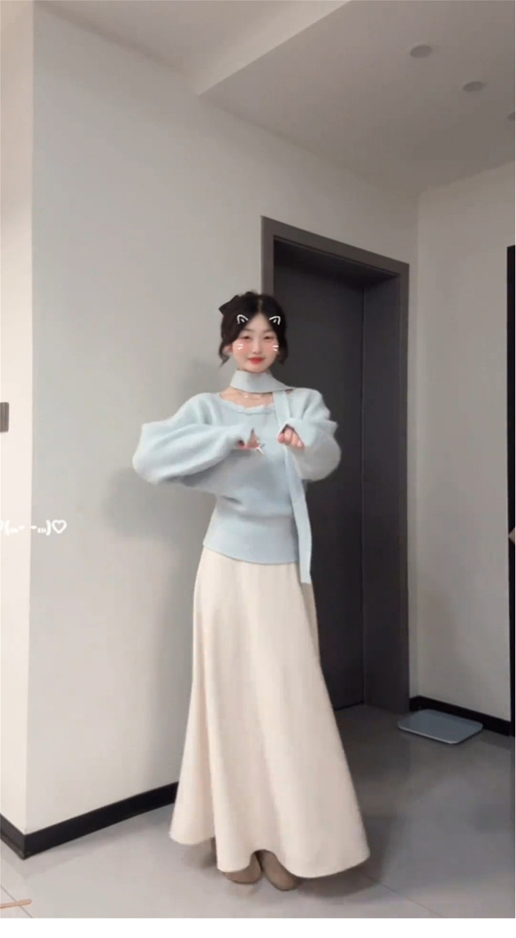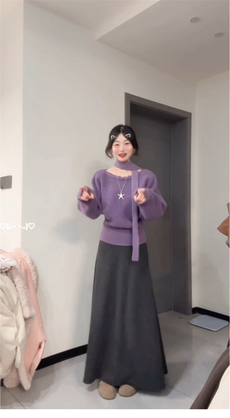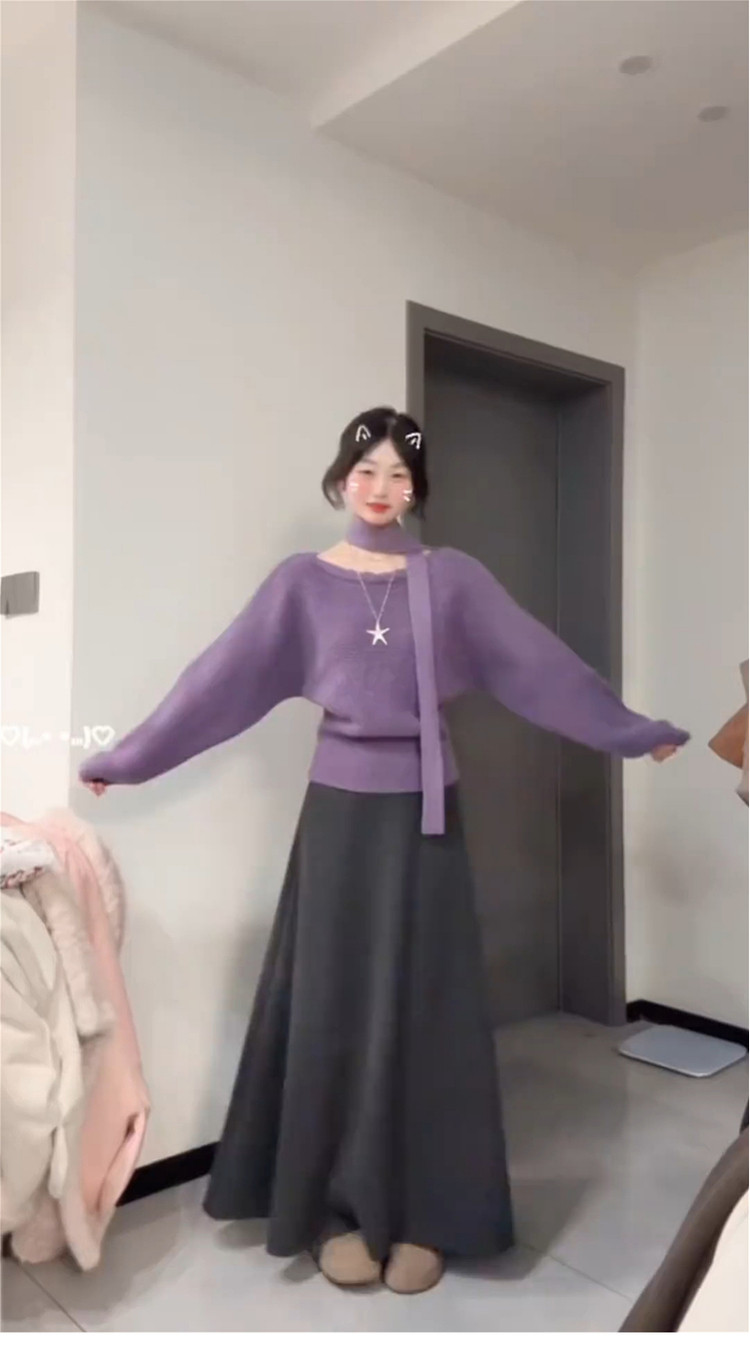 Korean Style Lazy Off-Shoulder Ribbon Long-Sleeved Knit Sweater for Women, New Spring Style, Loose and Slimming, Fashionable Top