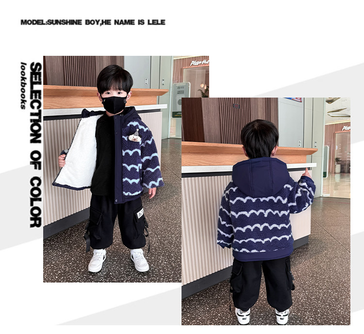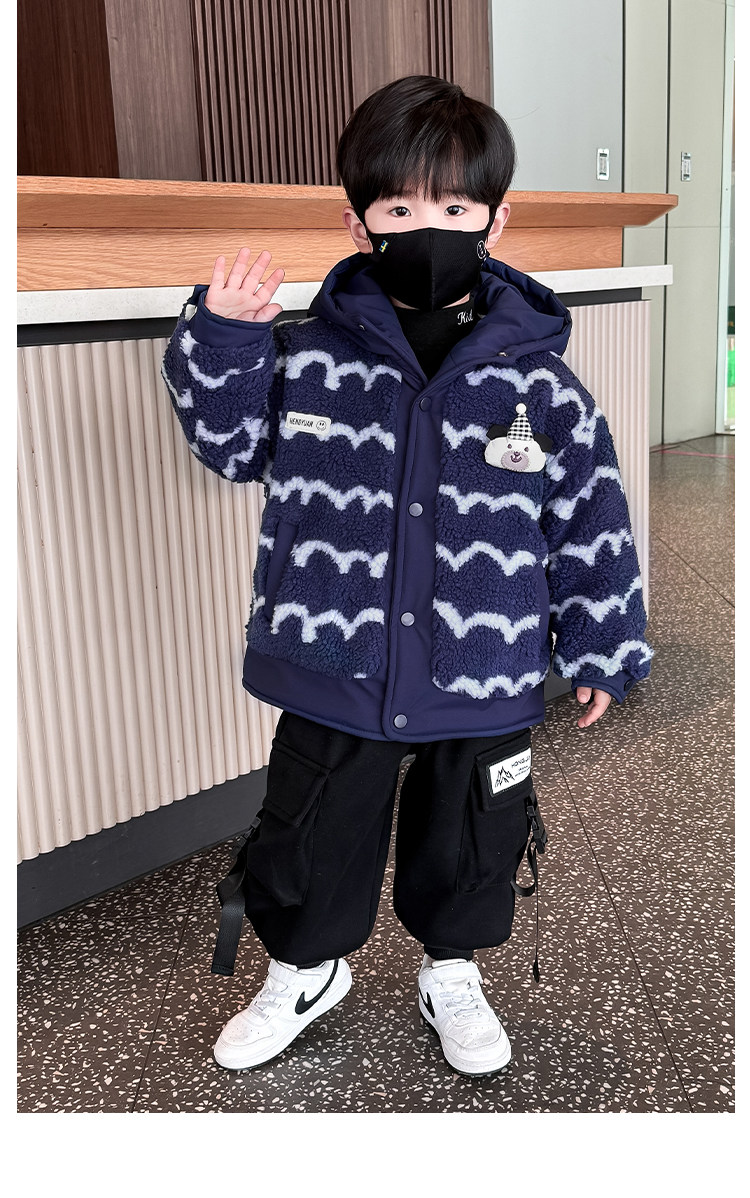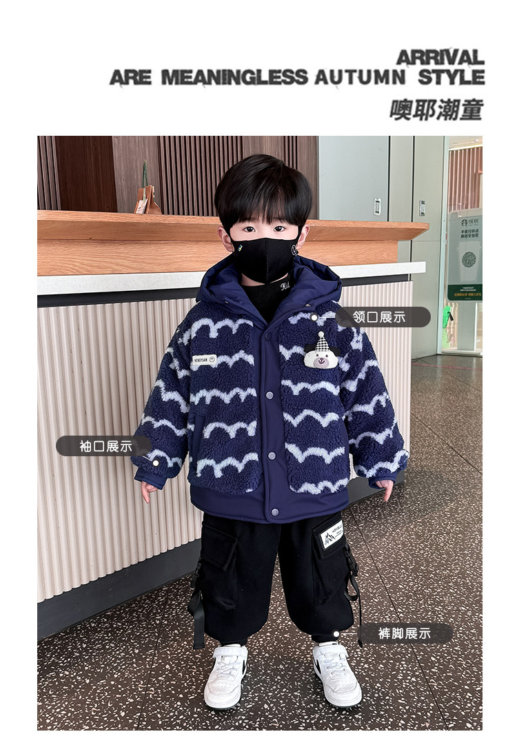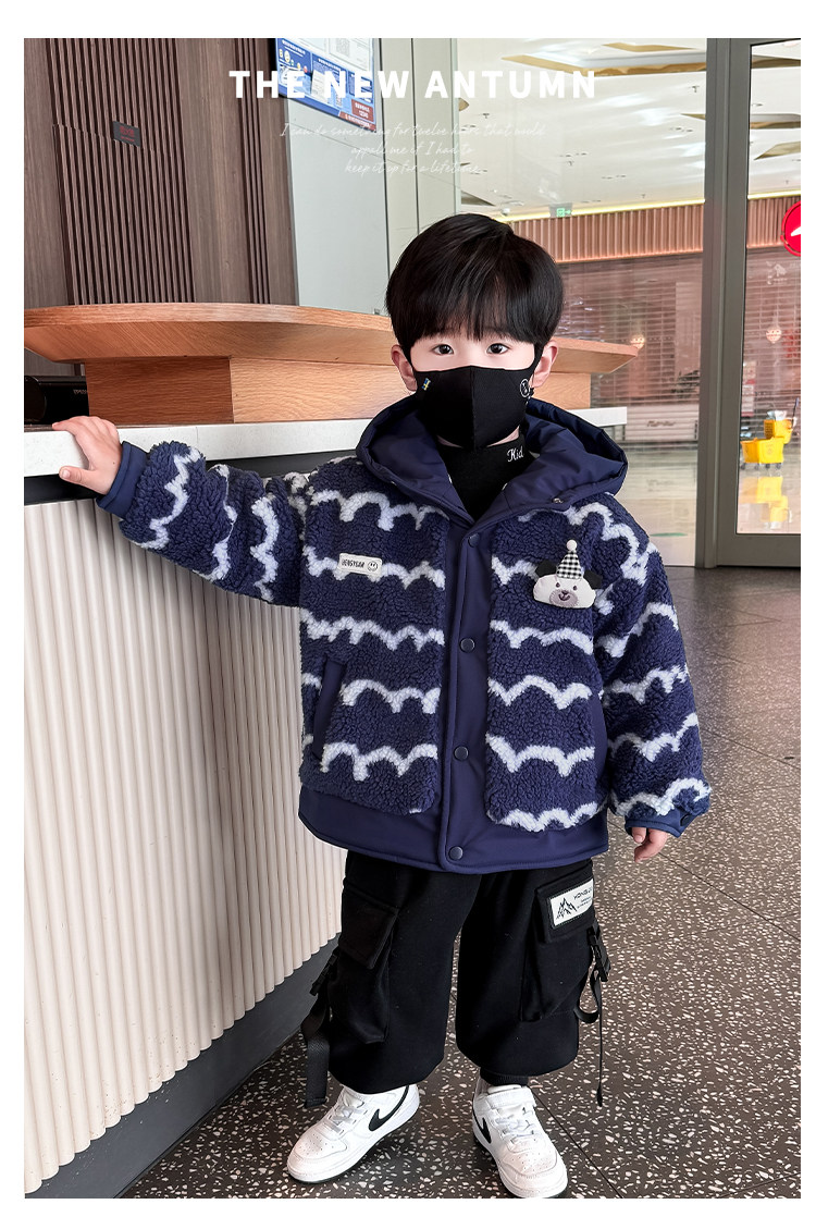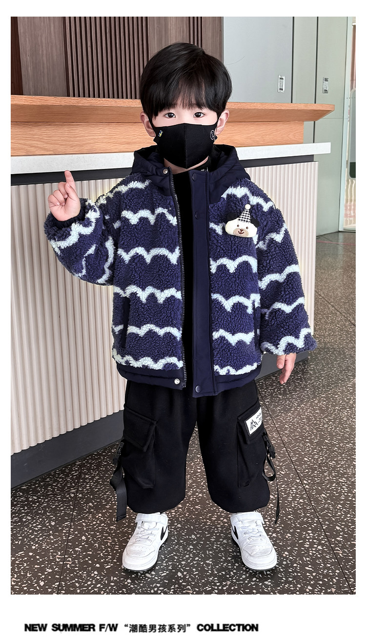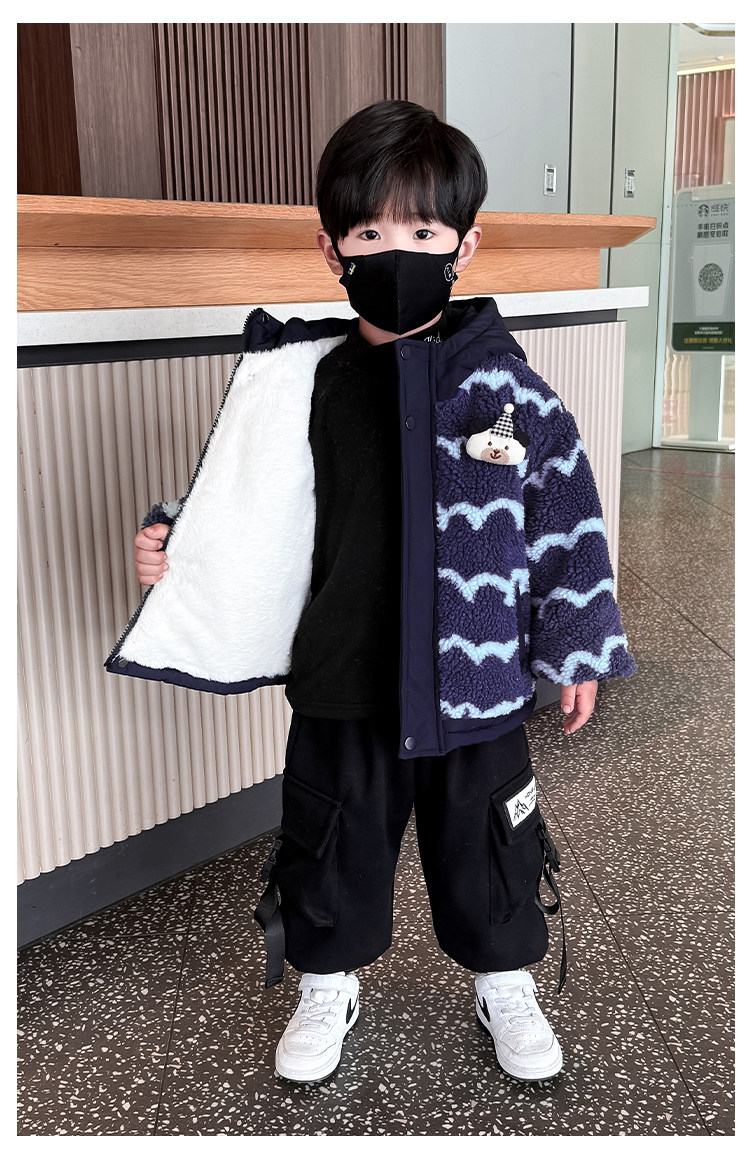 Boys' Winter Cotton Coat Stylish Warm Cotton Jacket 2026 New Winter Model Children's Fleece Thickened Fur Sweater Trendy