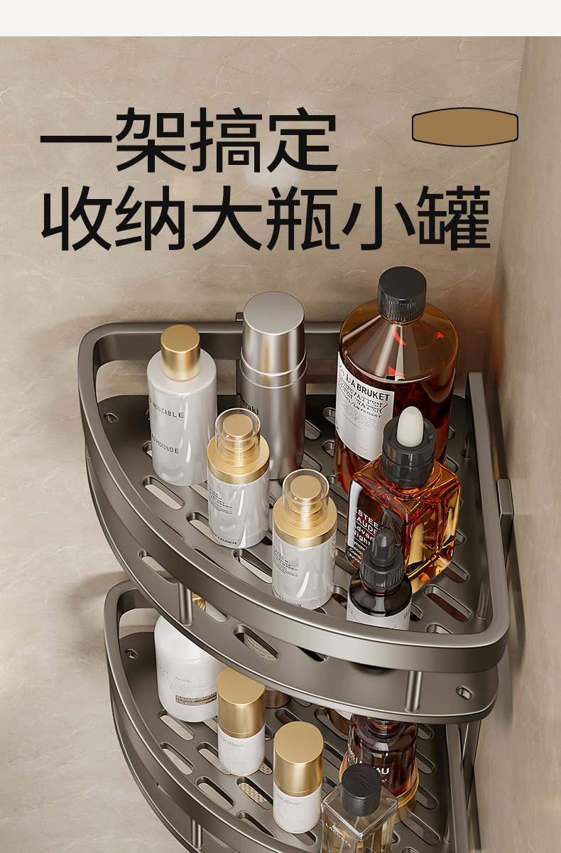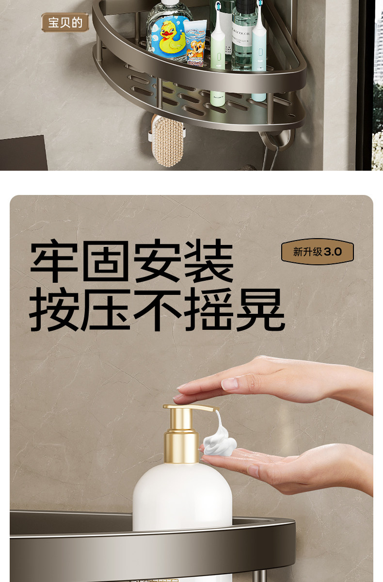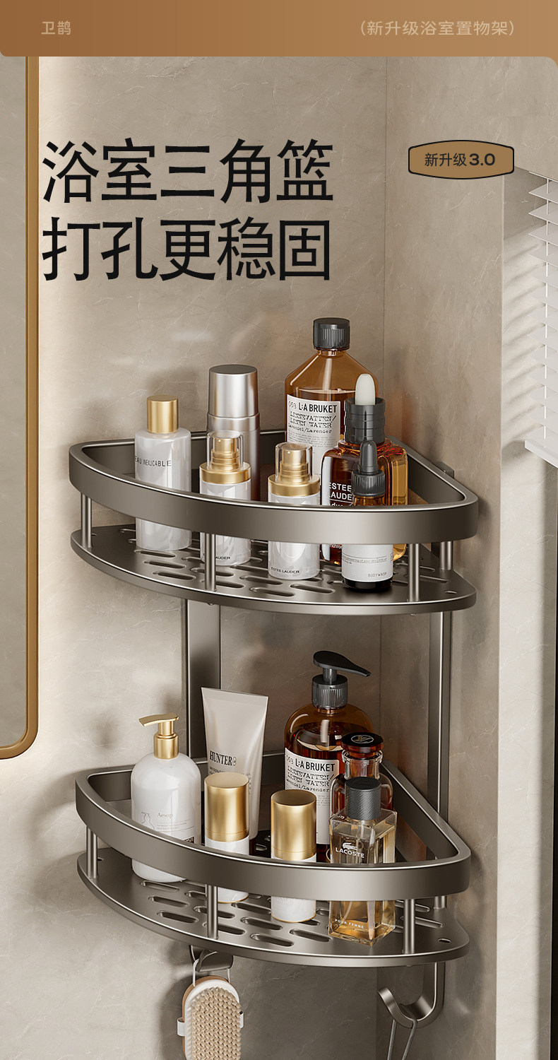 German High-End Bathroom Storage Rack, No-Drill Corner Washbasin Wall-Mounted Toilet Shower Rack