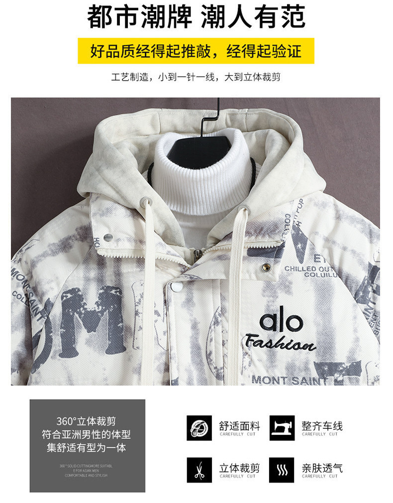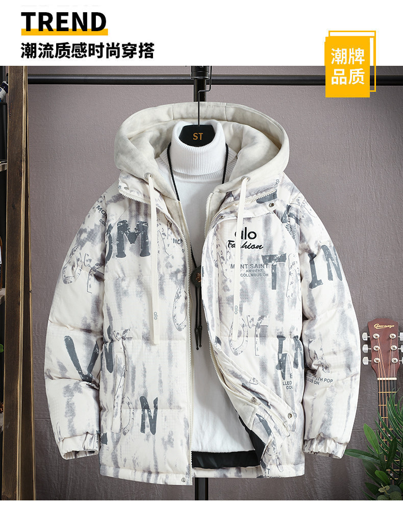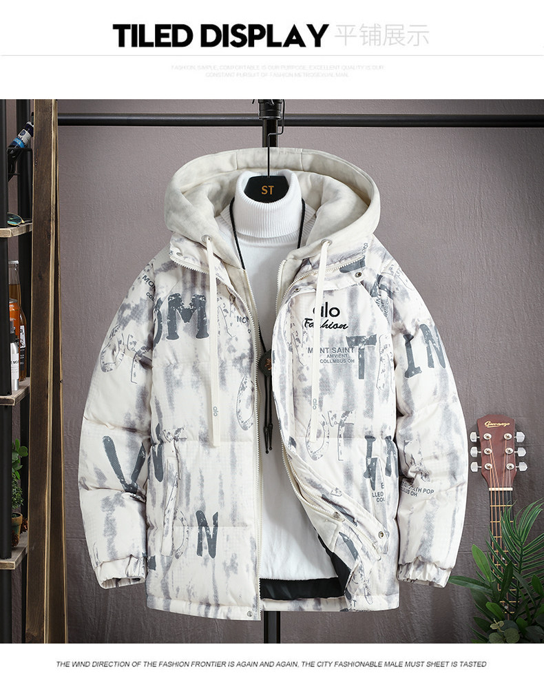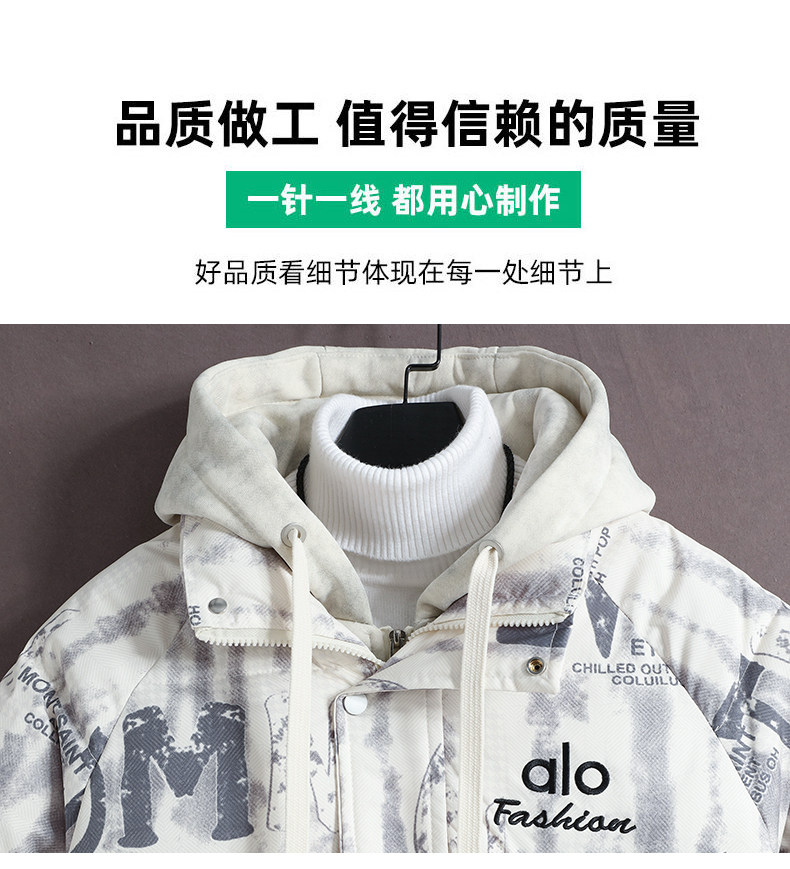 Teenagers' Winter Cotton-Padded Thickened Jacket for Boys, Casual Hooded Cotton Coat for Middle and High School Students, Boys' Faux Two-Piece Cotton Clothing