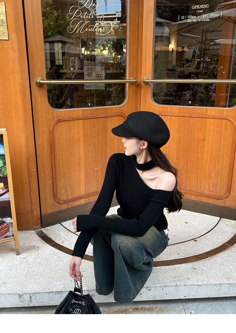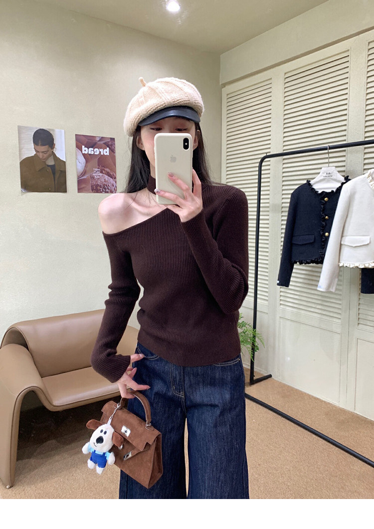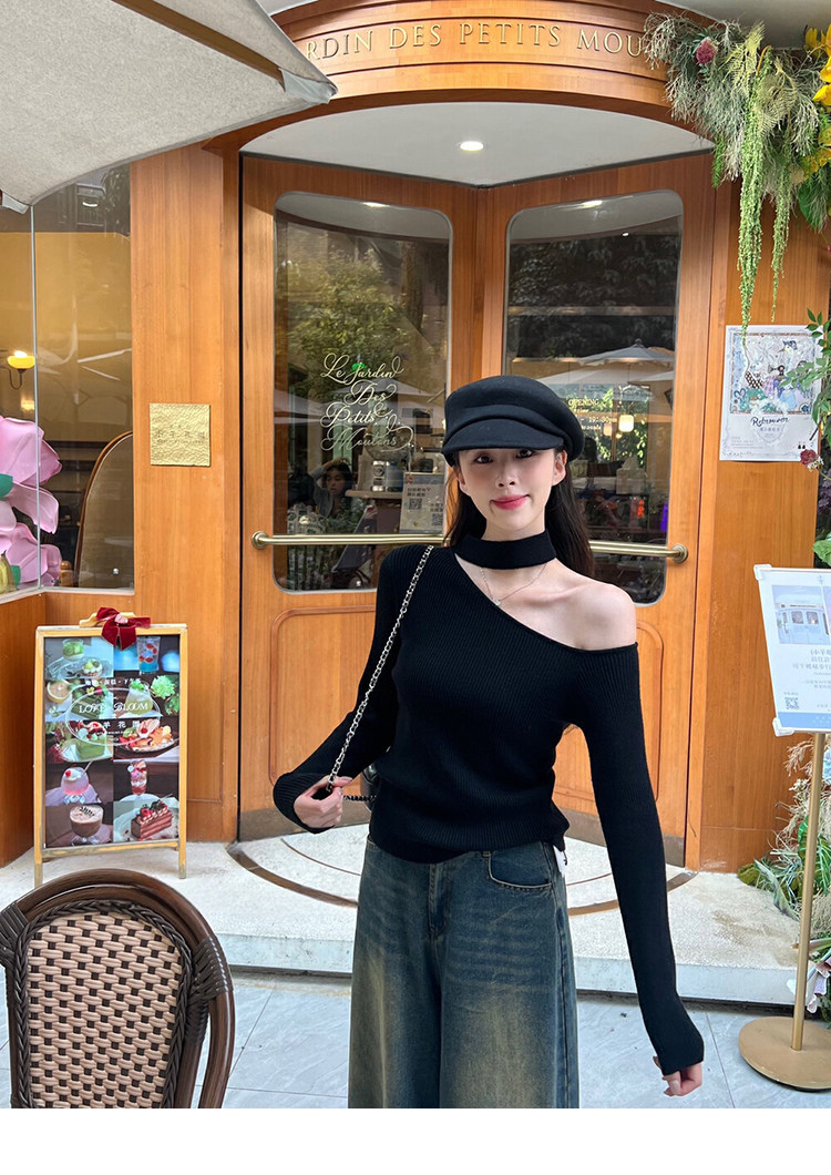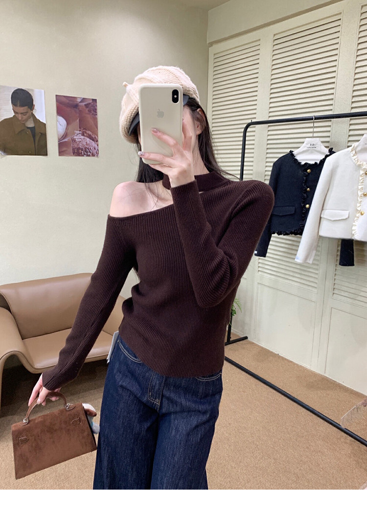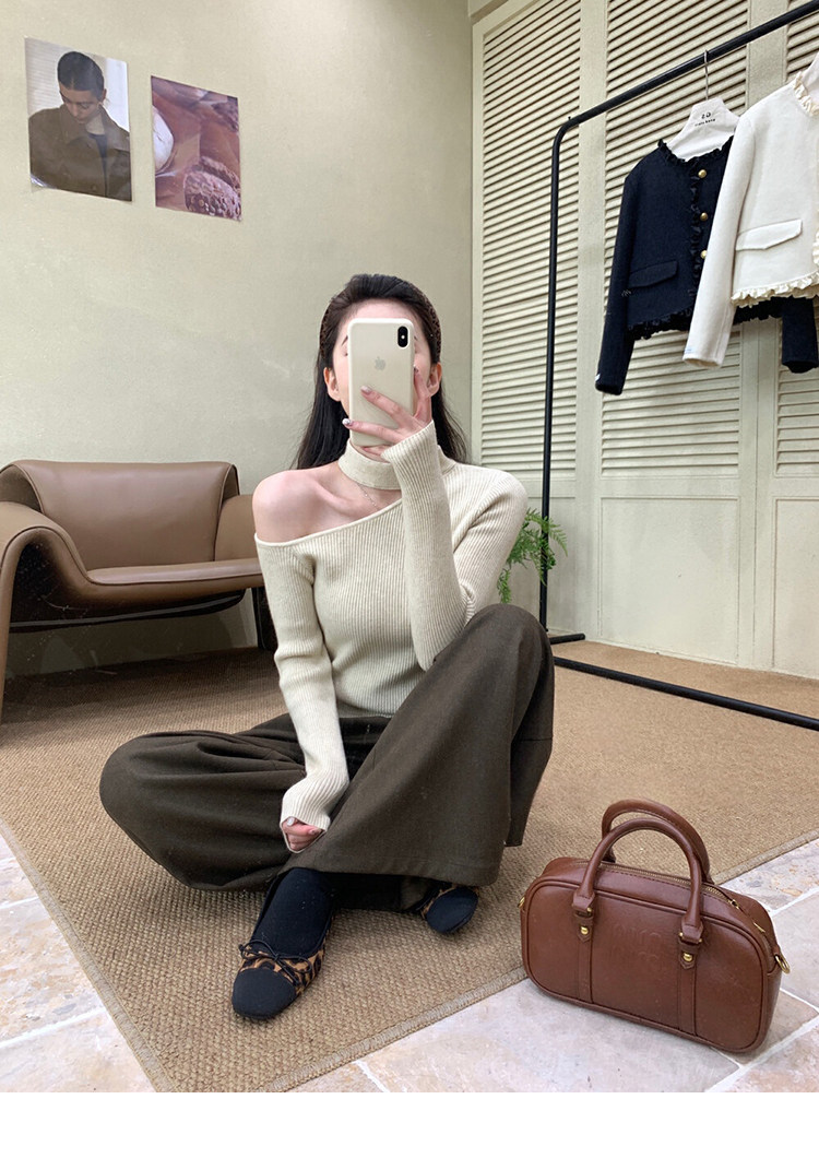Korean-Style Halter Neck One-Shoulder Slim-Fit Knit Sweater for Women, Autumn and Winter Design, Off-Shoulder Base Sweater, Soft and Cozy Inner Wear Top