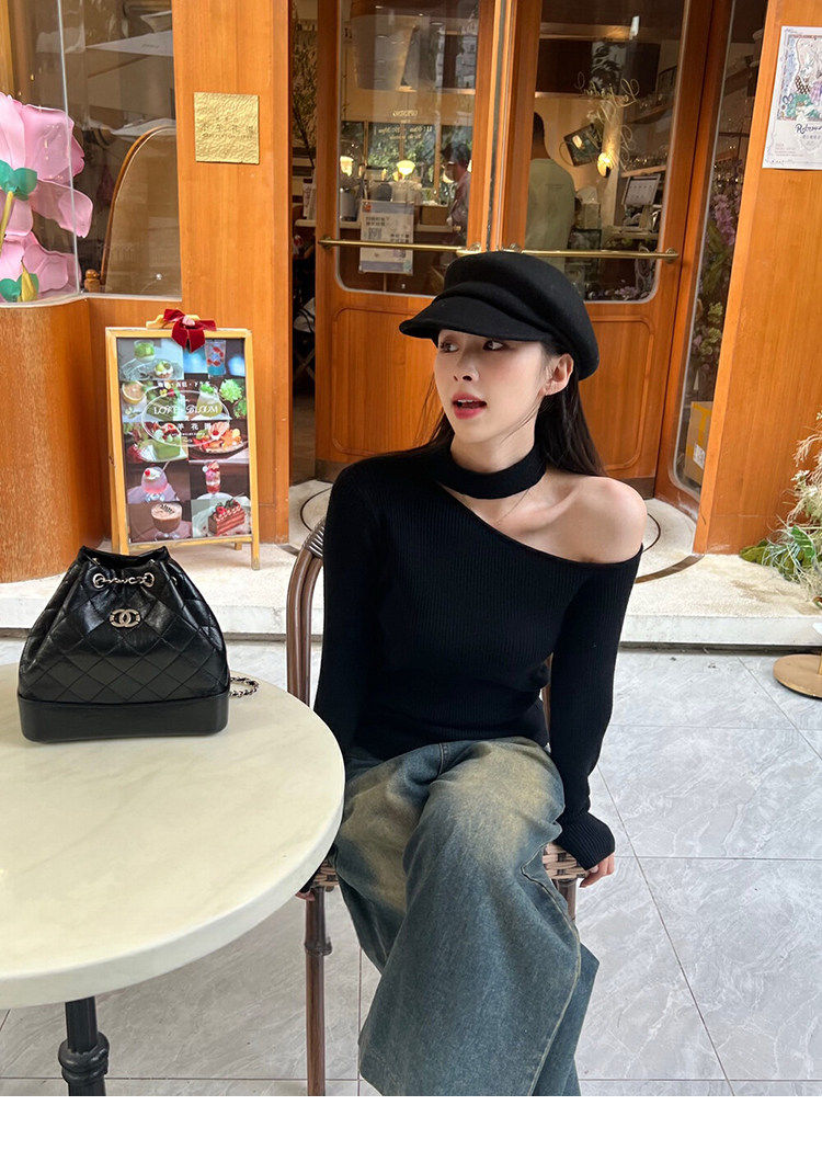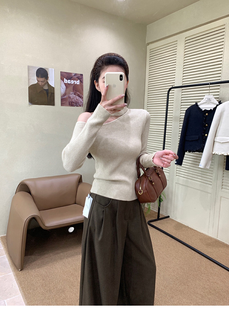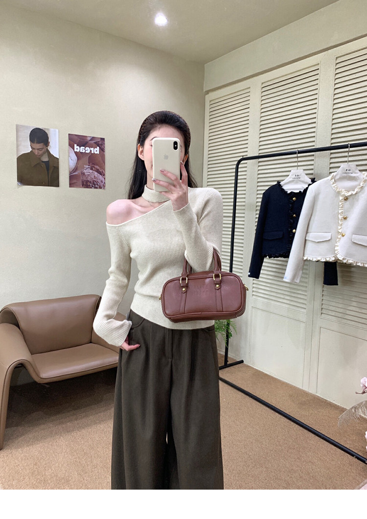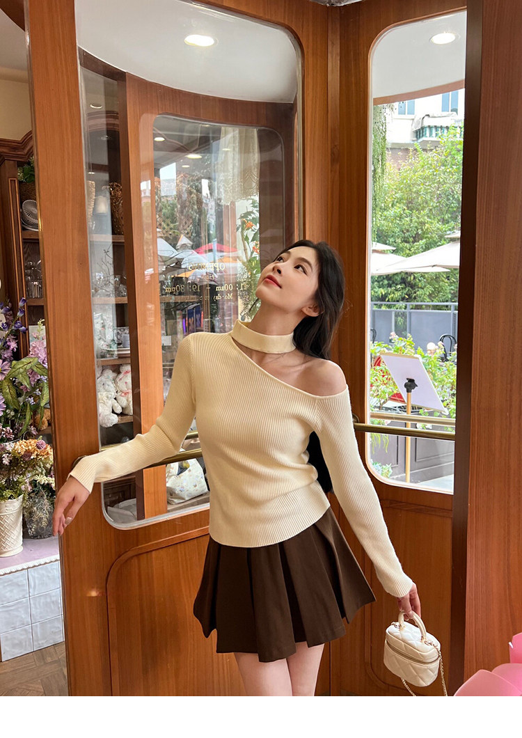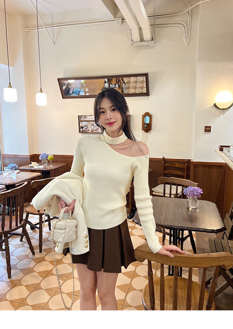 Korean-Style Halter Neck One-Shoulder Slim-Fit Knit Sweater for Women, Autumn and Winter Design, Off-Shoulder Base Sweater, Soft and Cozy Inner Wear Top