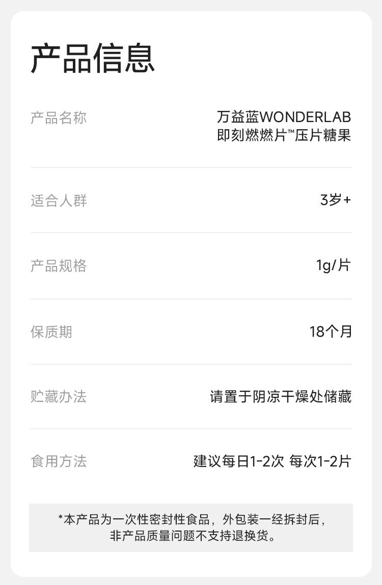 Wonderlab instant burning tablets cardamom extract dietary fiber prebiotic berry genuine