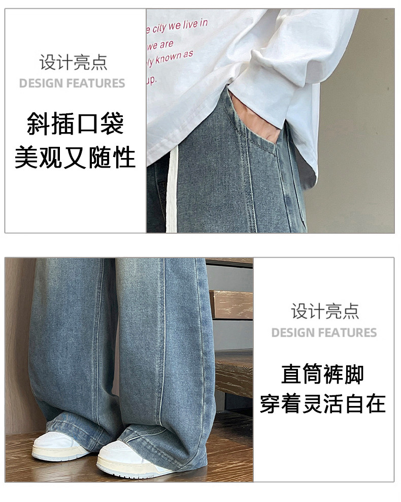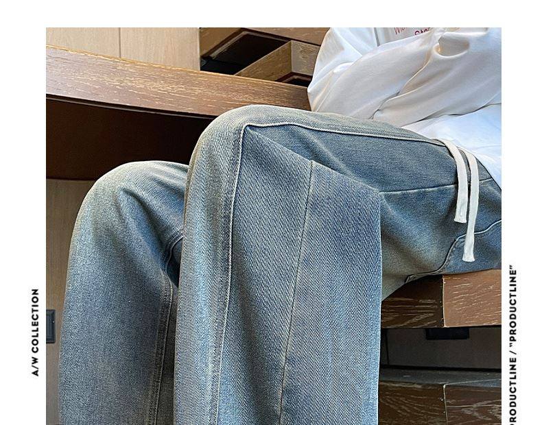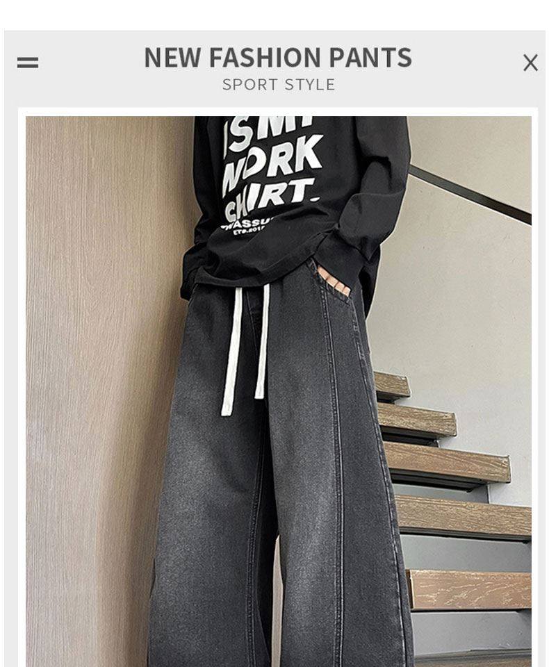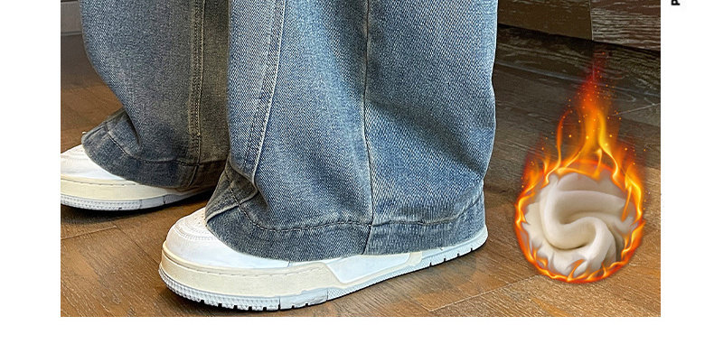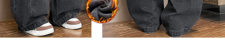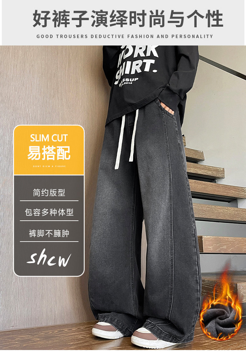 American Scimitar Jeans Men's Autumn and Winter Velvet Thickened Wide Leg Pants Men's Retro Washed Casual Straight Pants