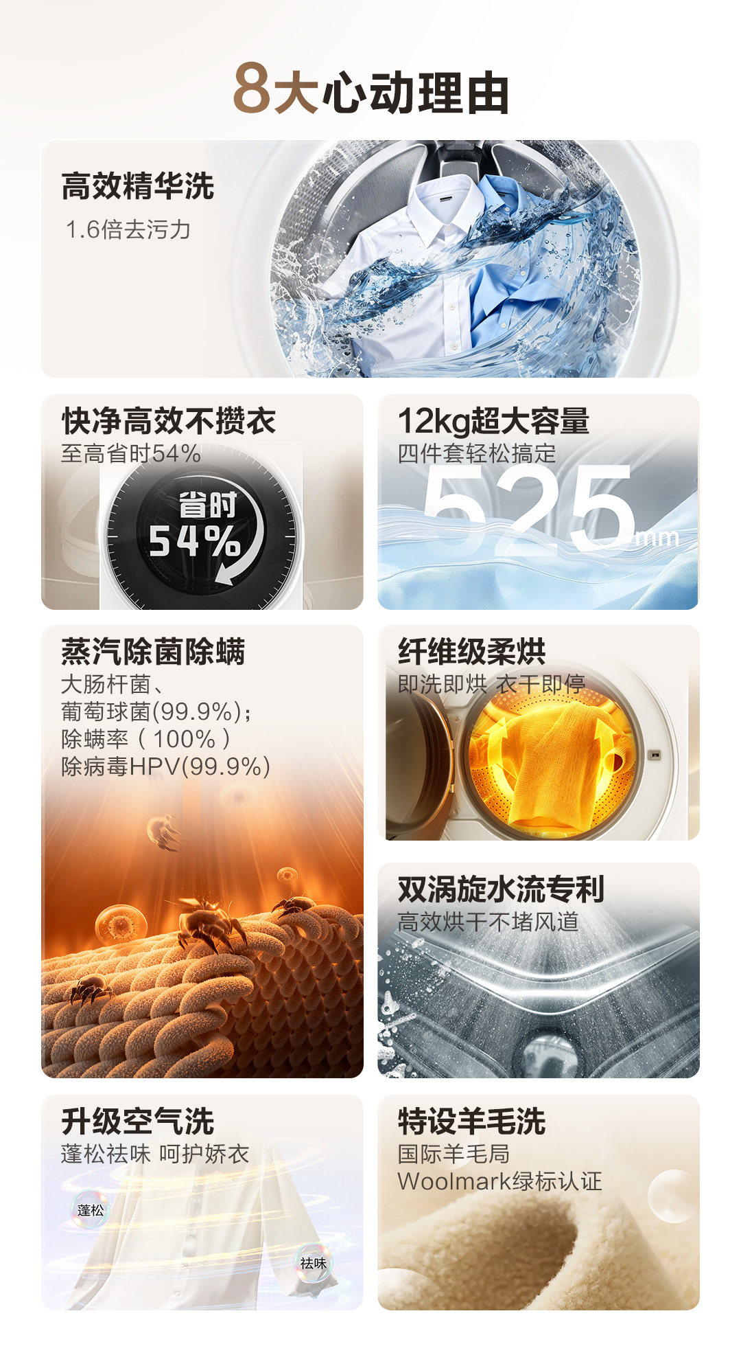 Sort by color Washing and drying machine 12kg,Washer and dryer in one 12kg motor with ten-year warranty,12kg washing and drying machine with ten-year warranty,Elution all in one 12kg,All-in-one eluator 12kg motor with ten-year warranty,12kg all-in-one elutriator. Ten-year warranty for the whole machine.